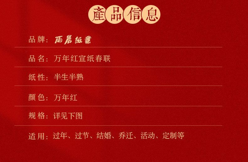 万年红对联纸毛笔手写洒金空白春联纸五七言九言批发对联红纸宣纸