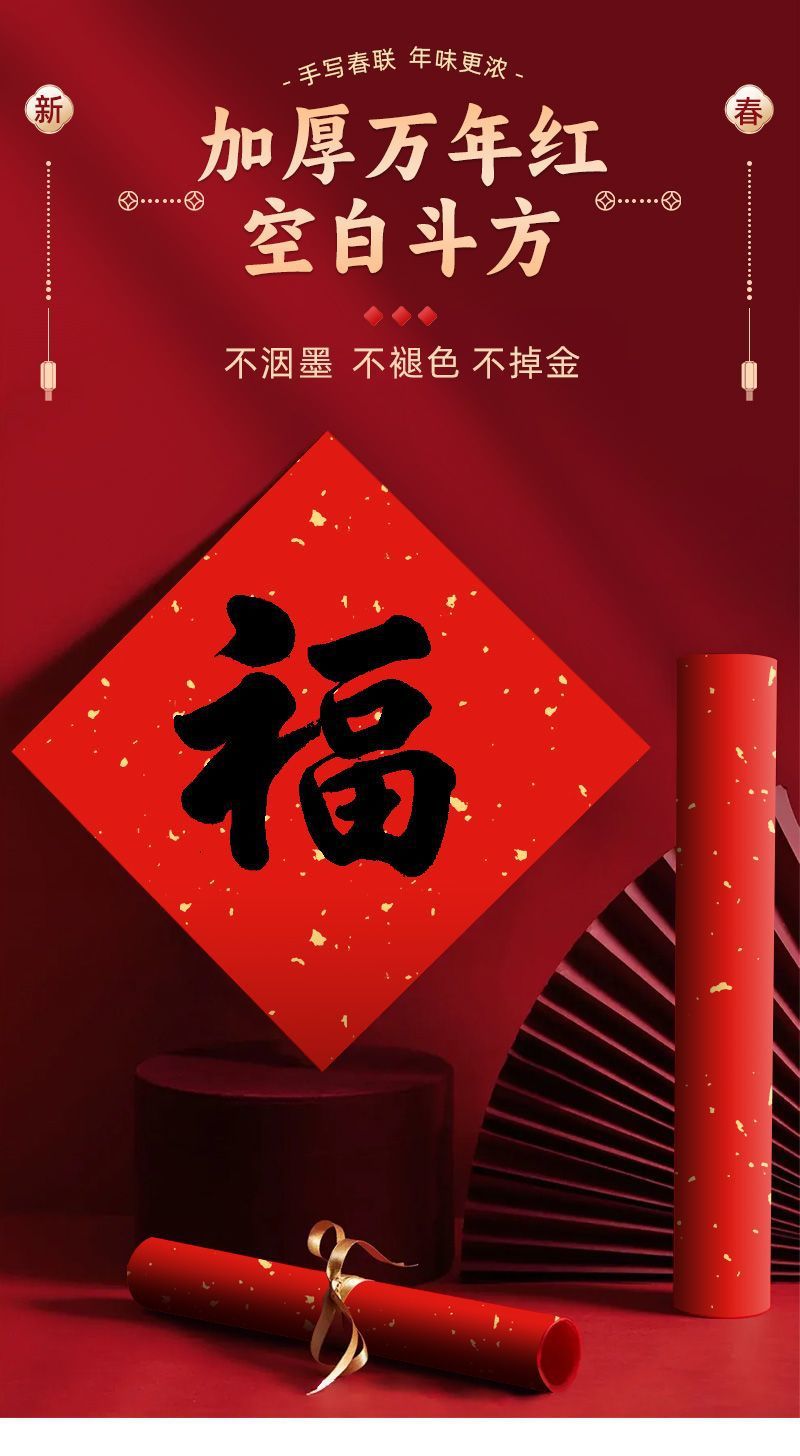 万年红洒金福字手写空白宣纸斗方对联红纸春联春节新年加厚书法