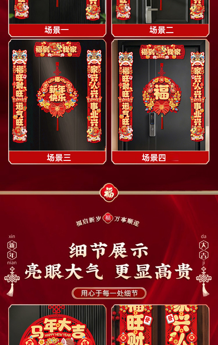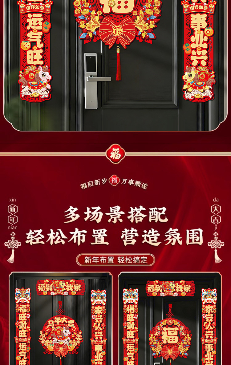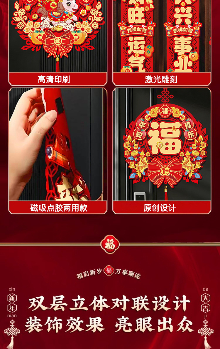 金2026新年磁吸对联春联新款马年春节入户大门贴过年布置装饰福字