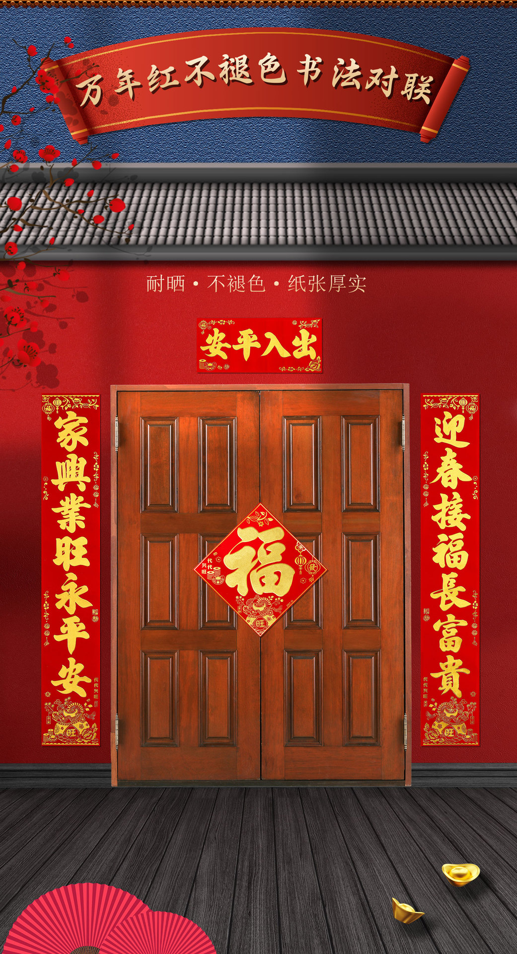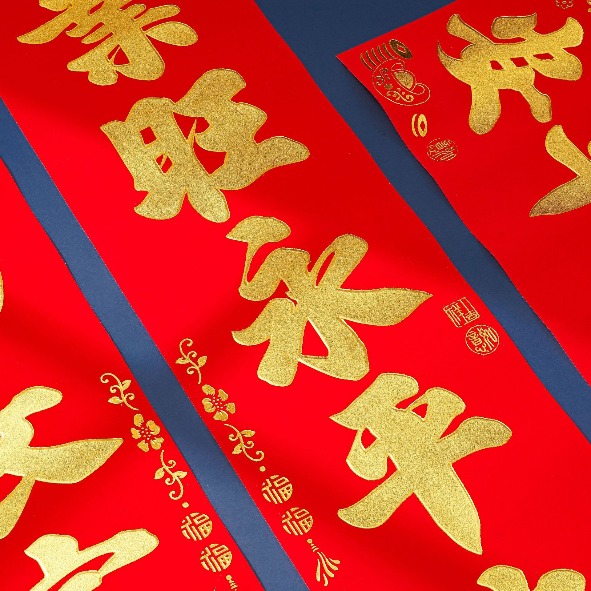 宝正文化对联背胶喜庆过年春联春年货批发2026年新款烫金加厚绒布
