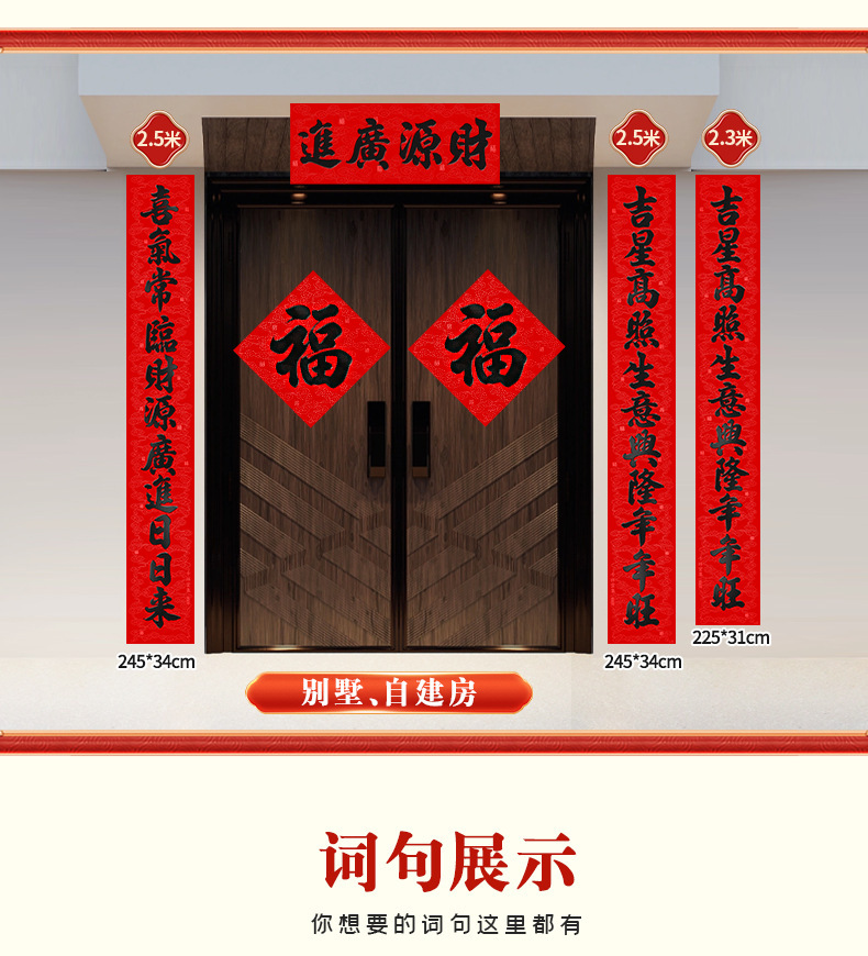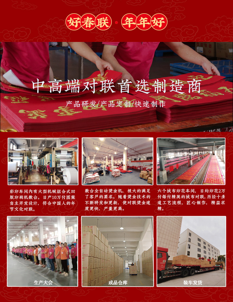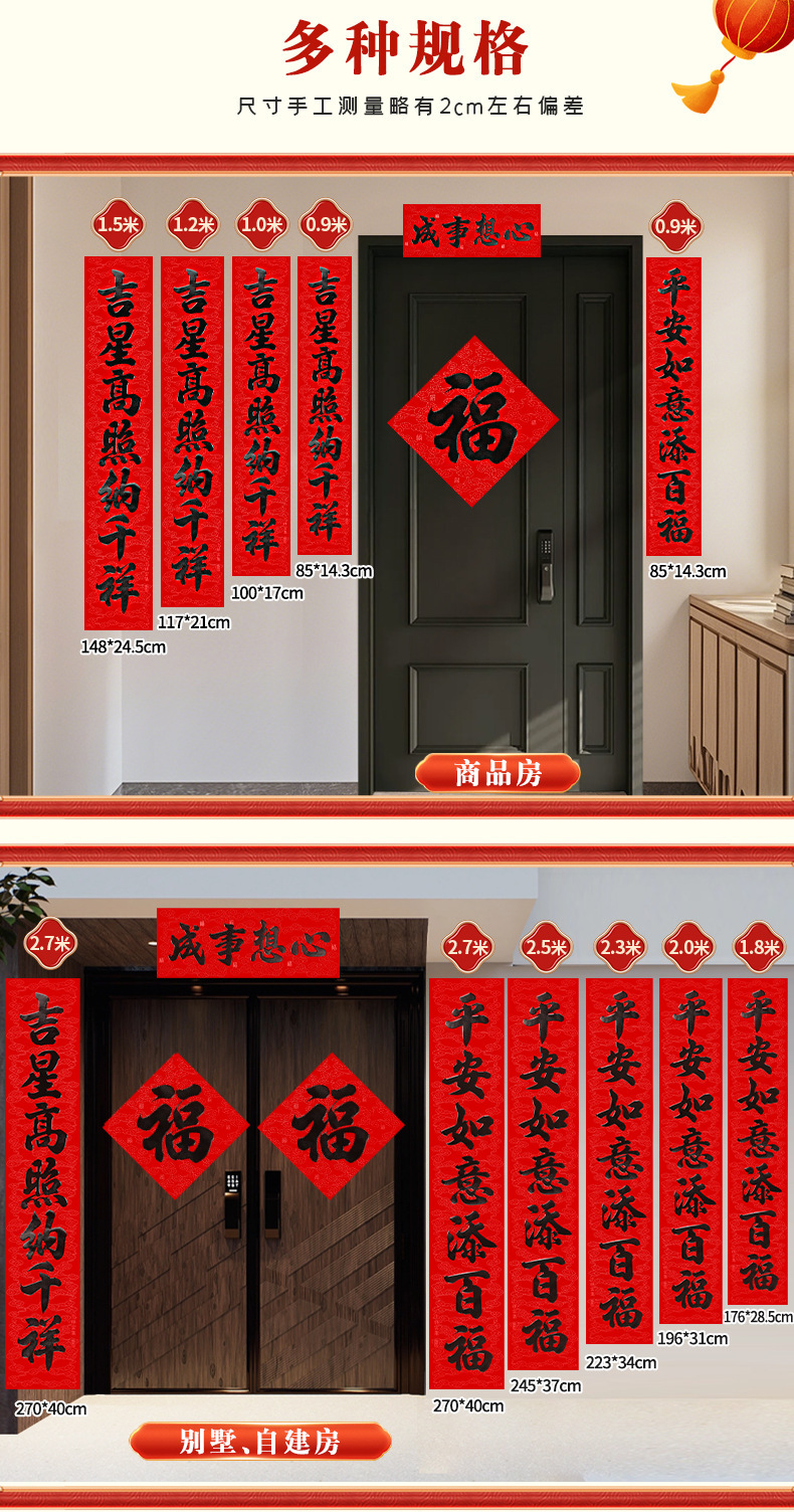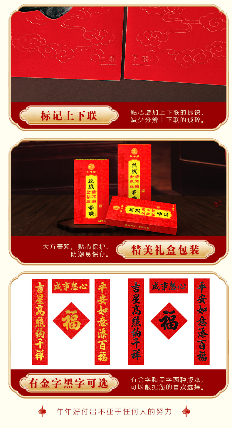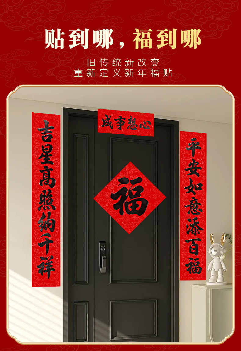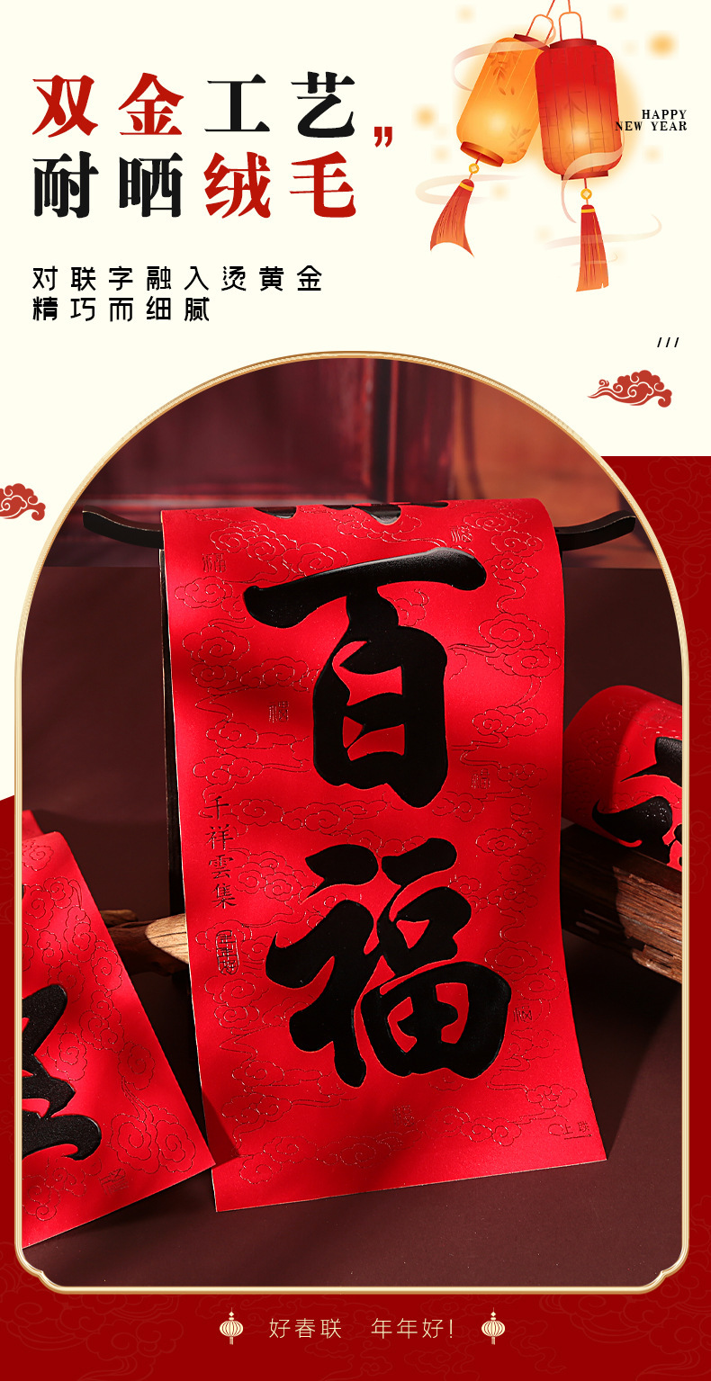 年年好马年对联门贴春节装饰新款丝绒春联过年福子贴新年福字批发