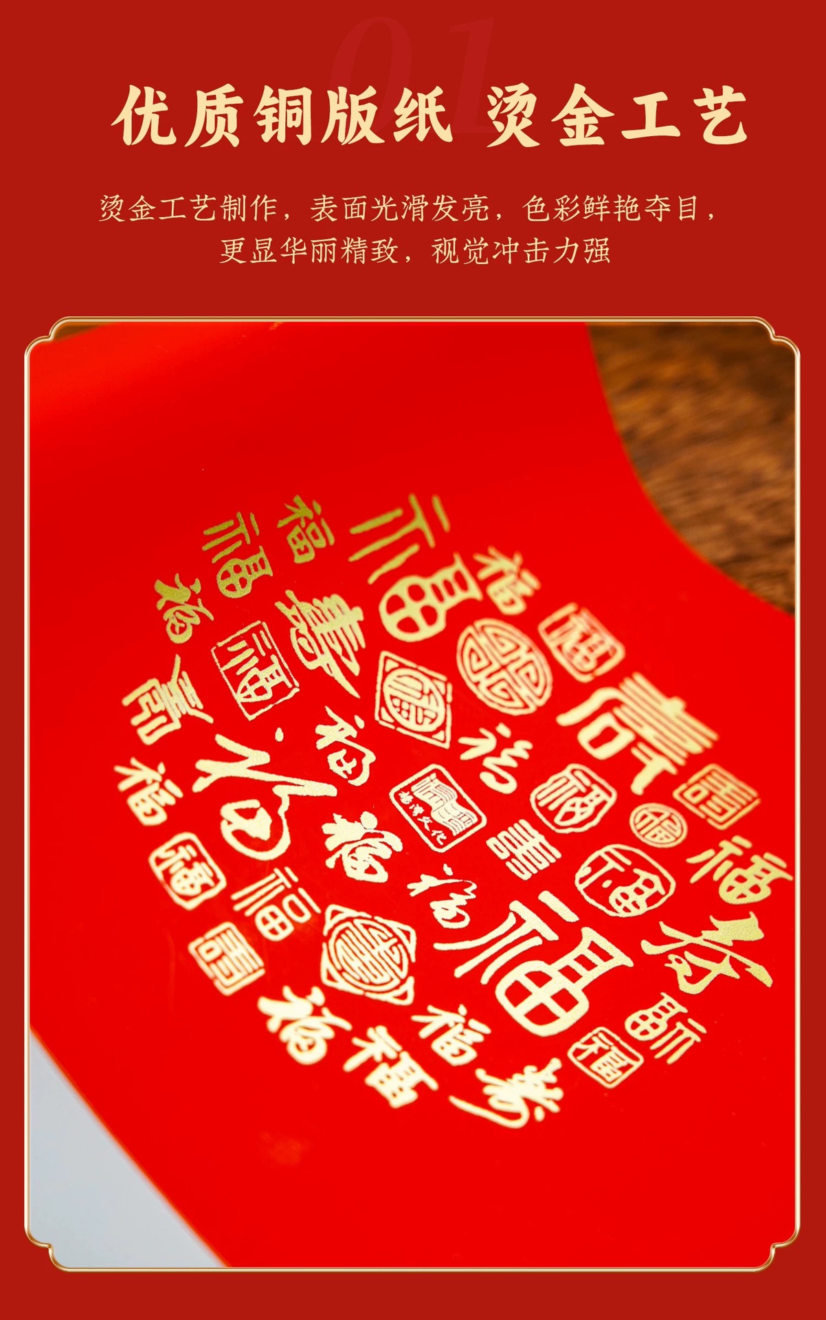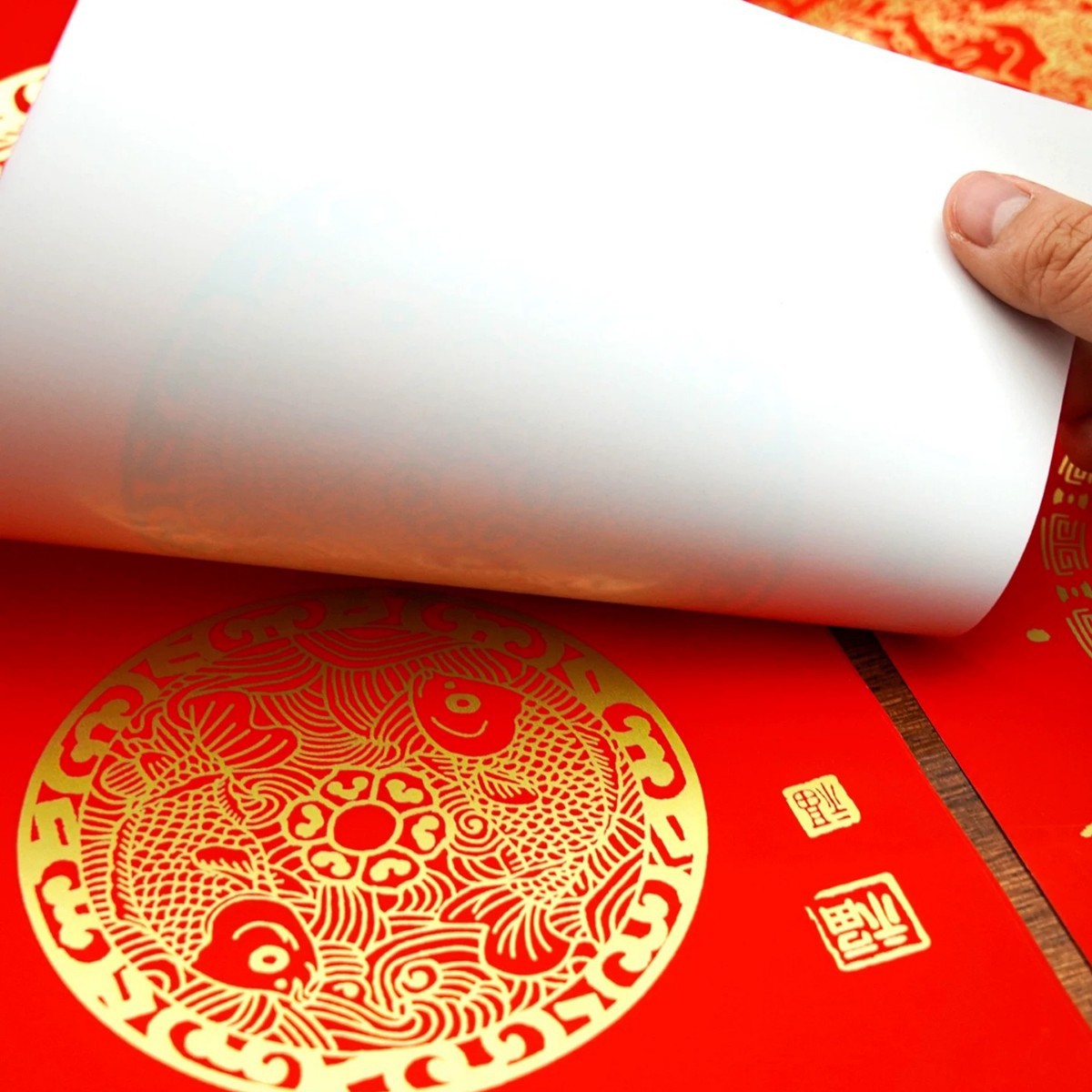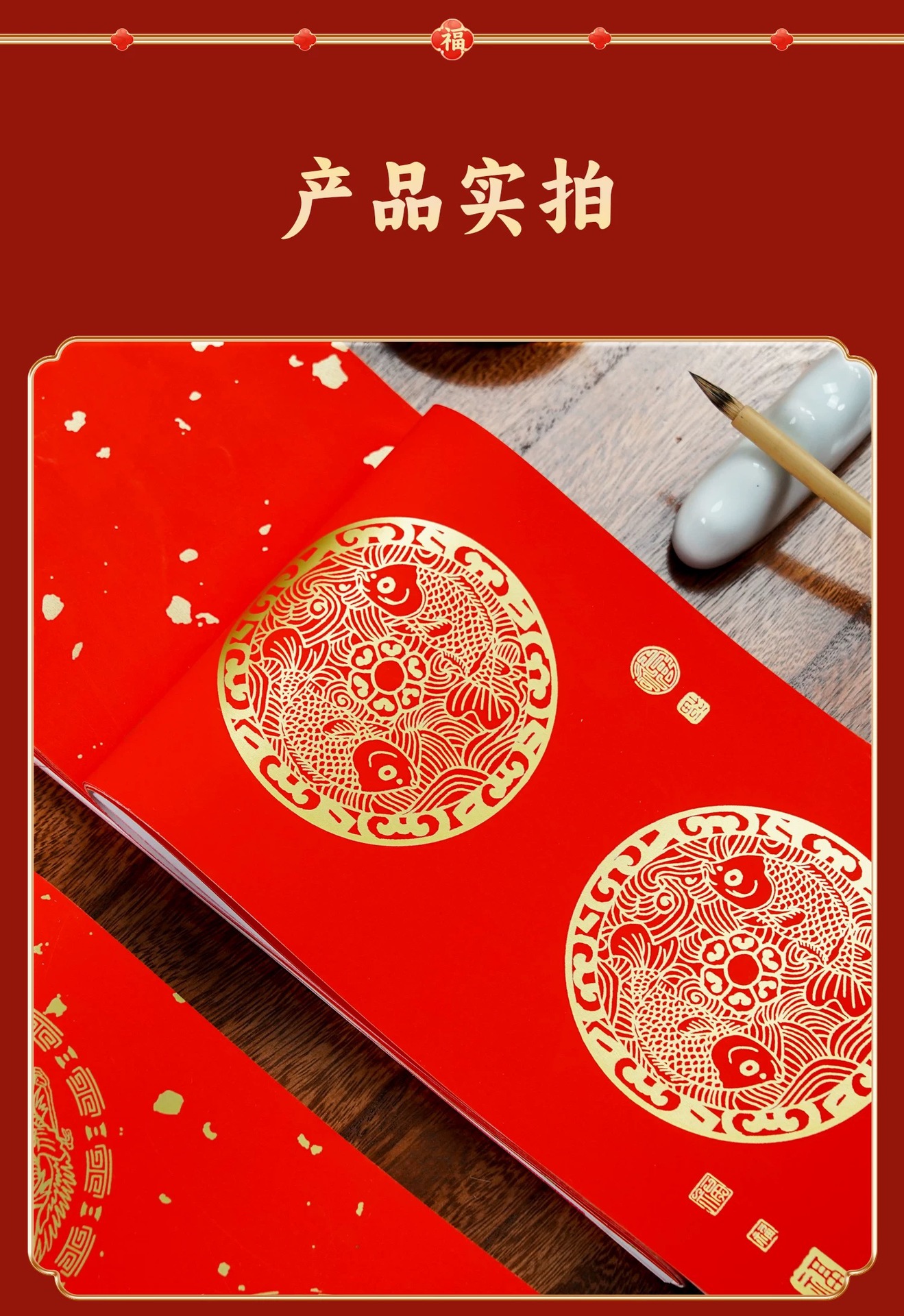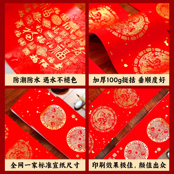 新款加厚万年红铜版纸对联纸斗方春节蜡染手写空白春联加厚红宣纸
