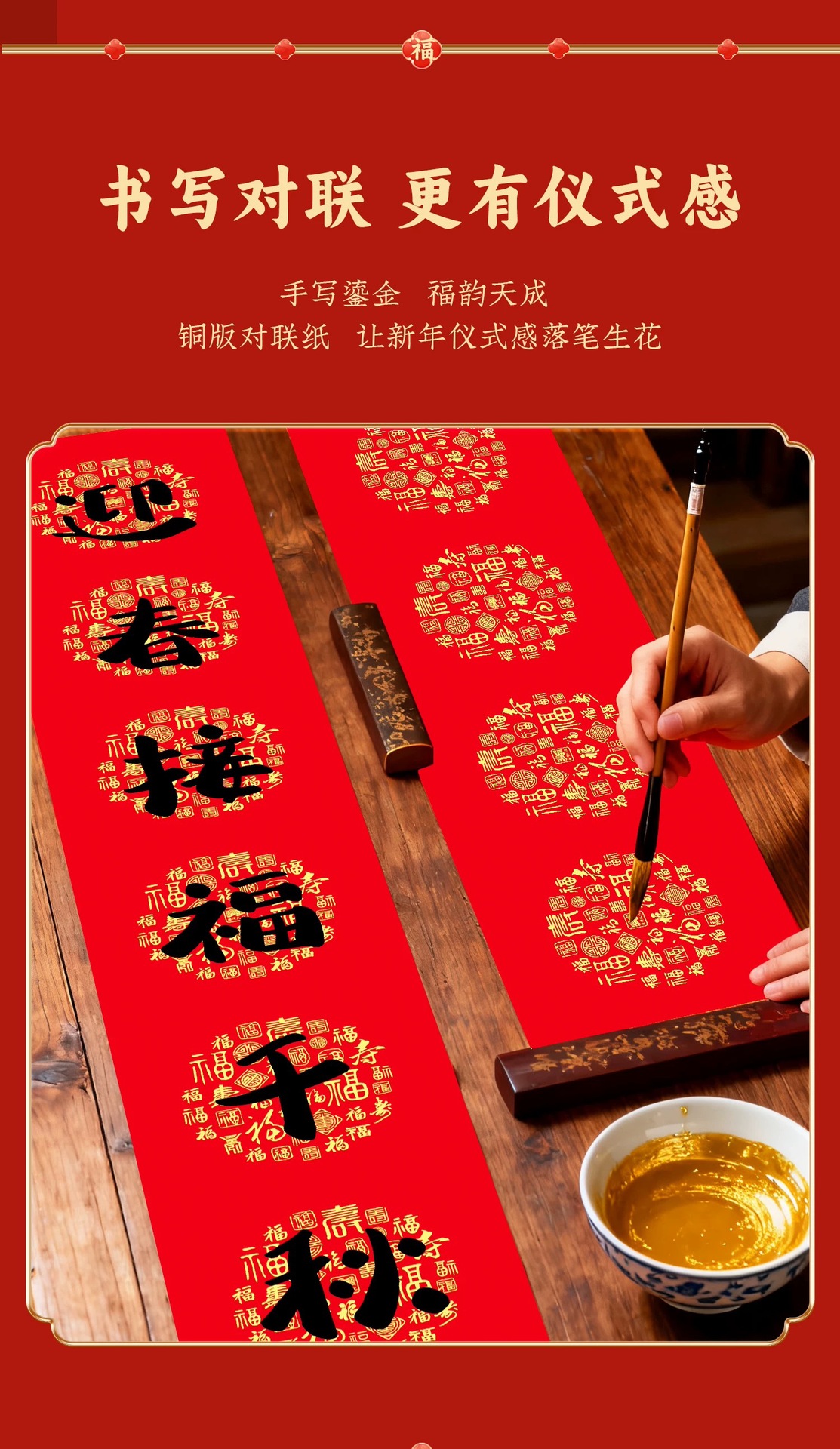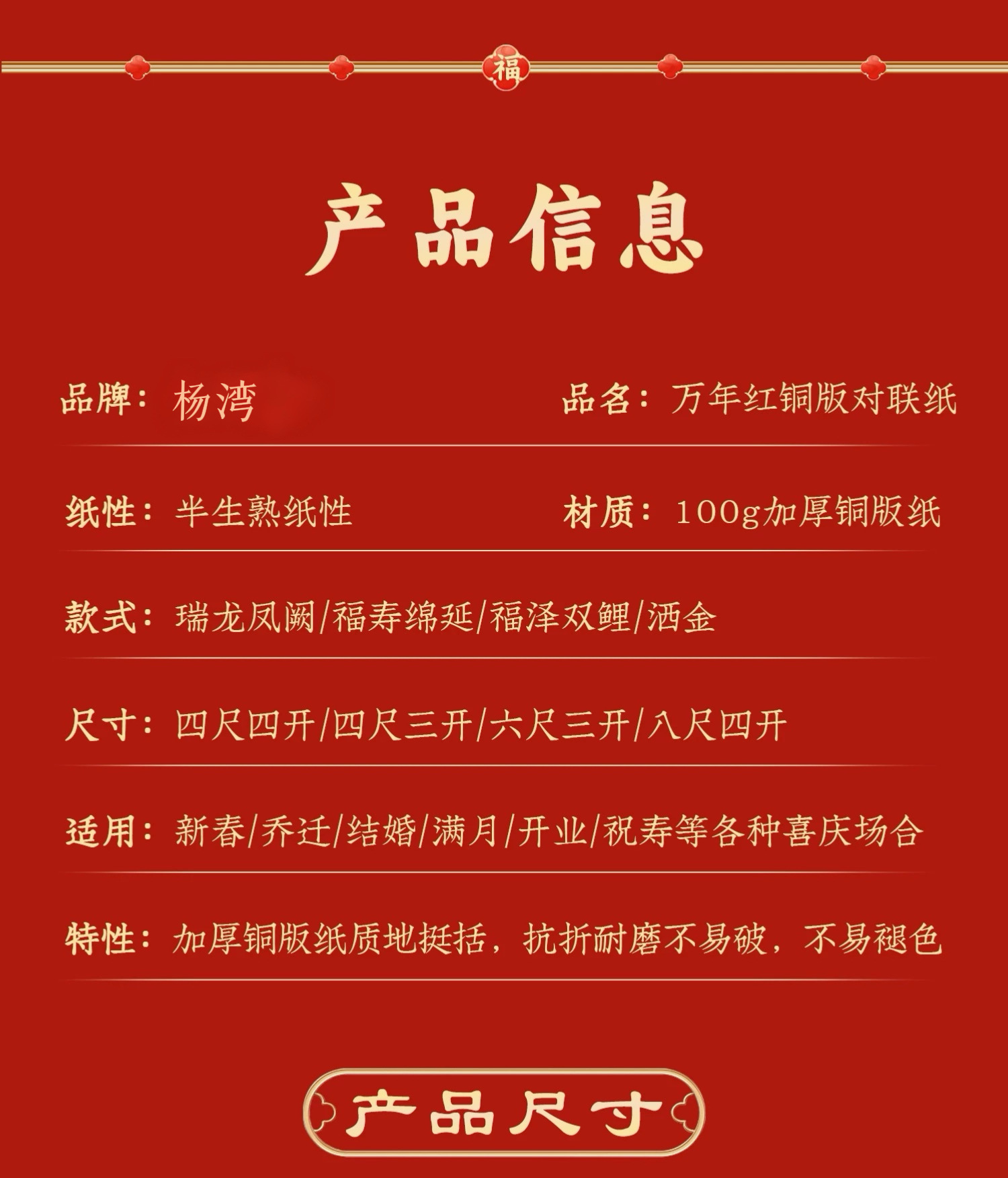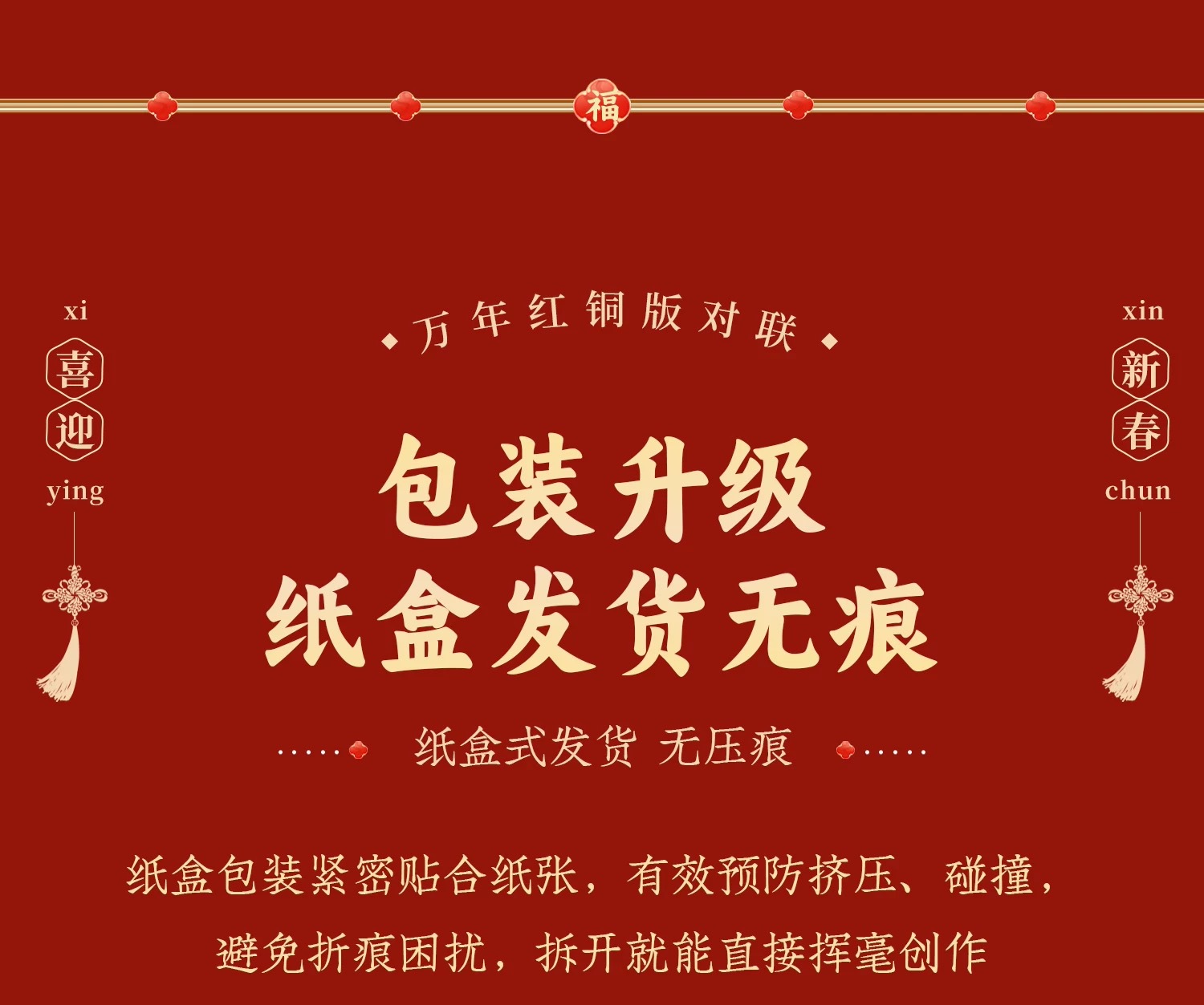 新款加厚万年红铜版纸对联纸斗方春节蜡染手写空白春联加厚红宣纸