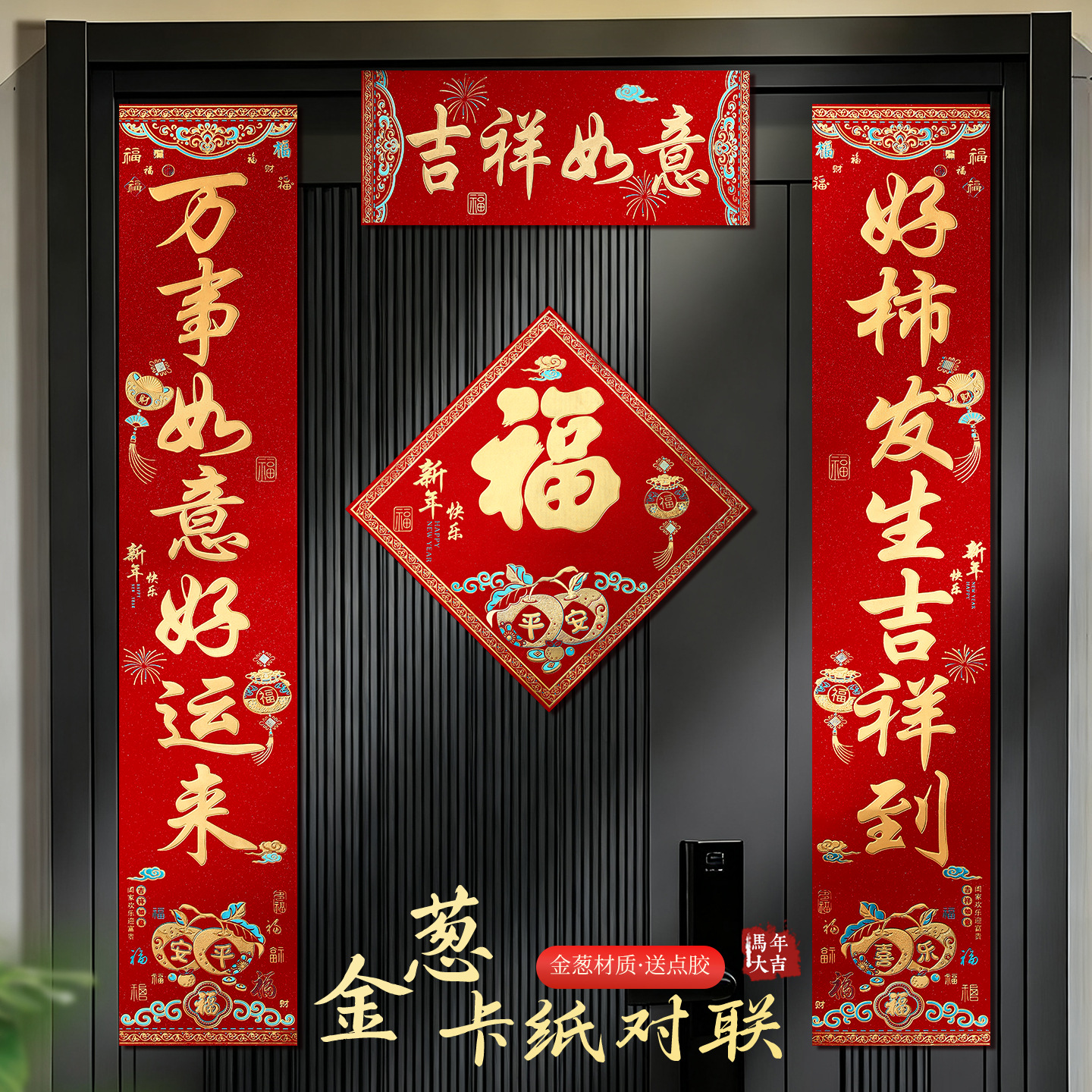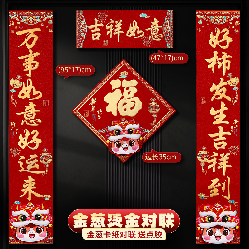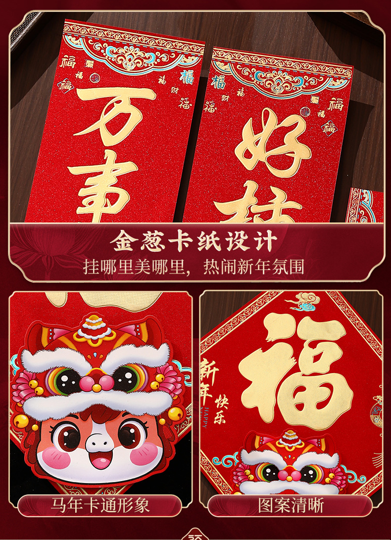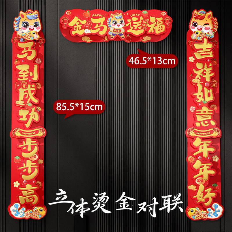 马年烫金金葱对联2026新款新年创意春联大门入户门贴春节过年装饰