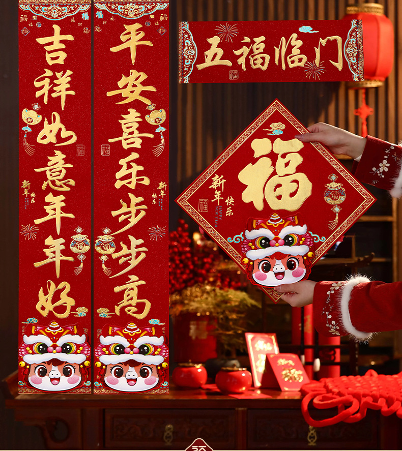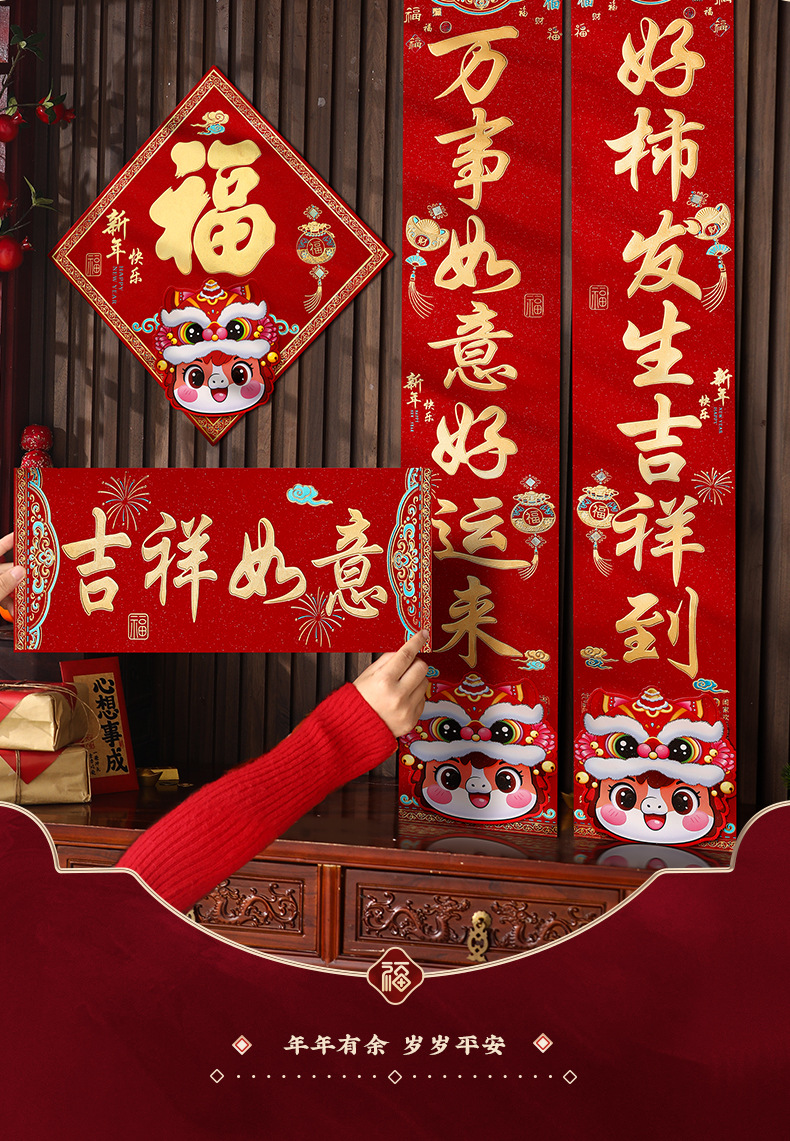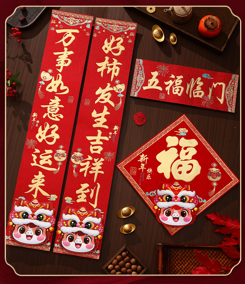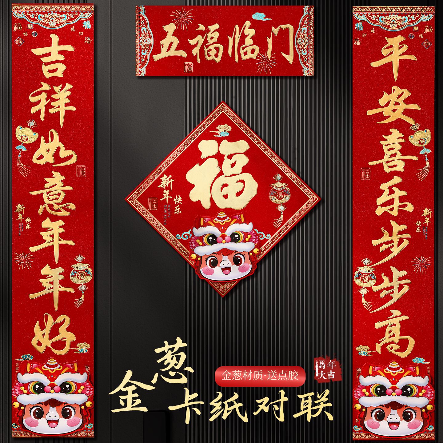 马年烫金金葱对联2026新款新年创意春联大门入户门贴春节过年装饰