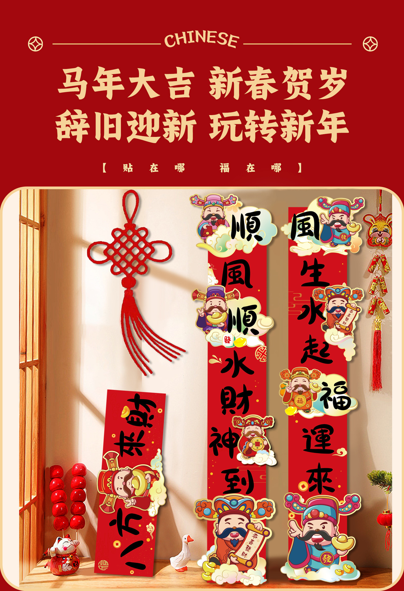 马年新款春节财神对联福字入户门贴2026过年大门春联布置装饰批发
