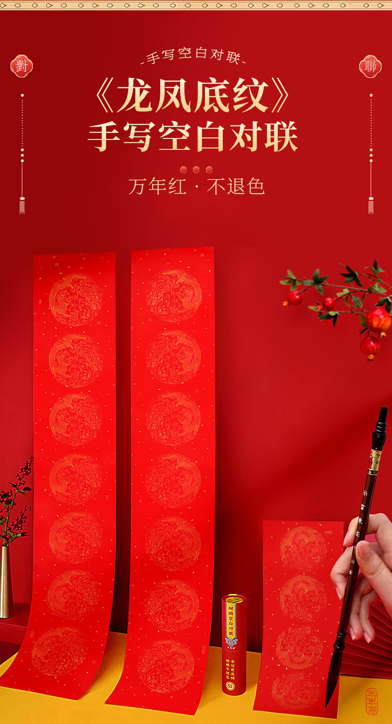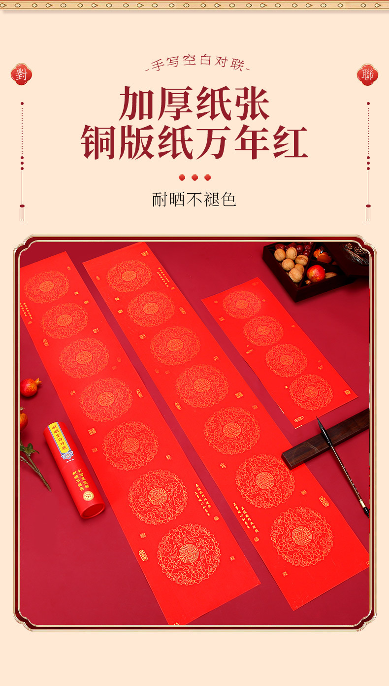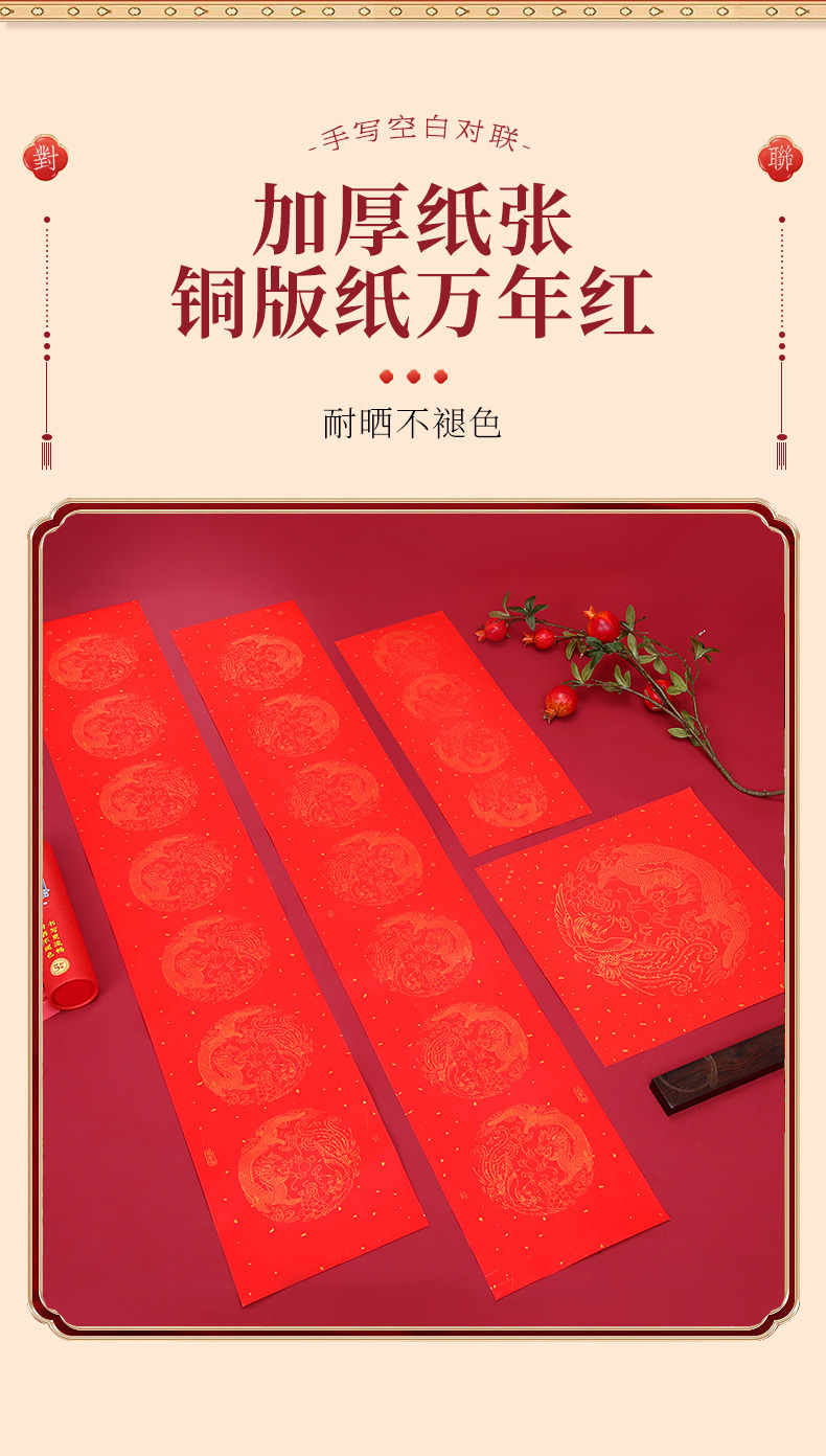 年年好新款空白对联毛笔书法手写对联纸DIY春联红纸龙凤底纹喜庆
