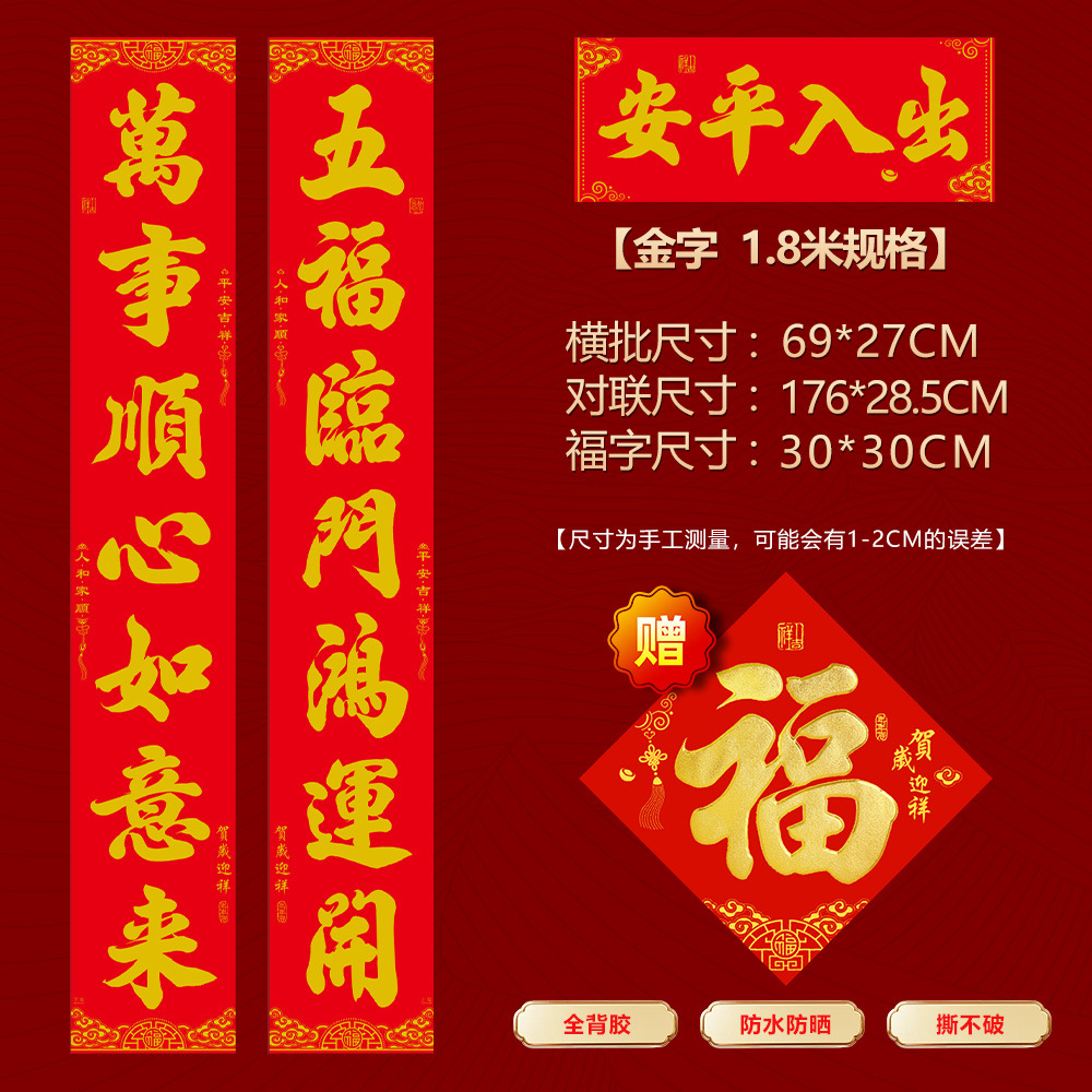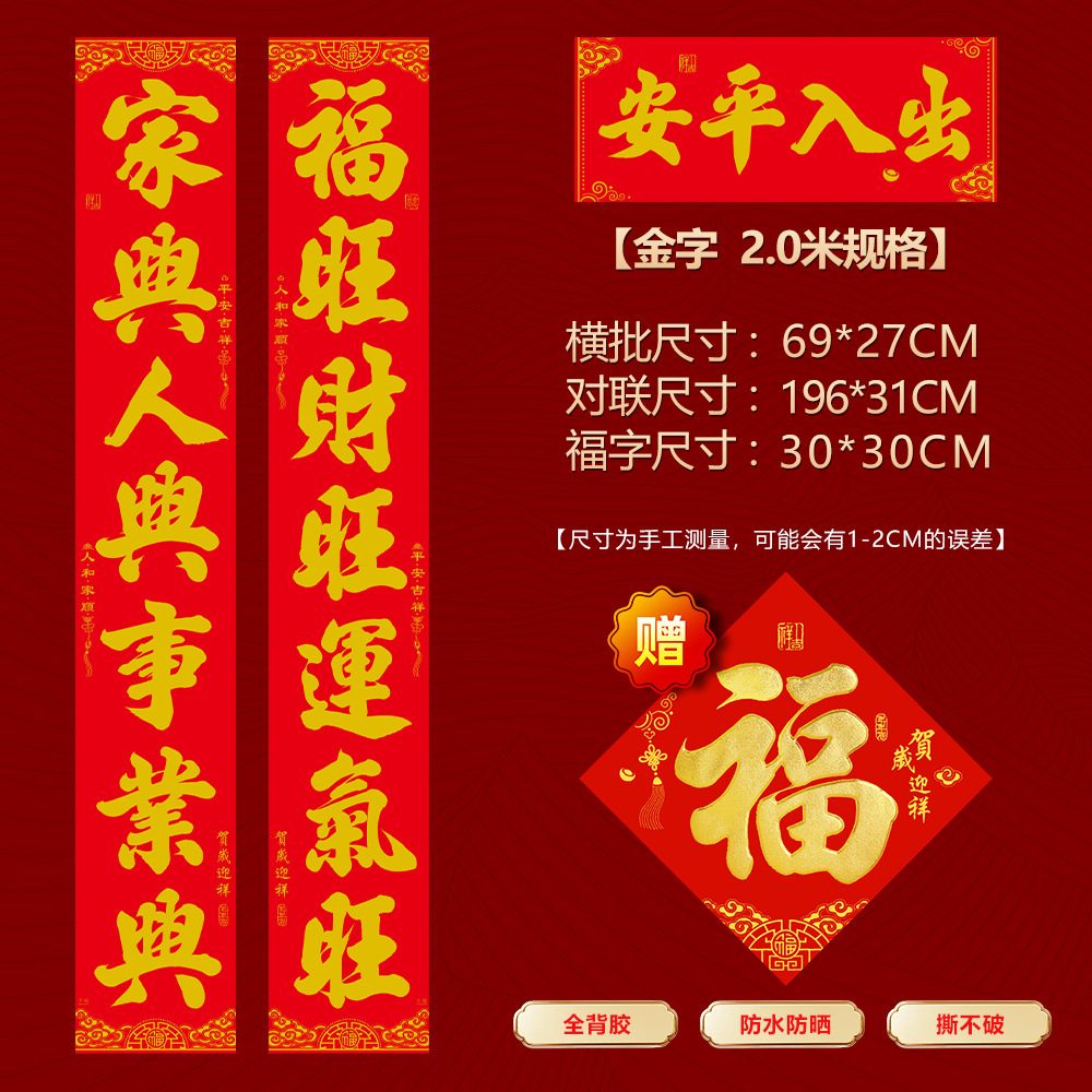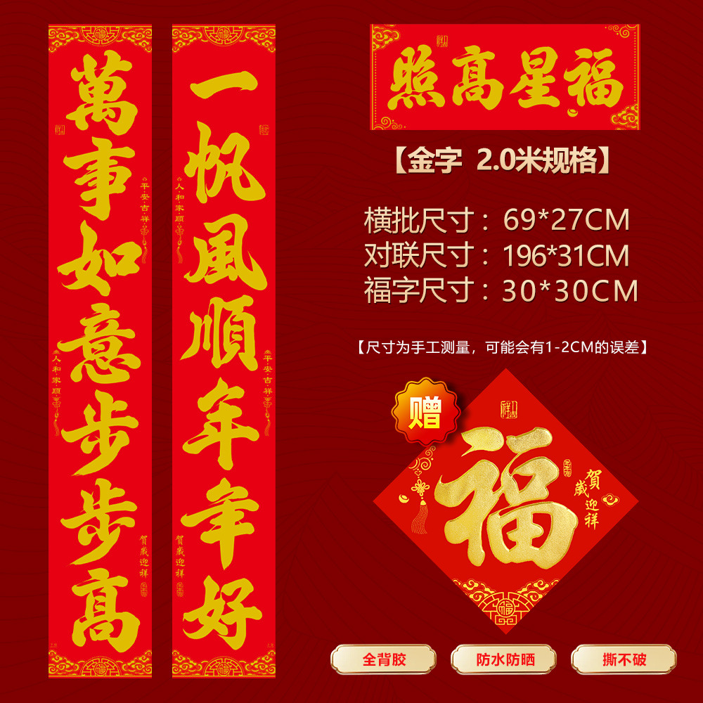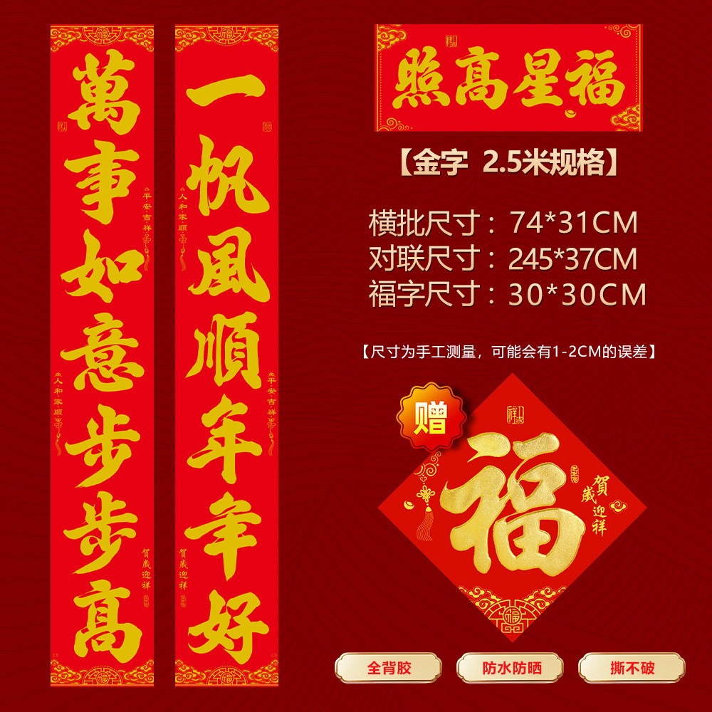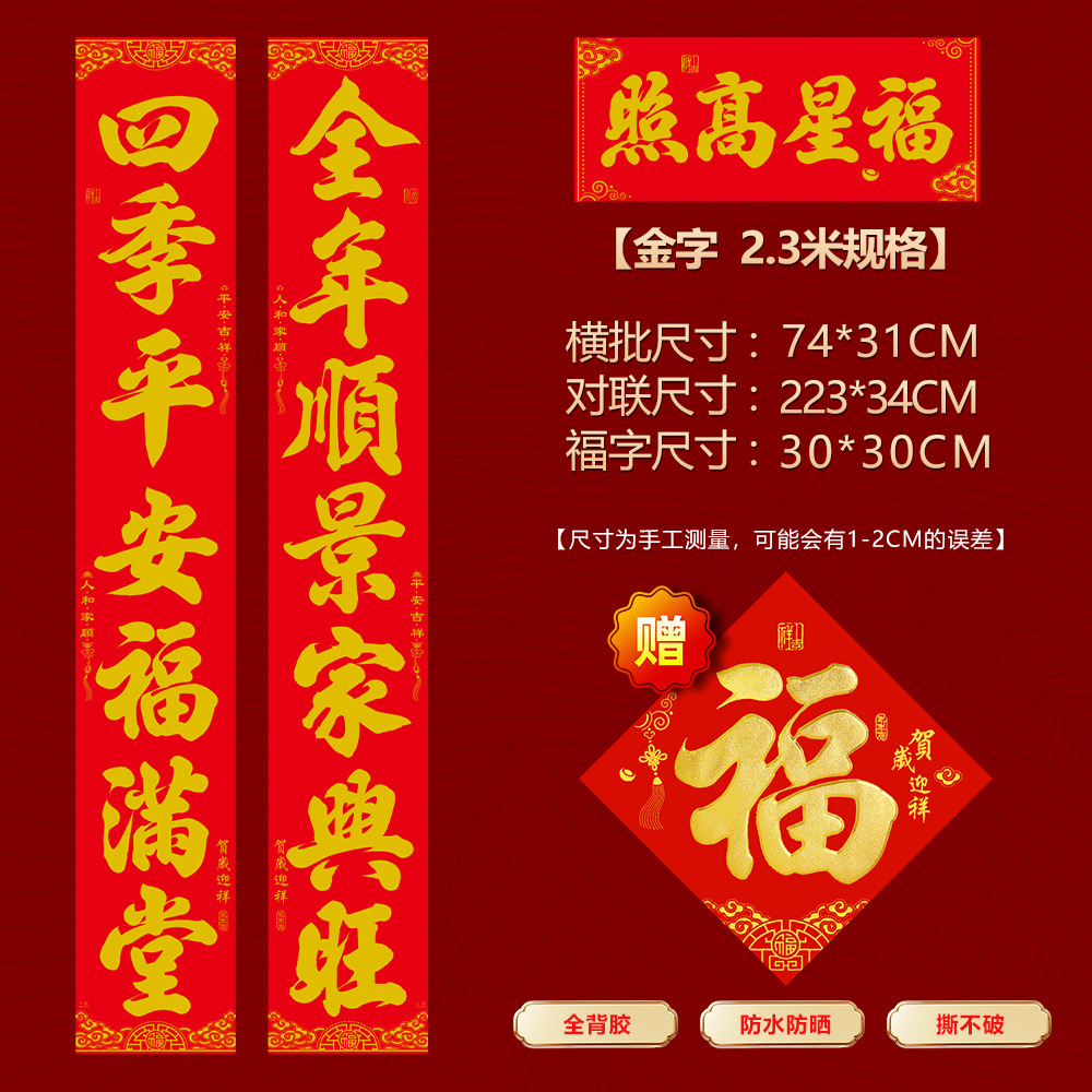 | full adhesive self-adhesive couplet [send fu character]](全背胶自粘对联【送福字】) | USD $7.32 | 98 set available |