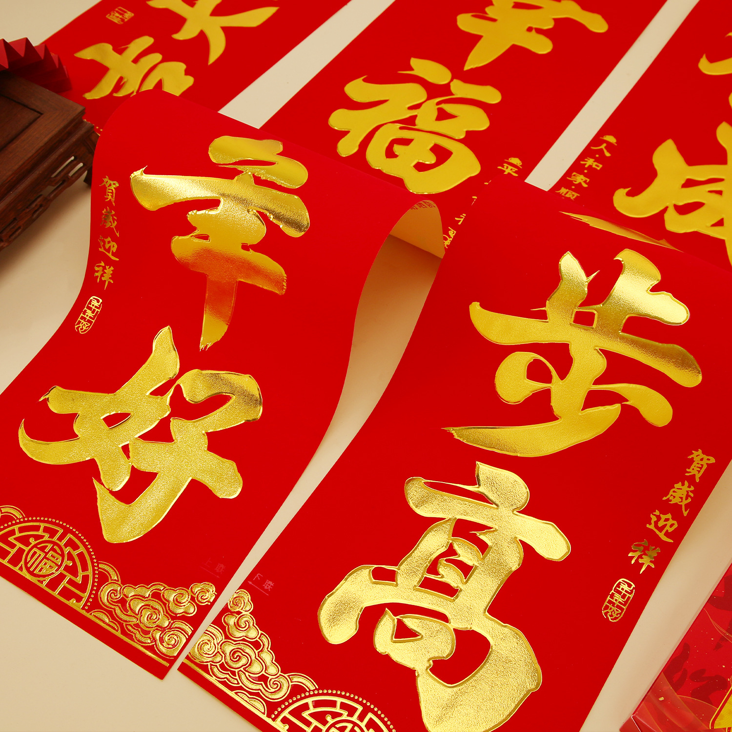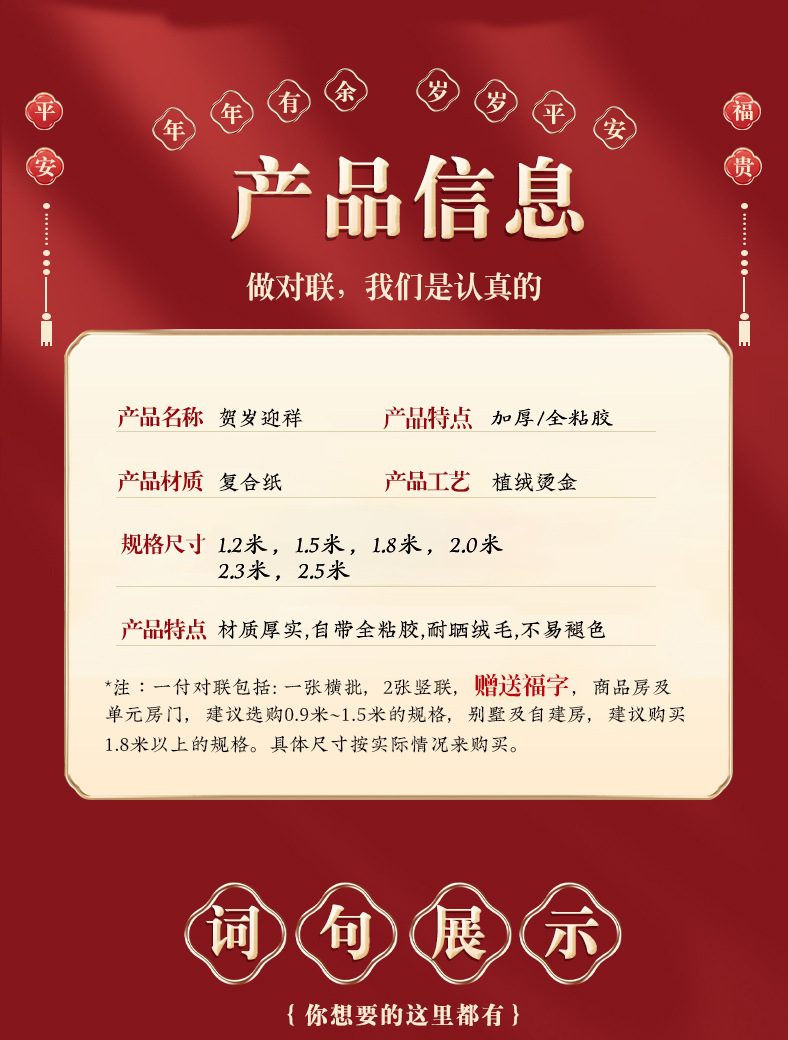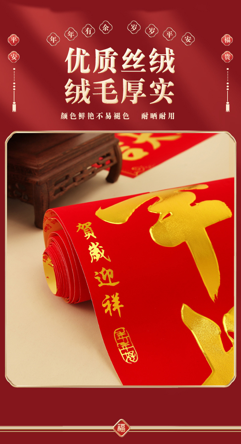 新款新年全背胶春节装饰喜庆撕不烂对联大门丝绒春联年货过年对联