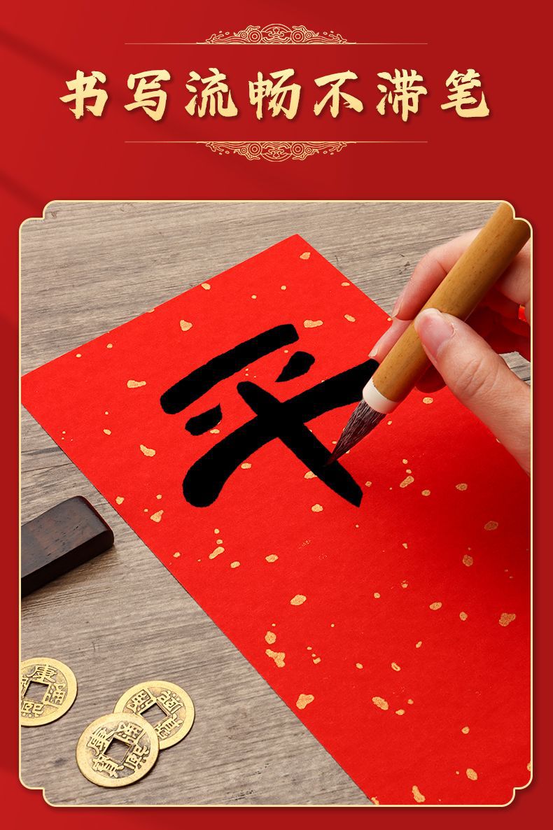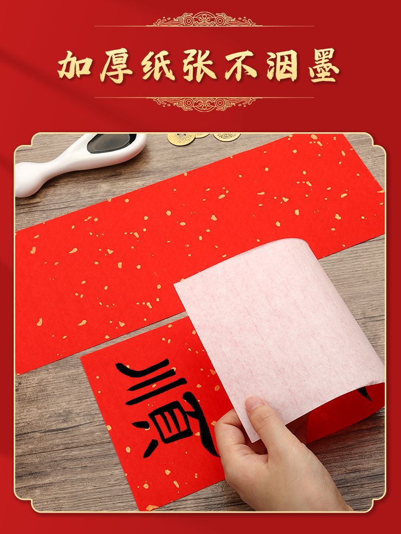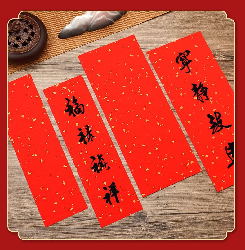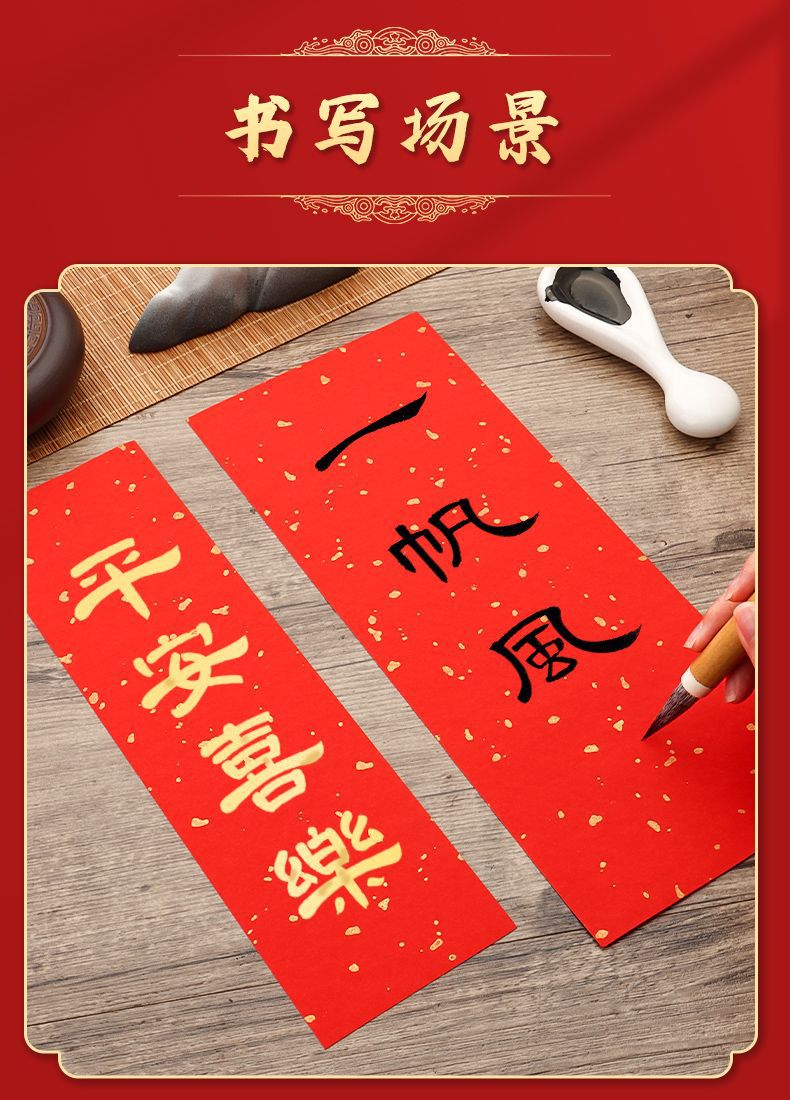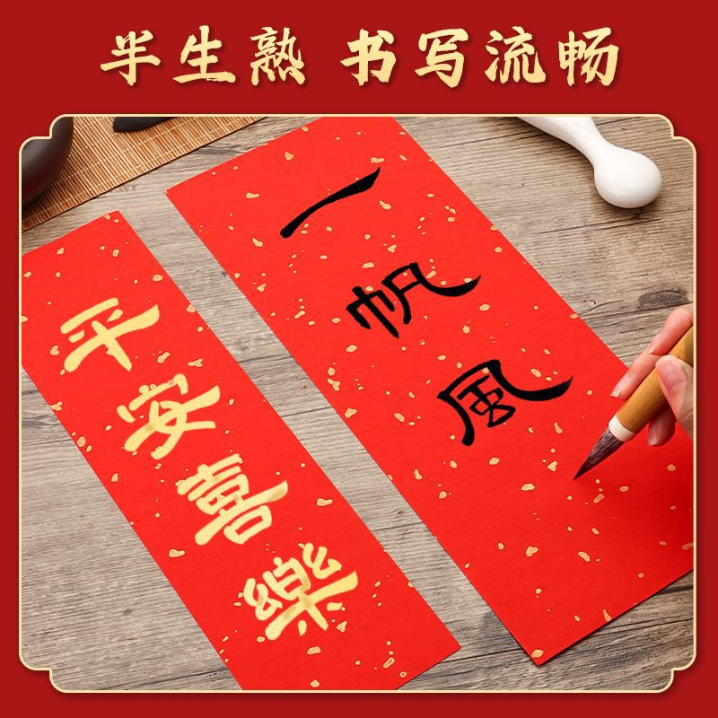 红色洒金宣纸手写挥春小对联纸新年四字吉语自写万年红春联斗方