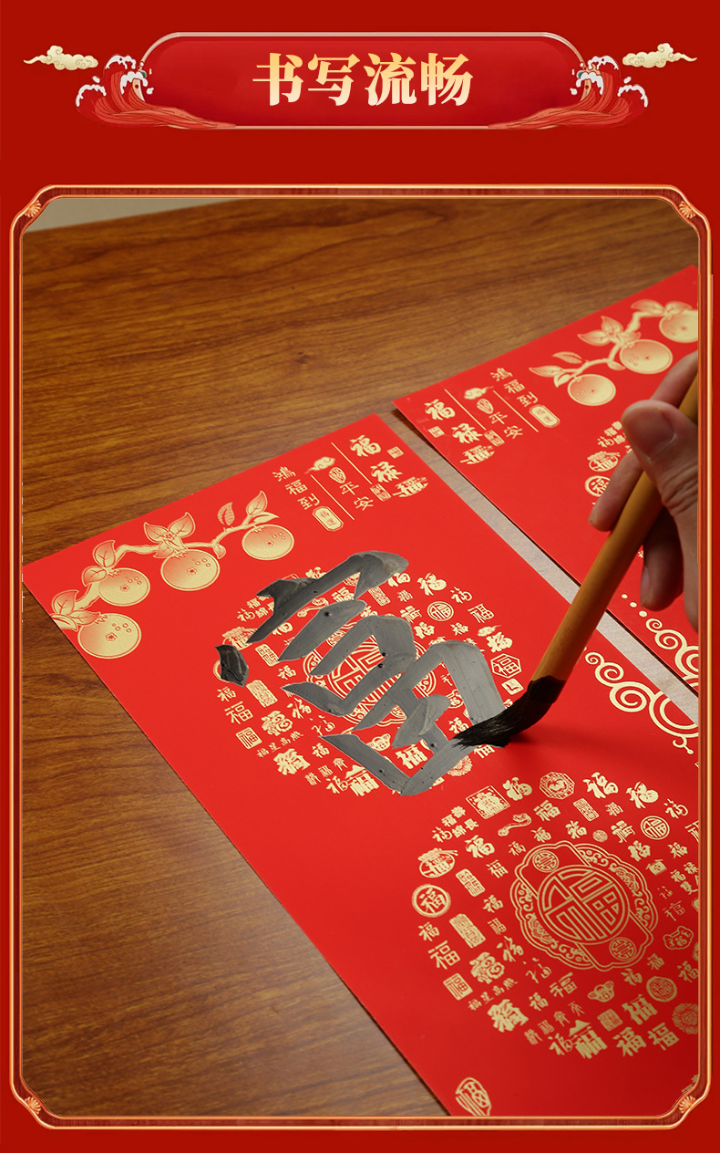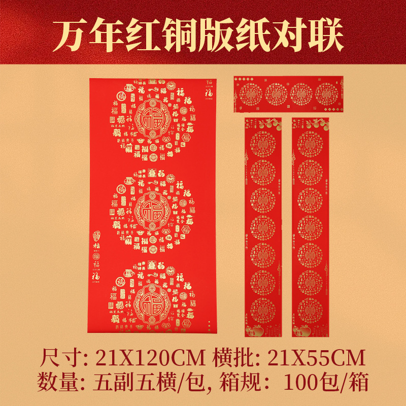 春节铜版对联纸高档加厚手写空白春联不褪色七言瓦当万年红铜版纸