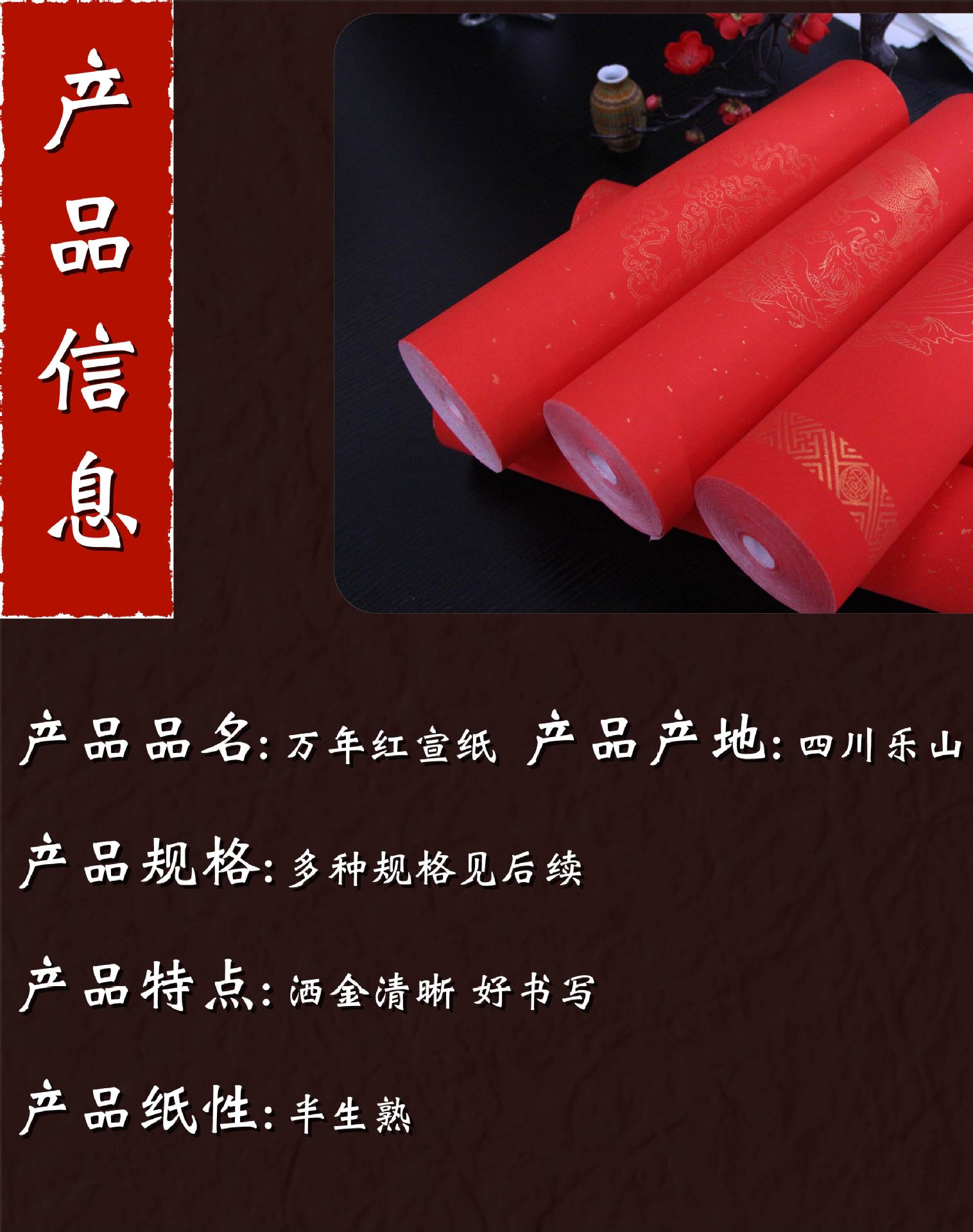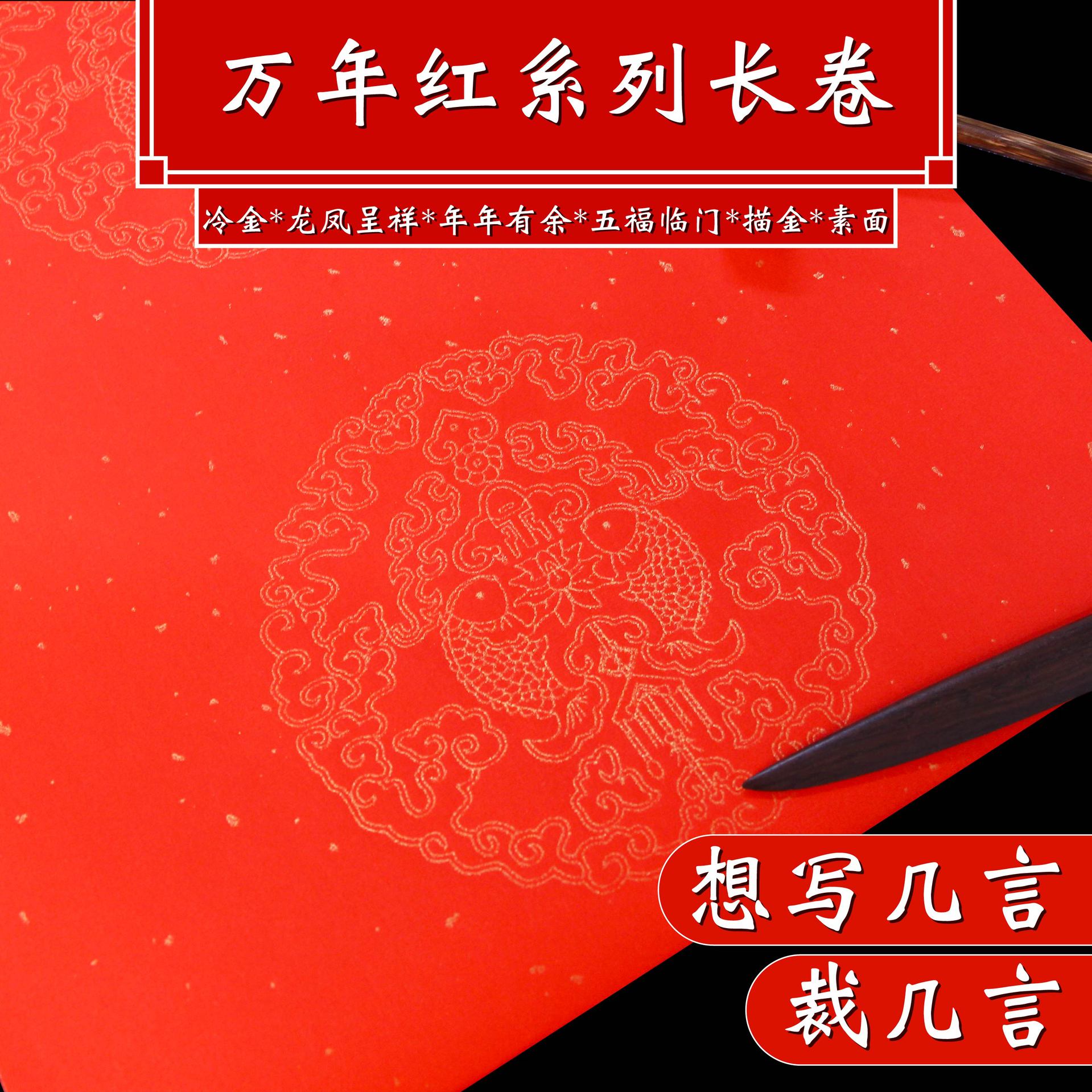 万年红春联洒金长卷宣纸大红加厚半生半熟空白手写对联纸瓦当厂家