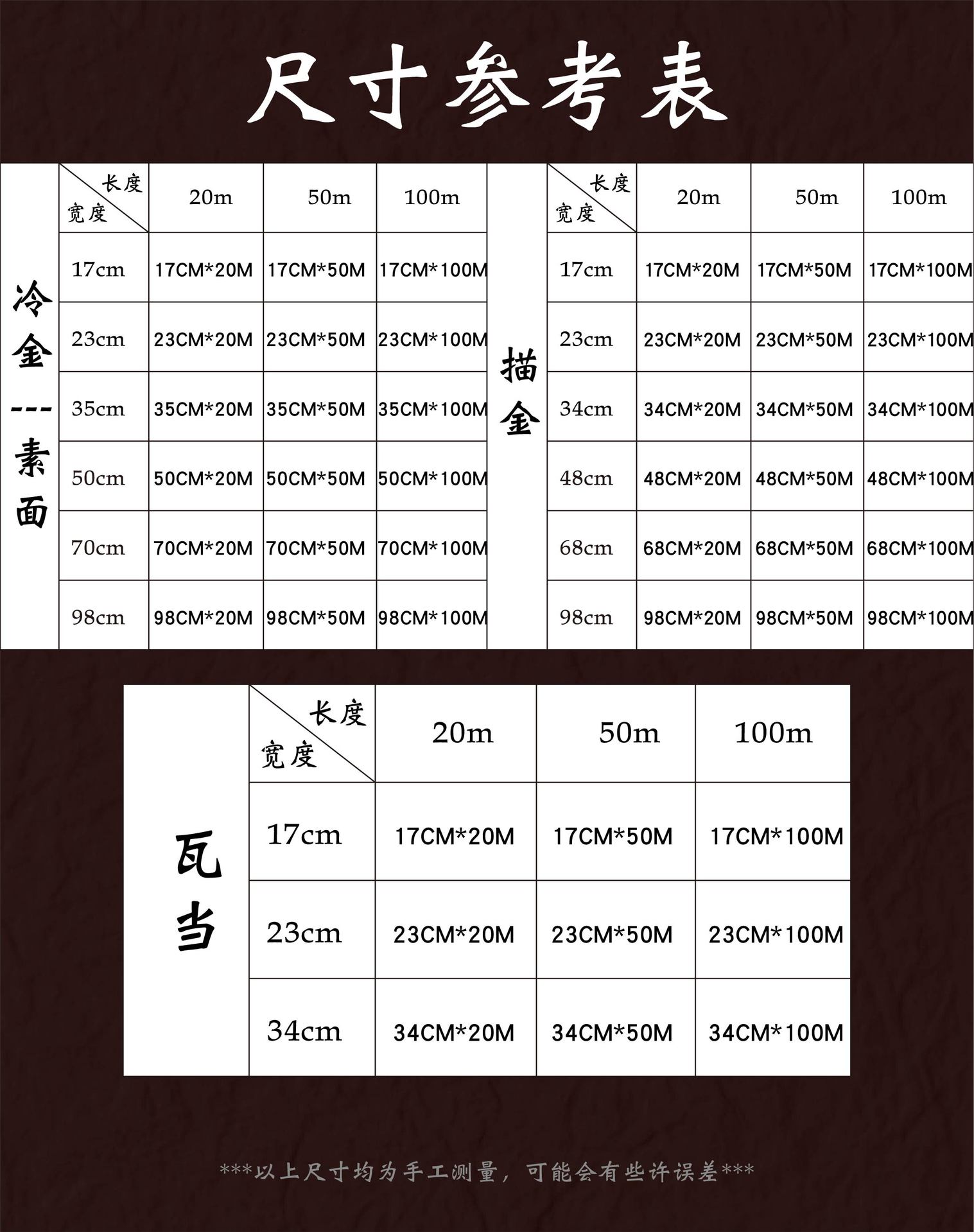 | 34/35cm * 20 m(34/35厘米*20米) | USD $2.51 | 885 roll available |