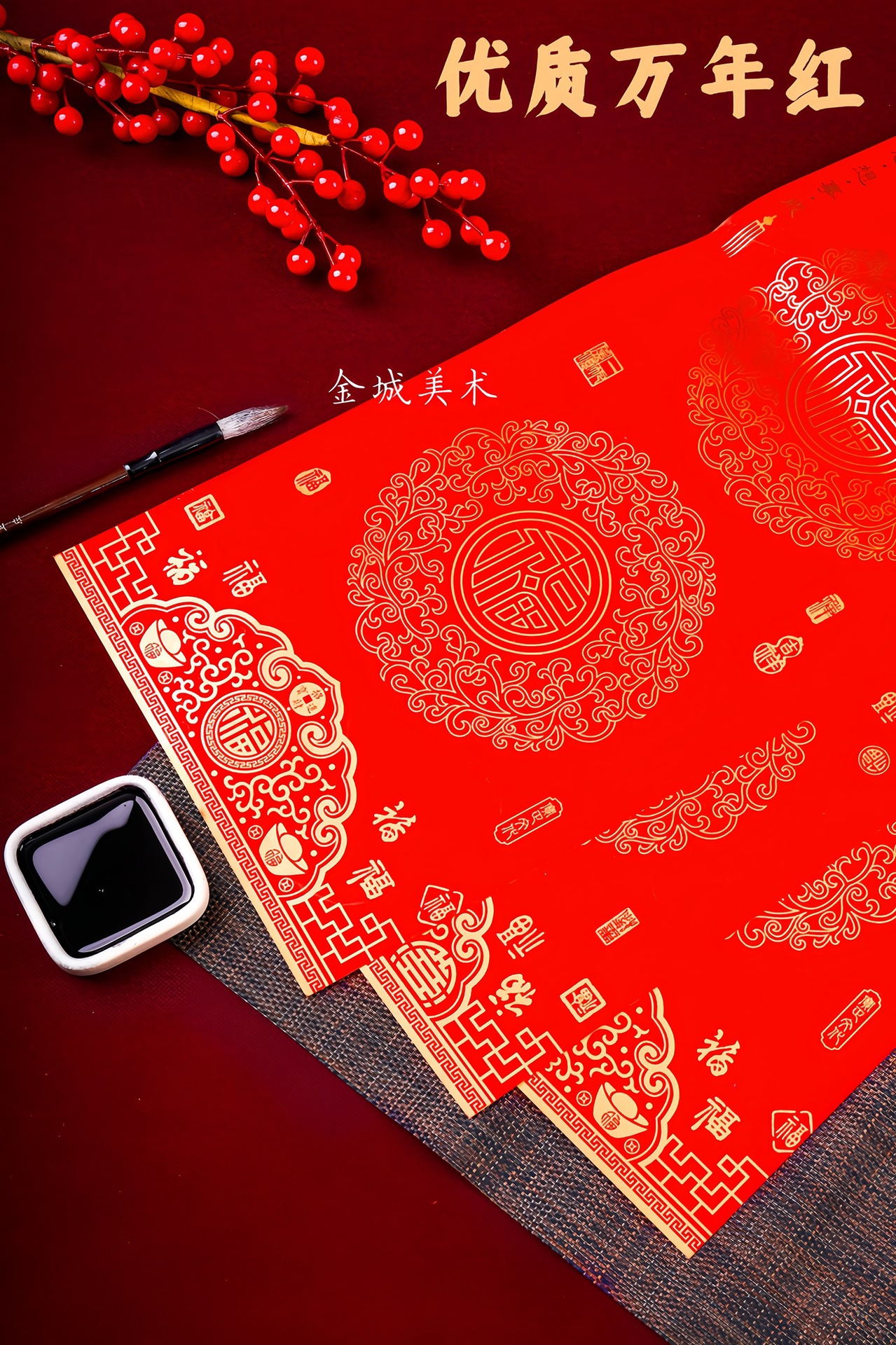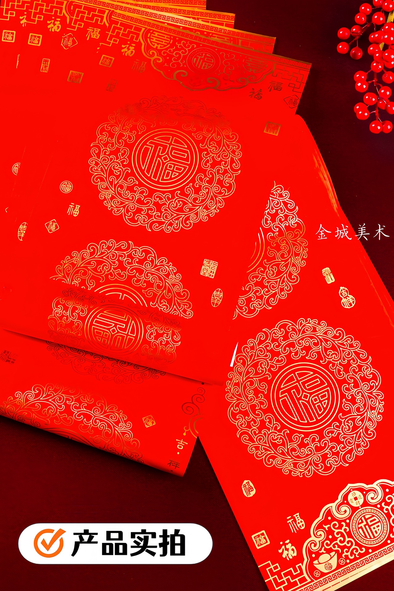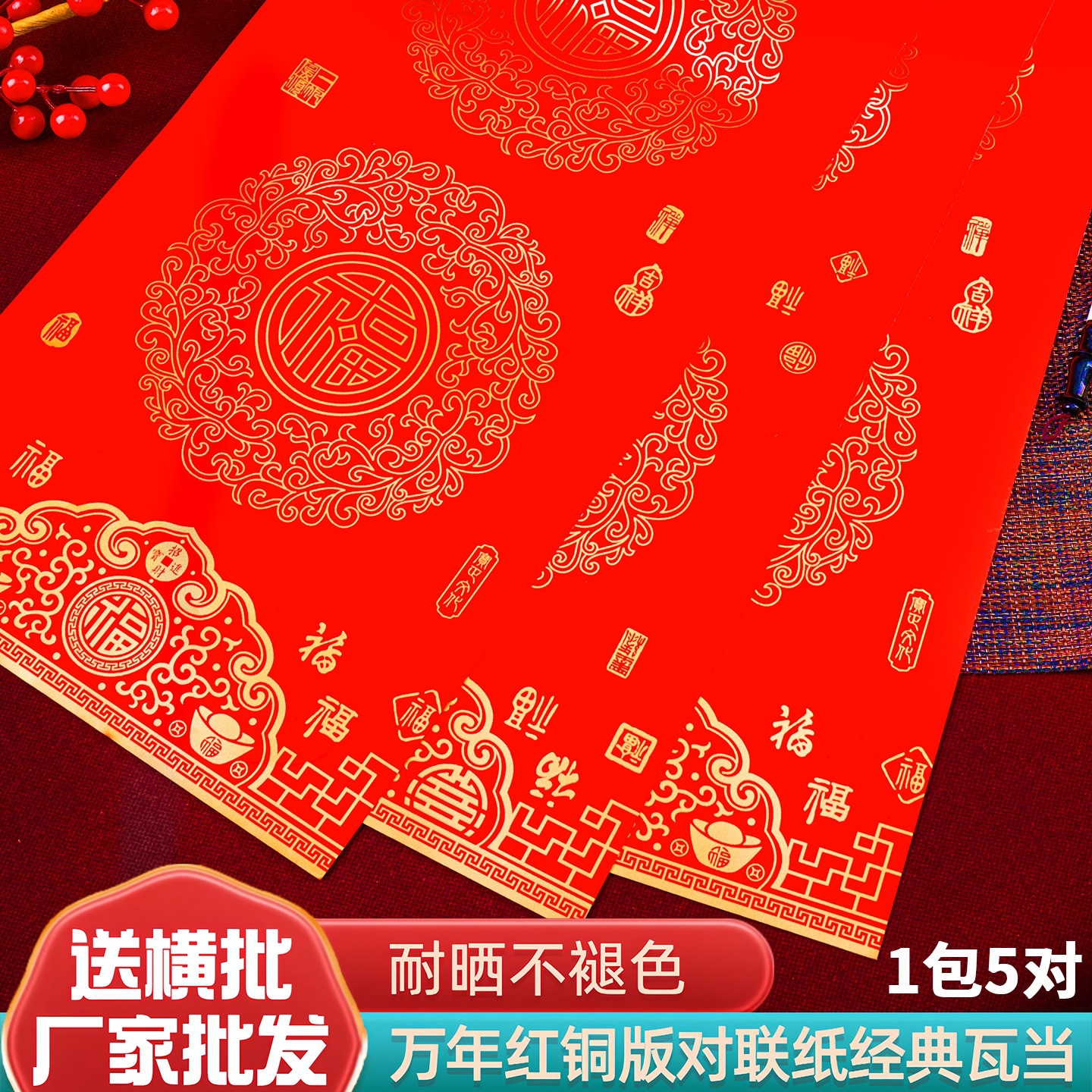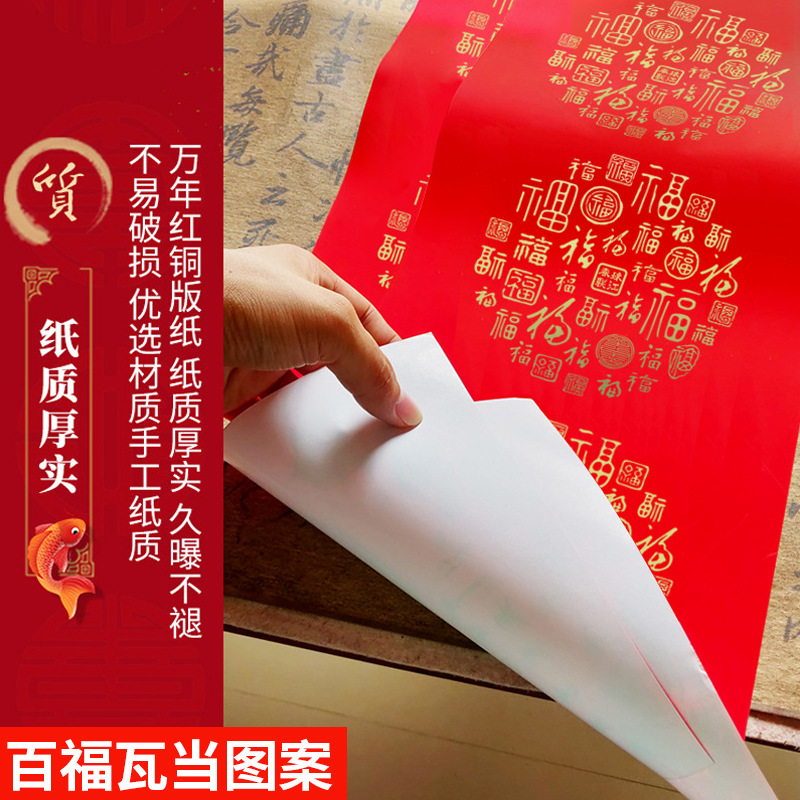 ✅春节铜版对联纸加厚手写空白春联不褪色七言瓦当万年红
