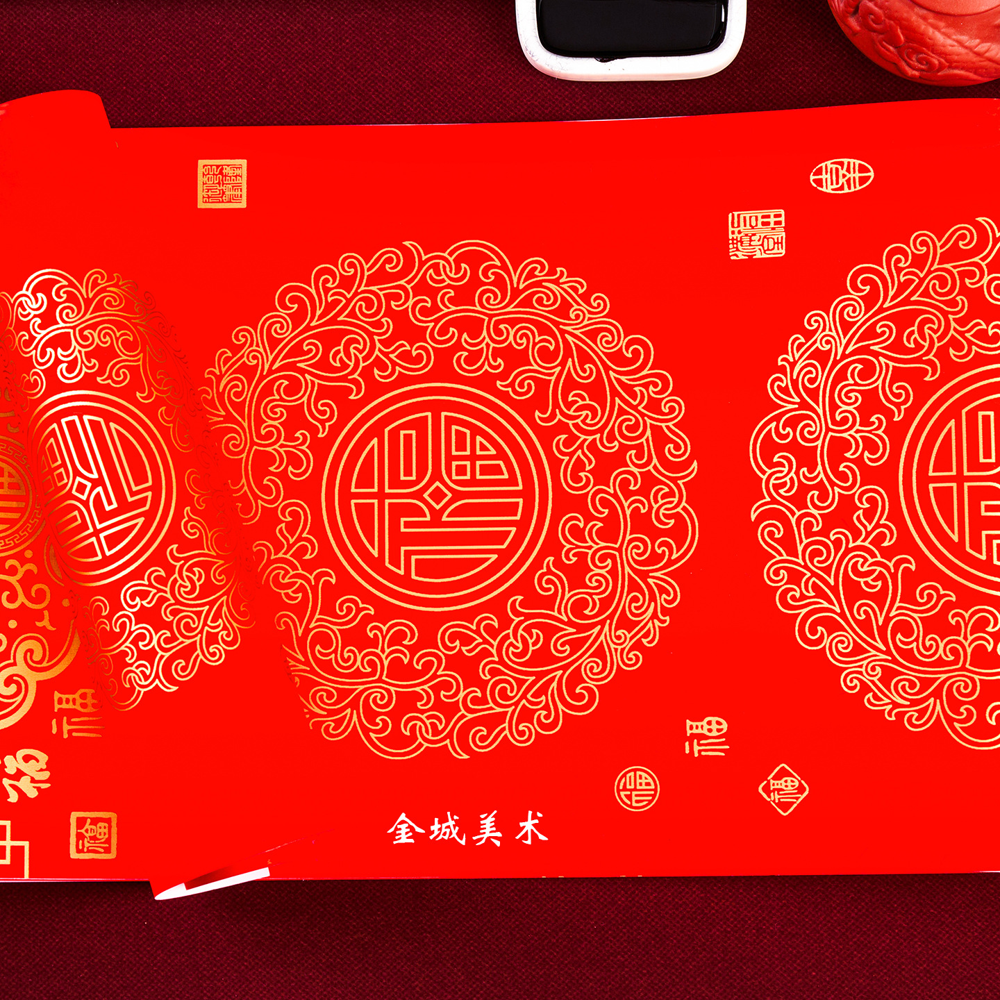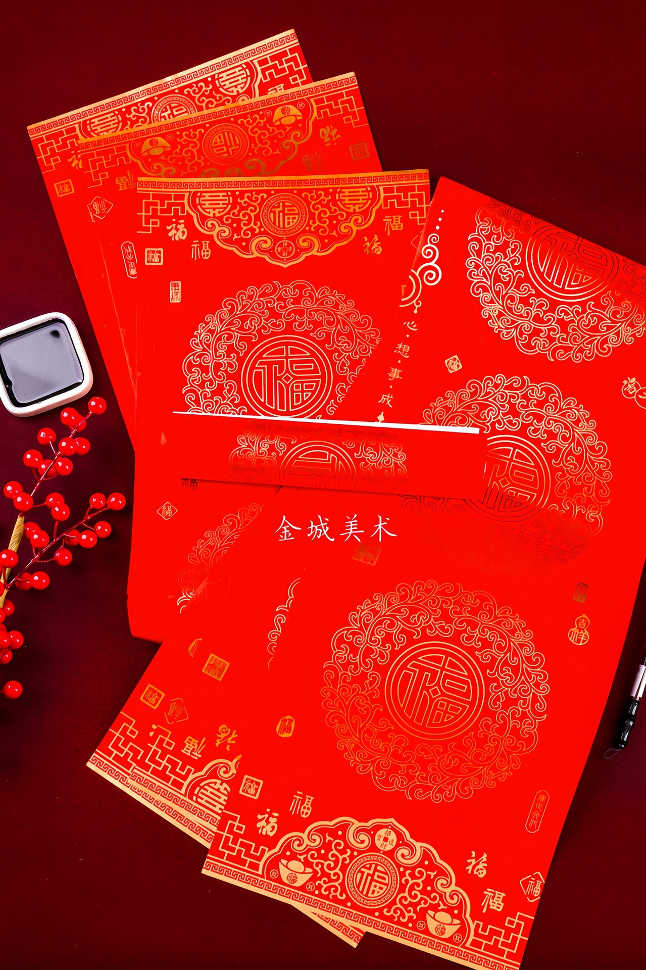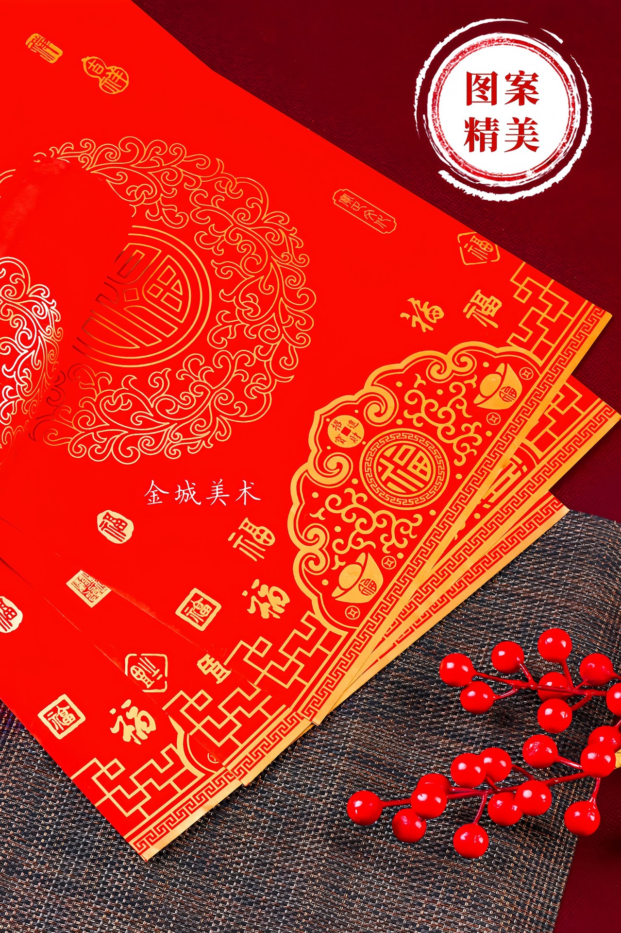 ✅春节铜版对联纸加厚手写空白春联不褪色七言瓦当万年红