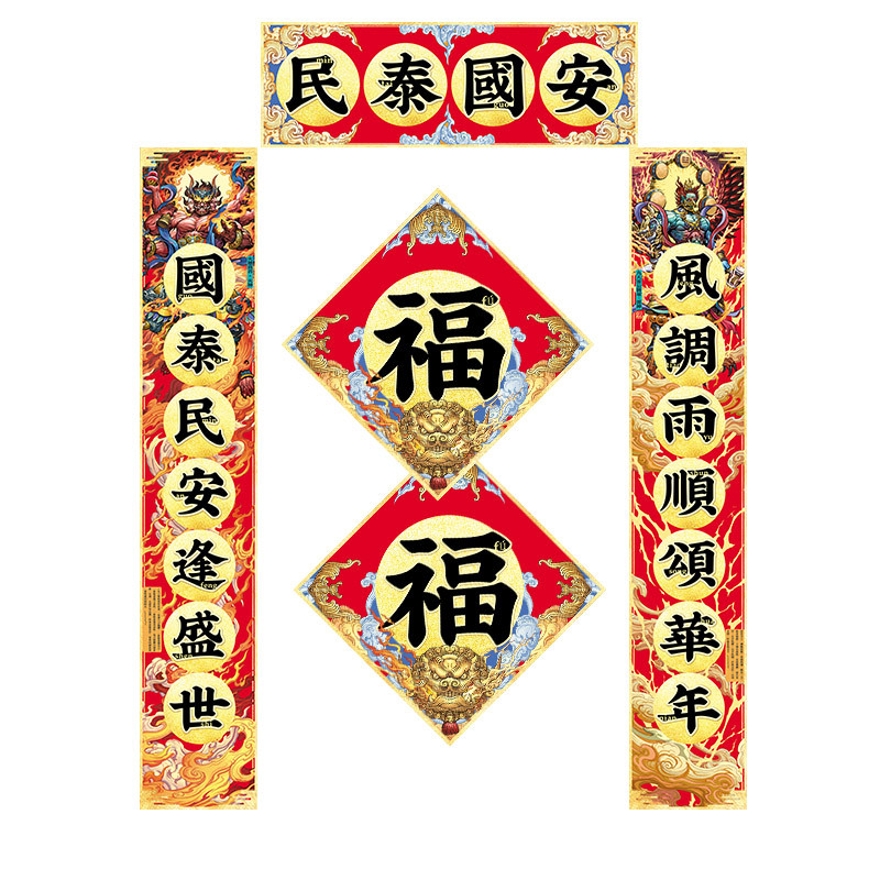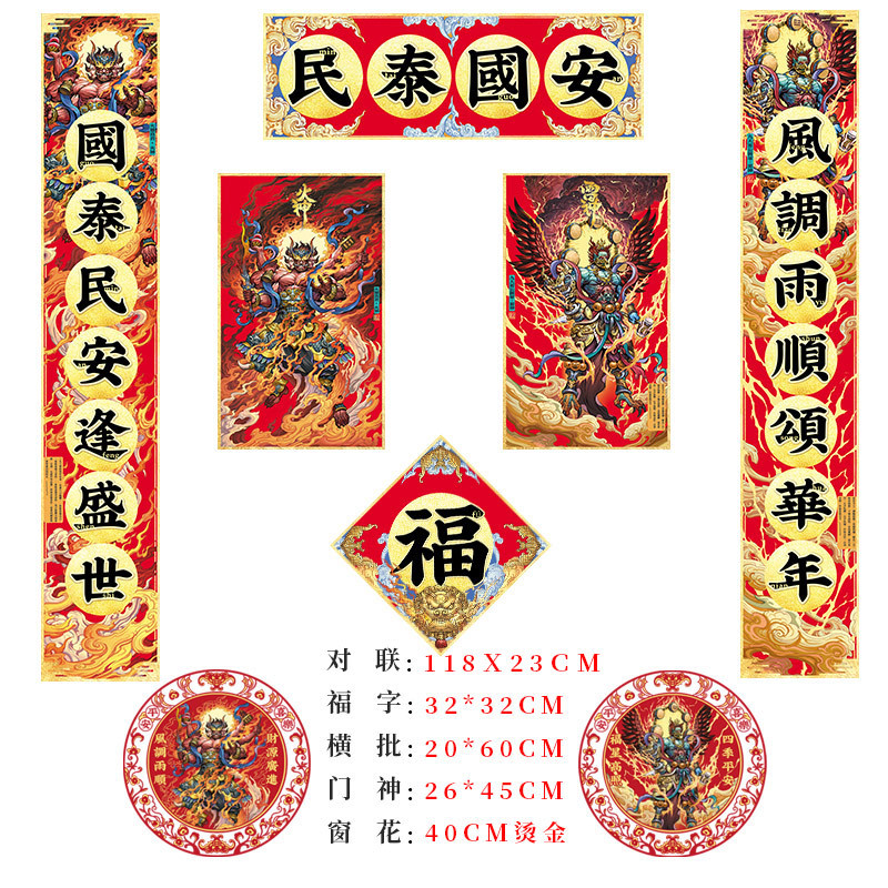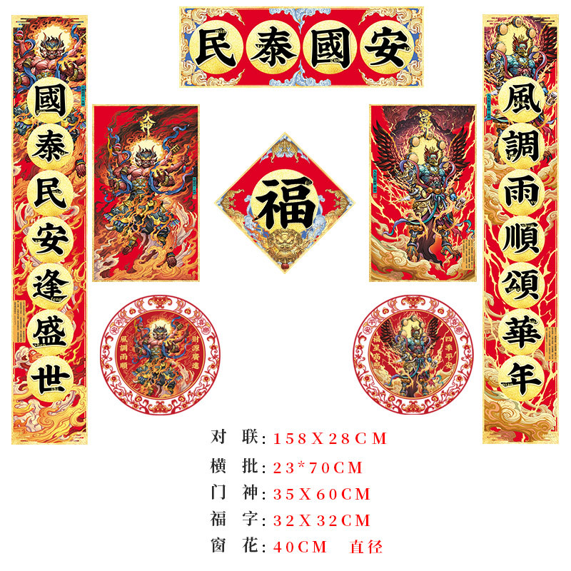 2026马年雷火神对联大门春联春节广告对联套装礼盒福大礼包logo