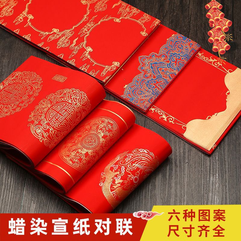2026蜡染万年红对联纸批发宣纸空白手写春联书法红纸五七言福字纸