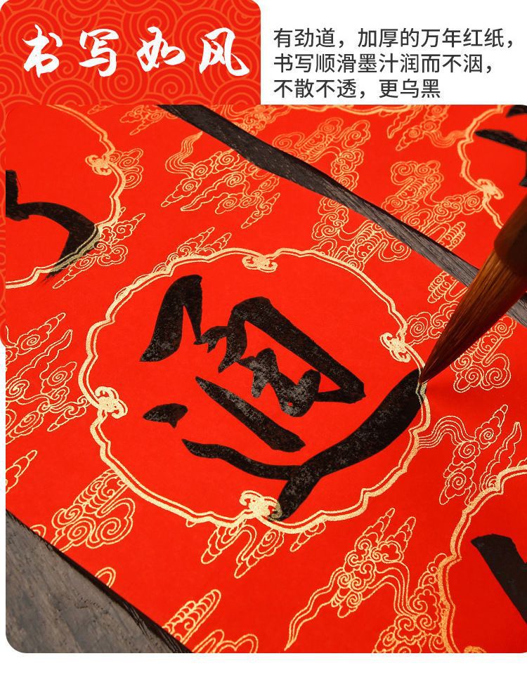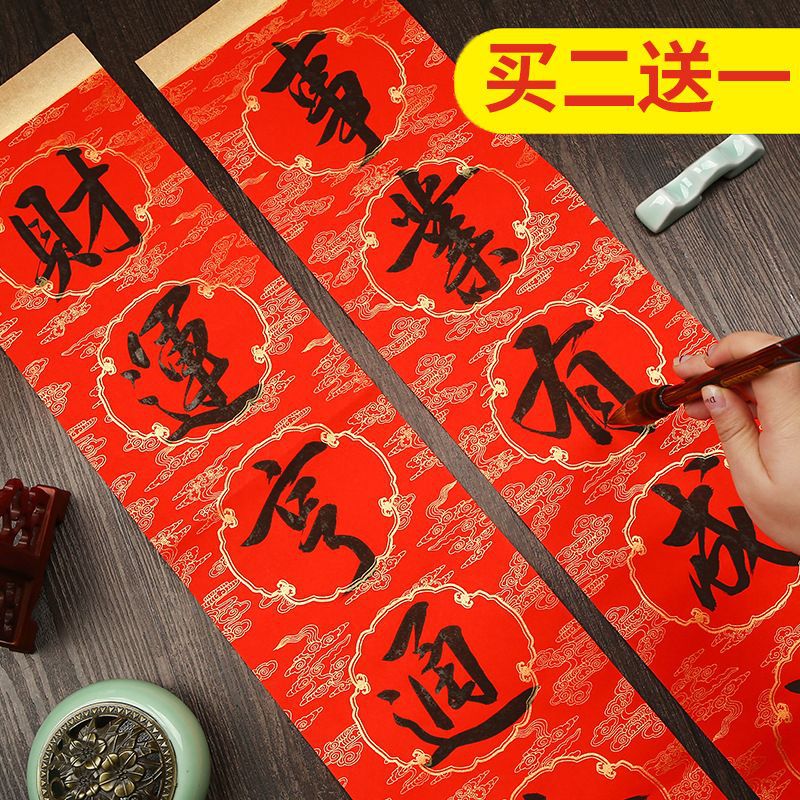 2026蜡染万年红对联纸批发宣纸空白手写春联书法红纸五七言福字纸