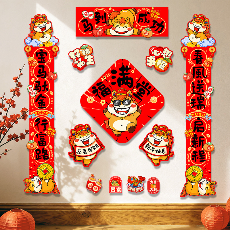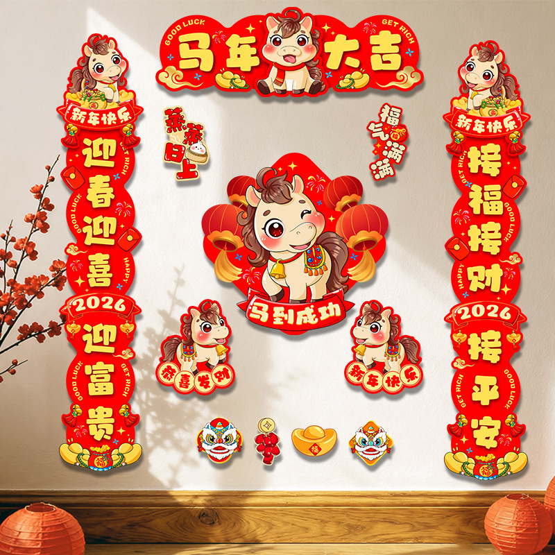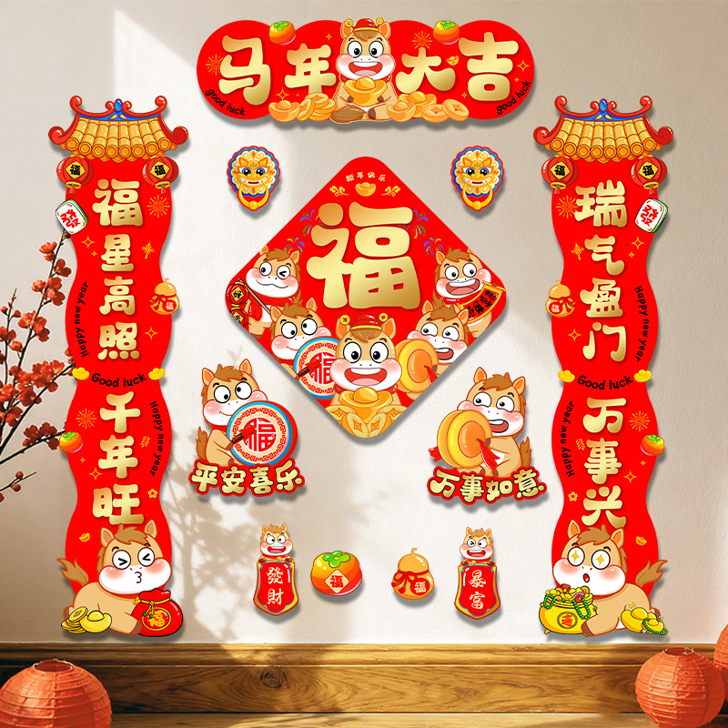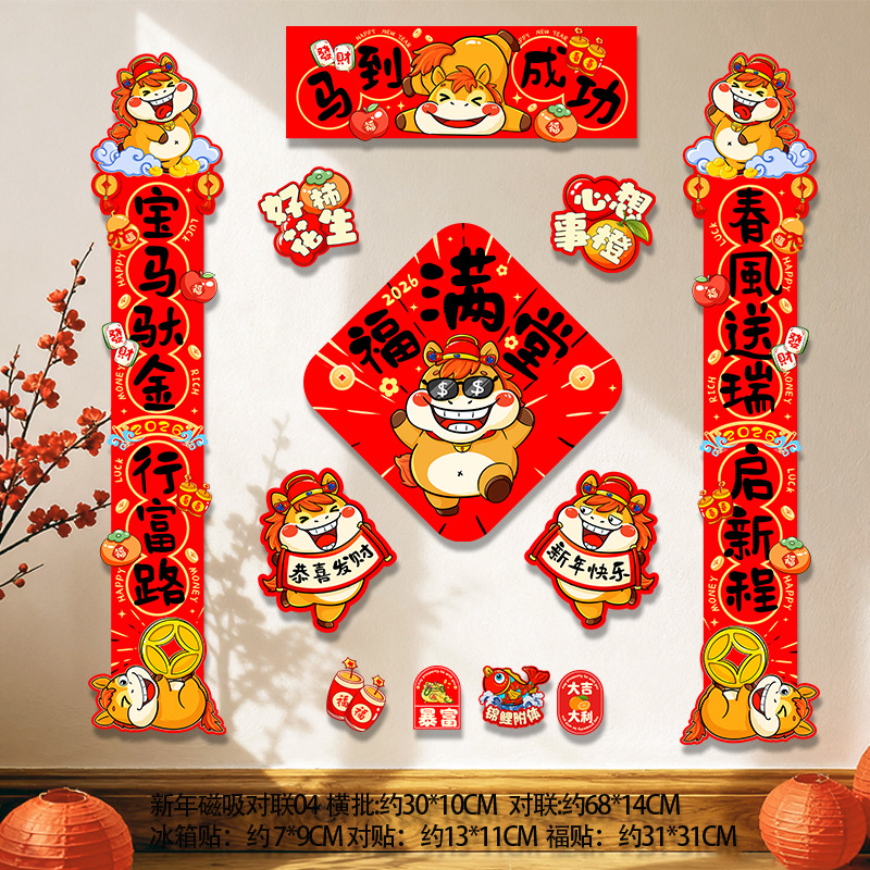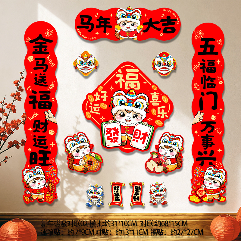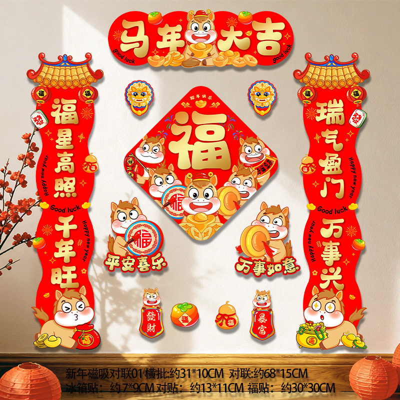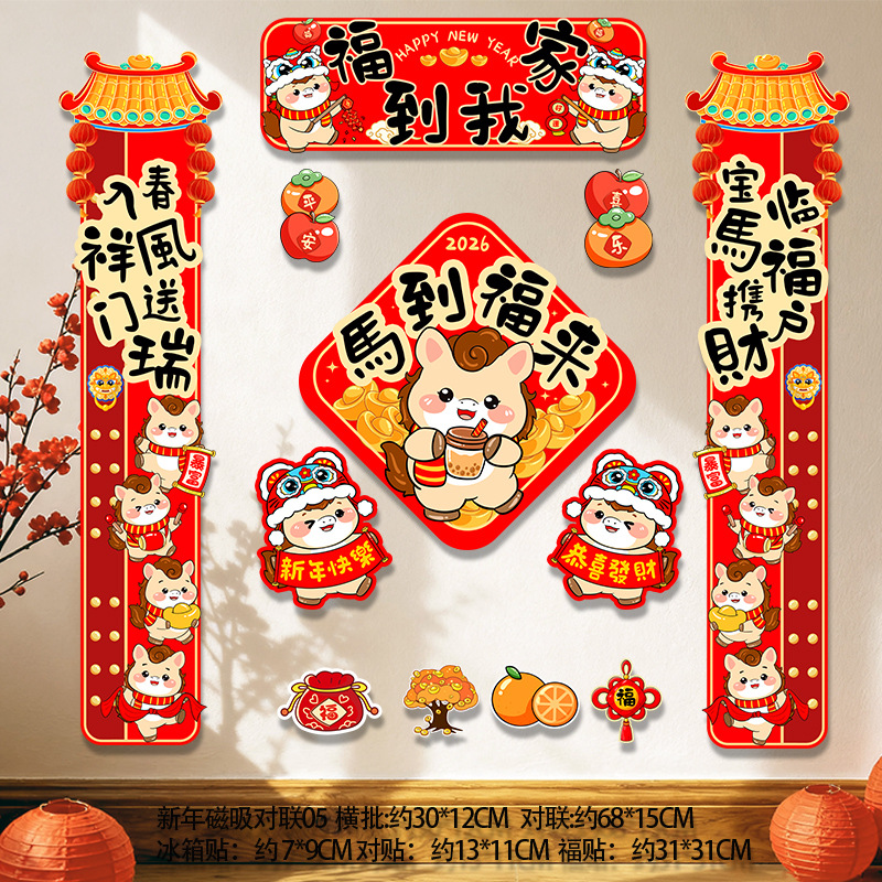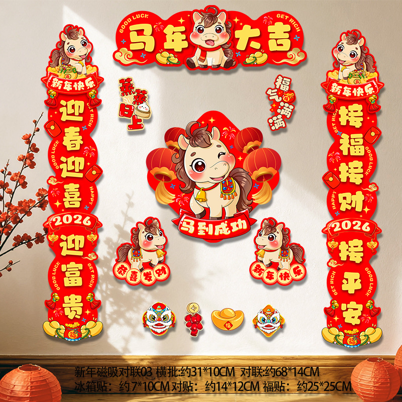 2026新款马年磁吸对联春节过年家用福字贴纸年画大门装饰布置春联