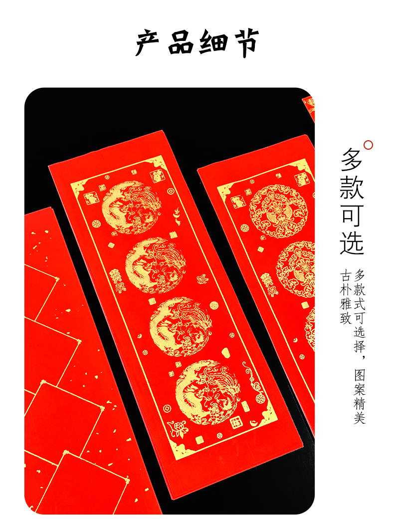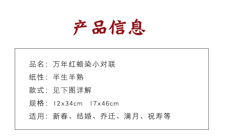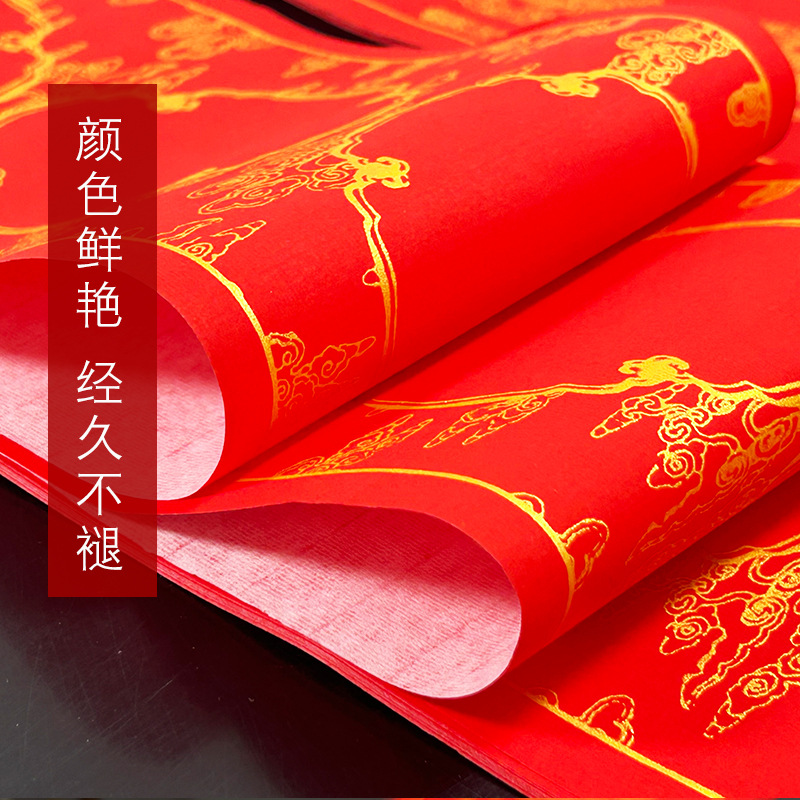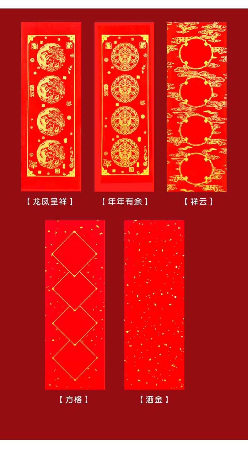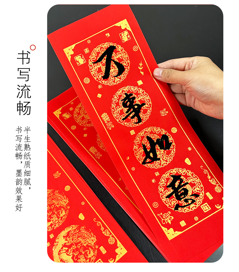 蜡染万年红珲春小对联迷你小尺寸空白手写四言吉语对联纸洒金春联