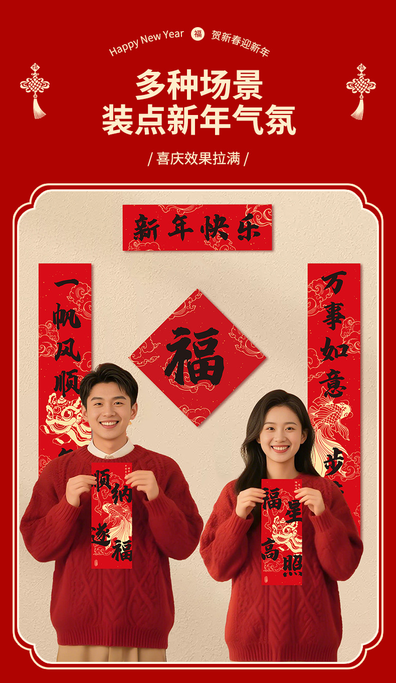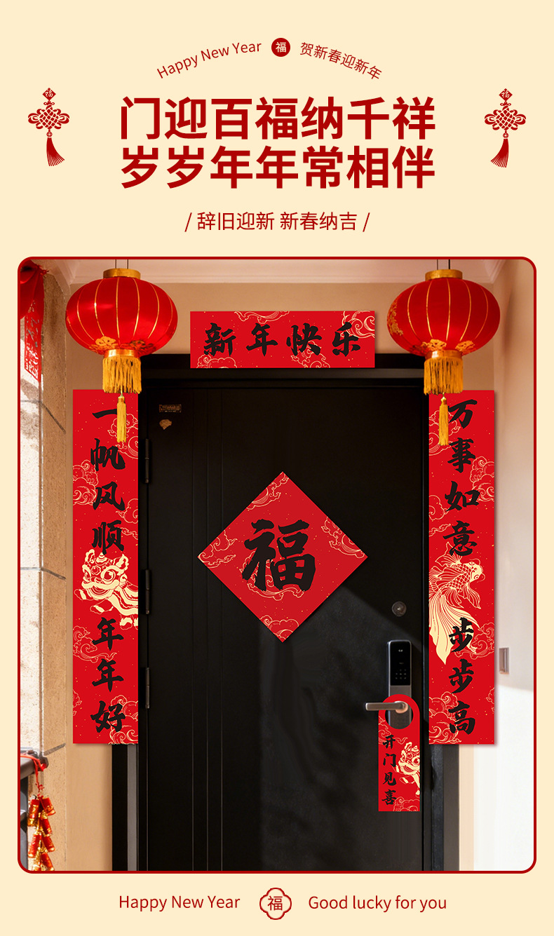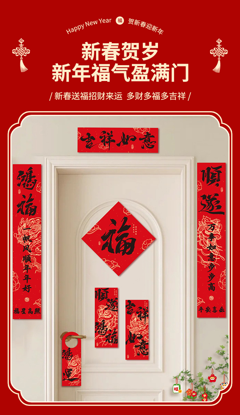 春联套装2026马年对联福字门贴新年入户门装饰门对门挂饰一对1R