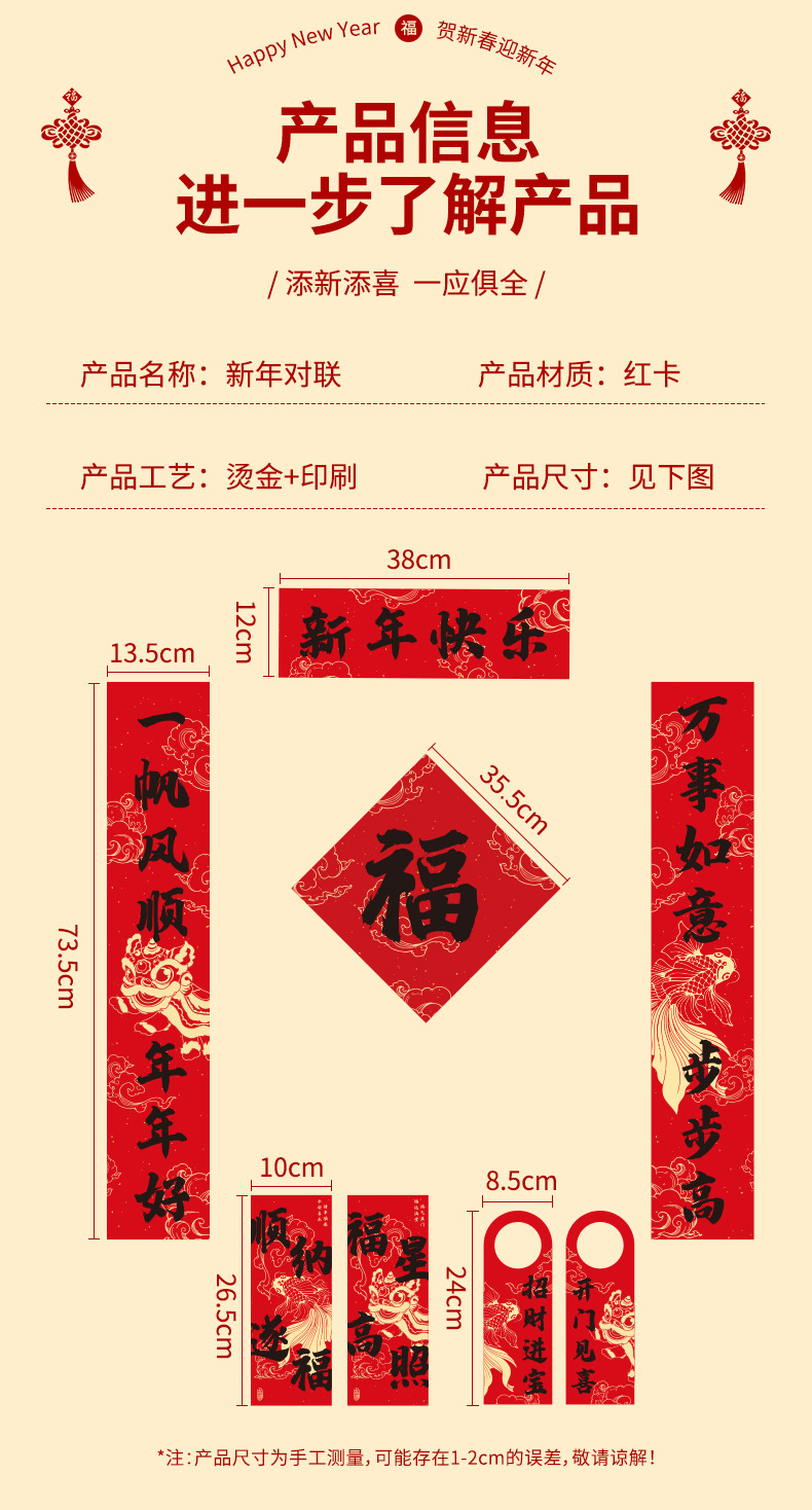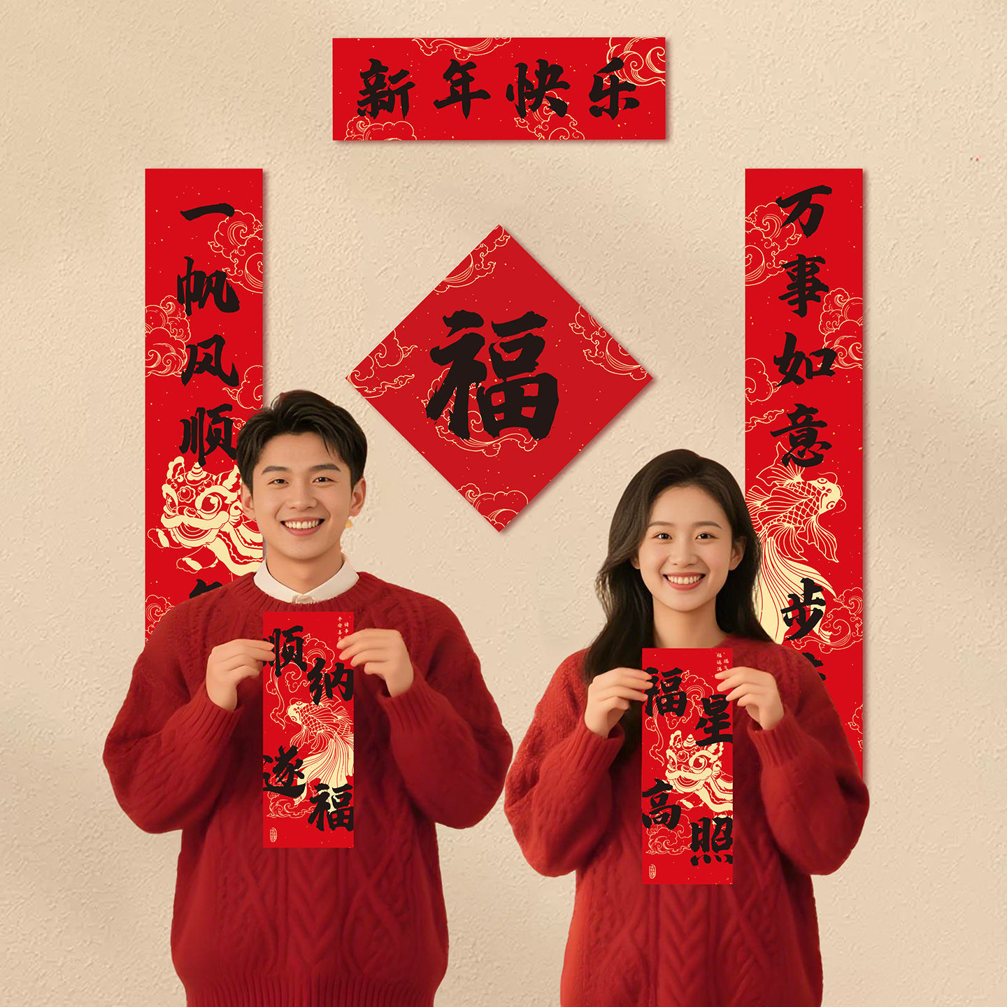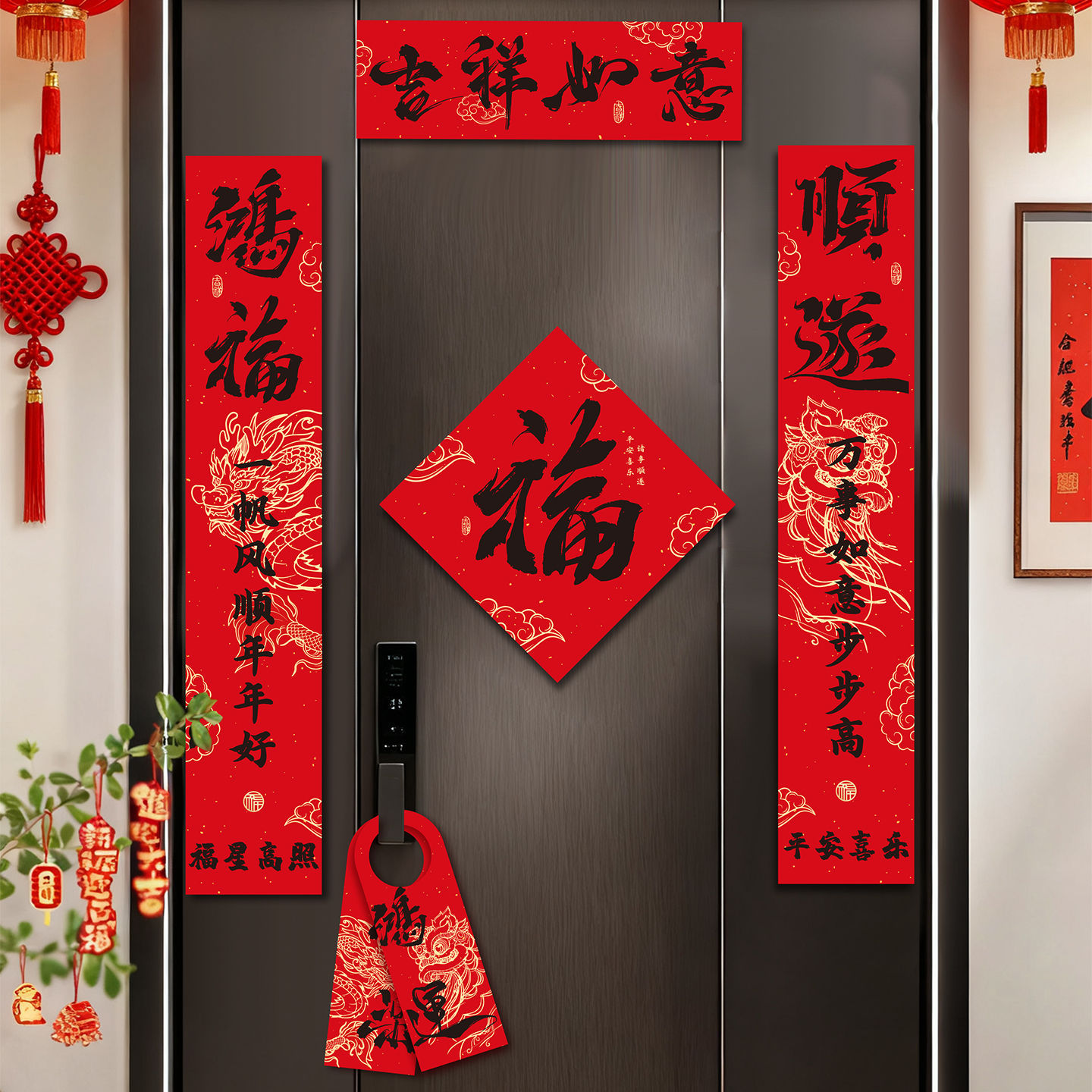 春联套装2026马年对联福字门贴新年入户门装饰门对门挂饰一对1R