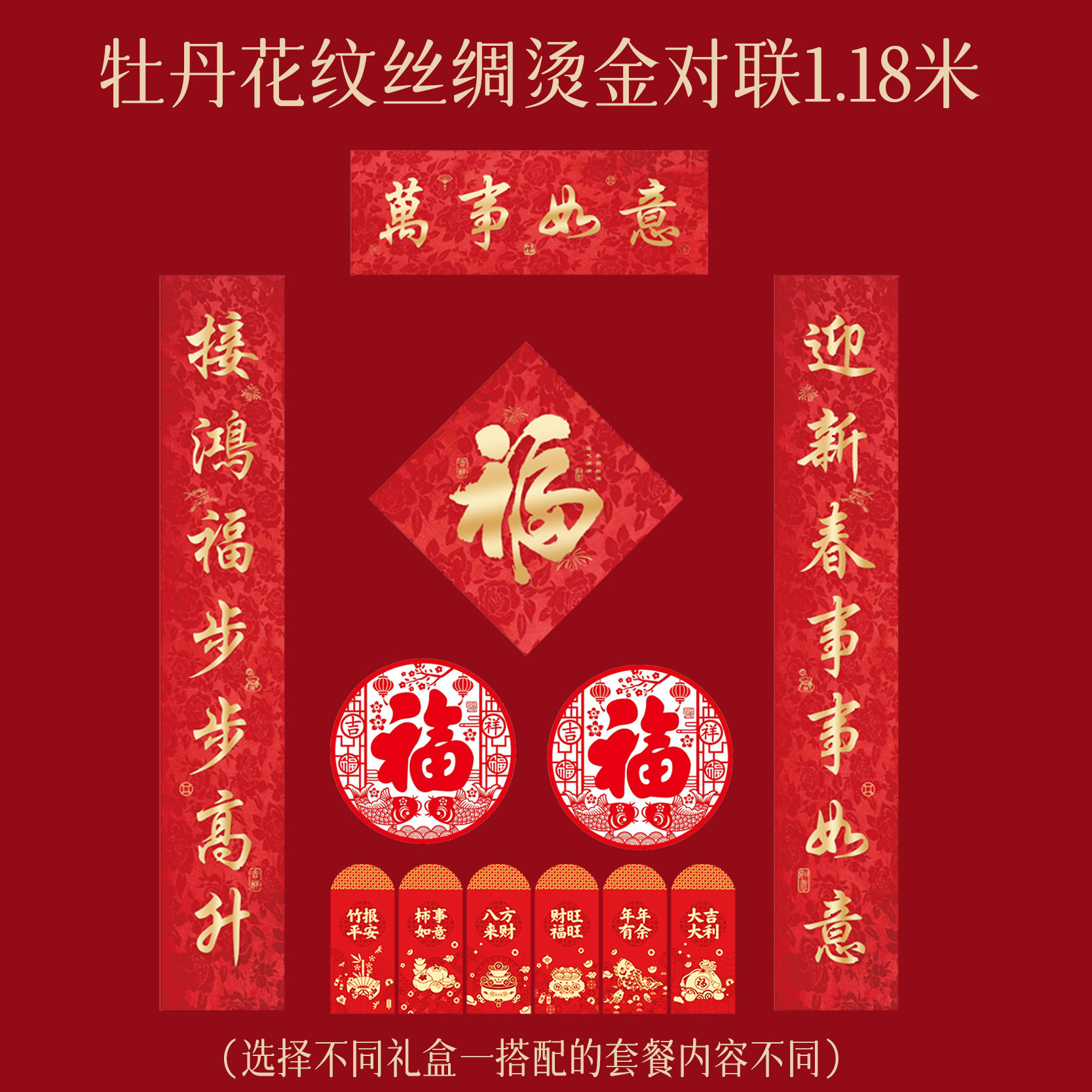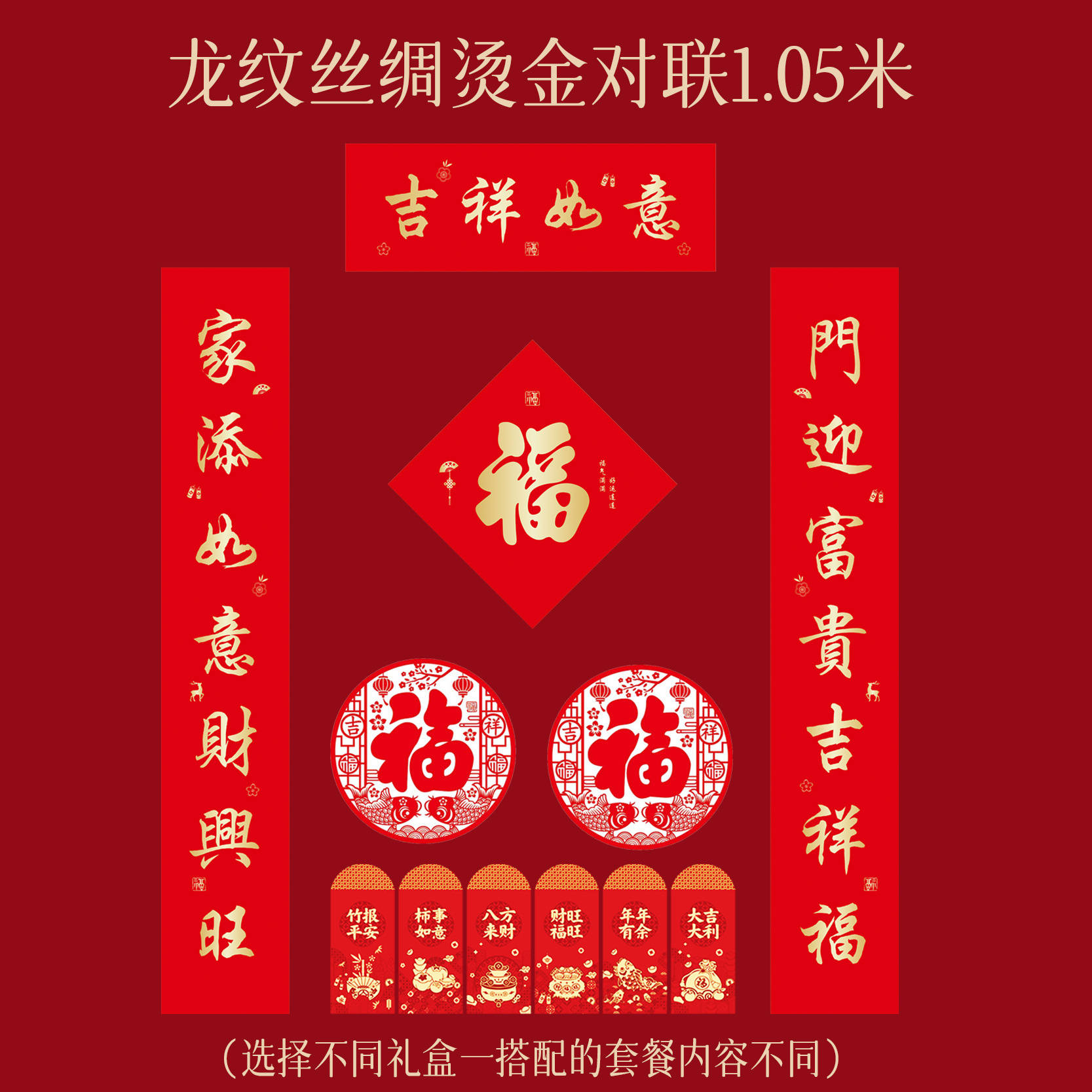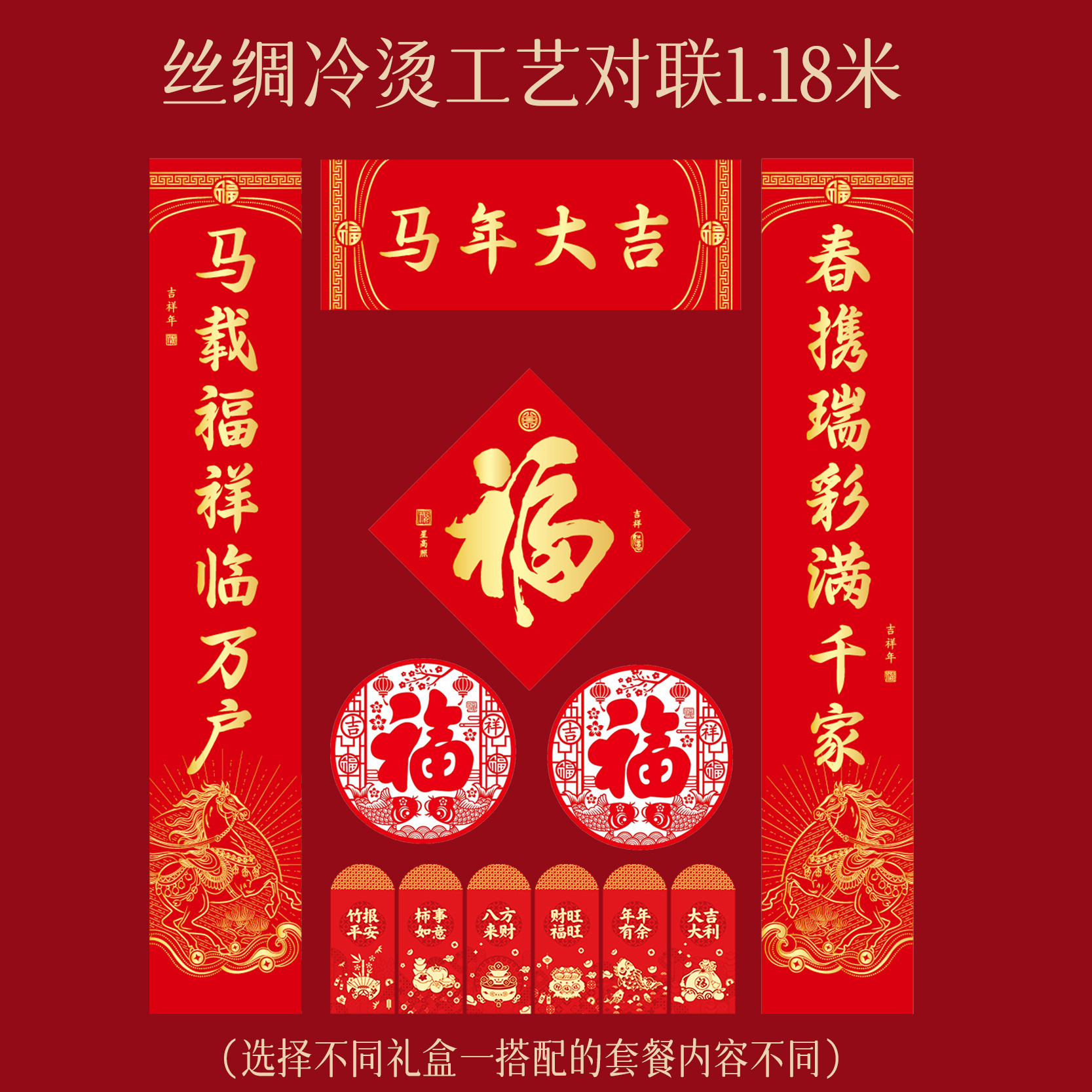 2026马年新款丝绸对联特种纸春联植绒福字门联高档对联礼盒套装