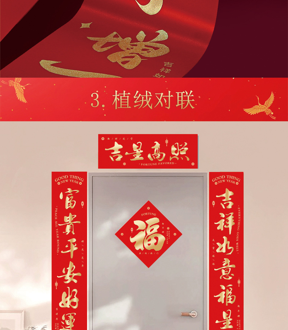 | 1.5米植绒烫金对联 | USD $4.97 | 10 pair available |