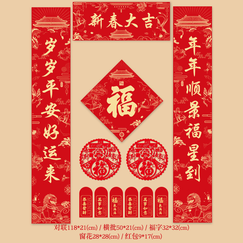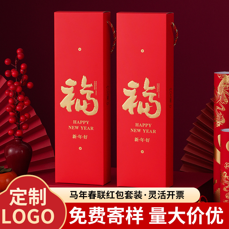 2026年马年对联定制logo烫金春联定做高档礼盒套装特种纸福字礼包