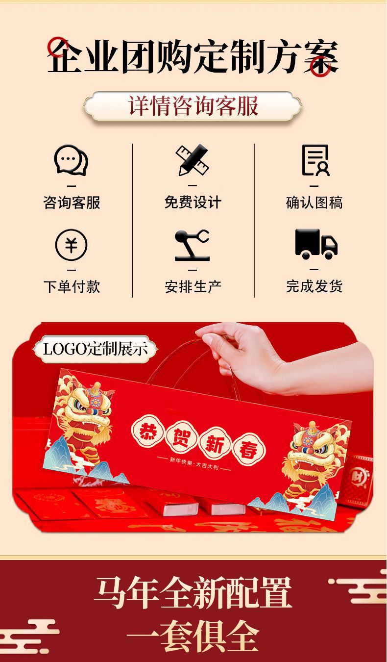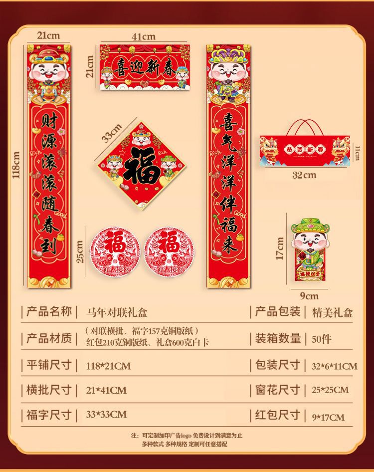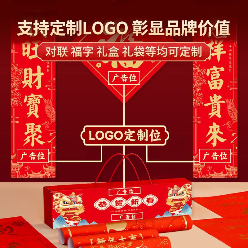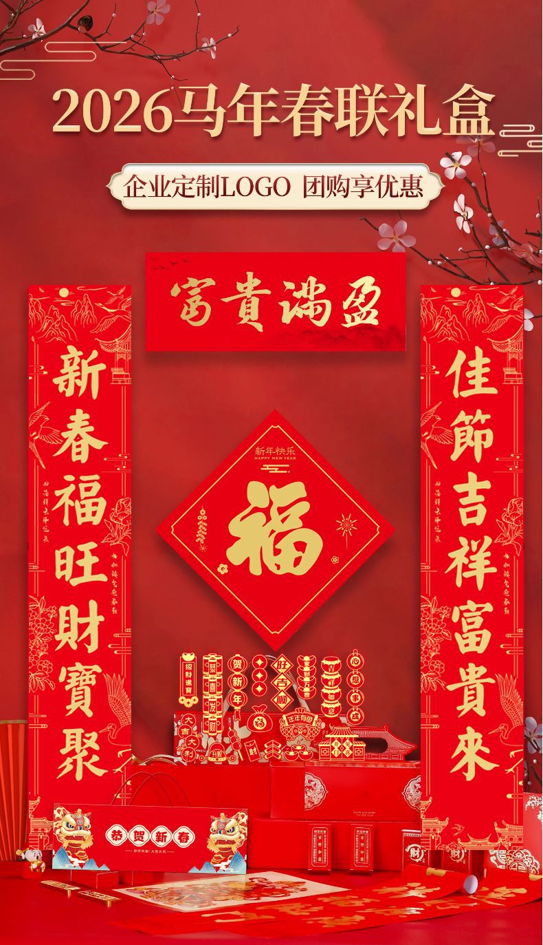 2026马年广告对联制定大礼包春联福字礼包套装印刷烫金企业LOGO