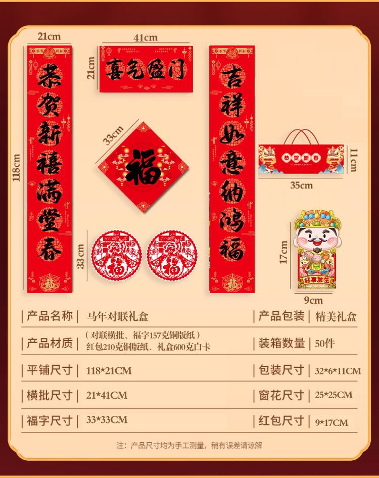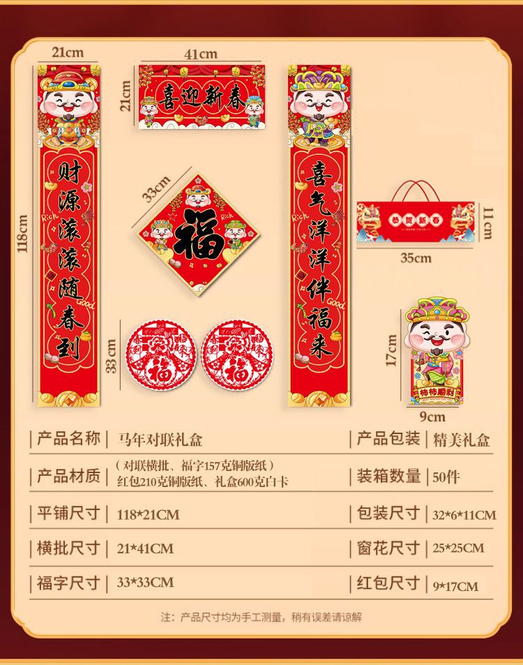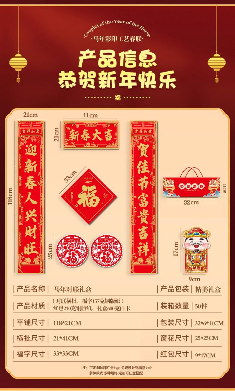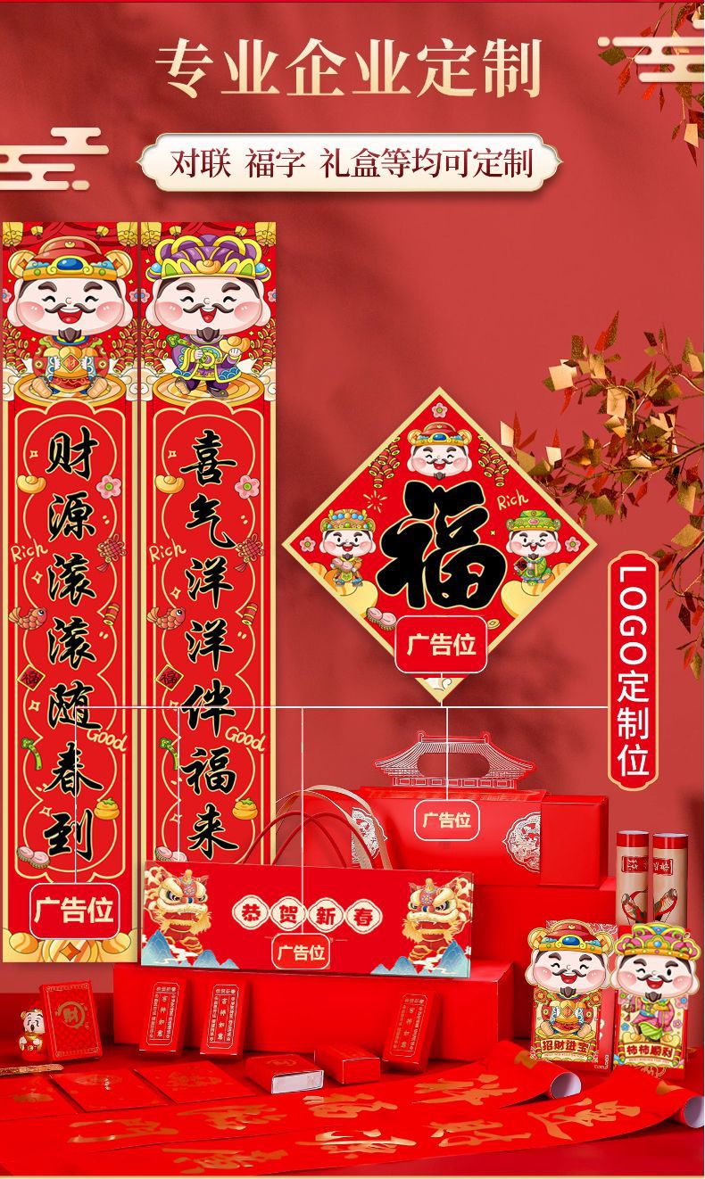 2026马年广告对联制定大礼包春联福字礼包套装印刷烫金企业LOGO