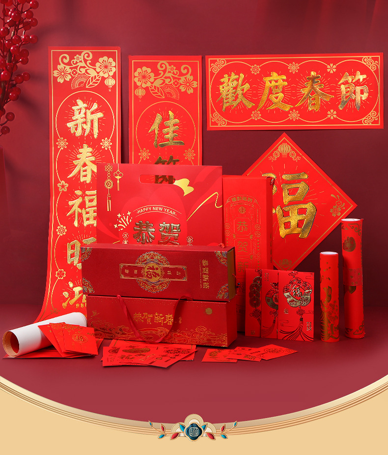 马年新款国风书法防晒浮雕春联对联礼盒套装高档创意新年福字