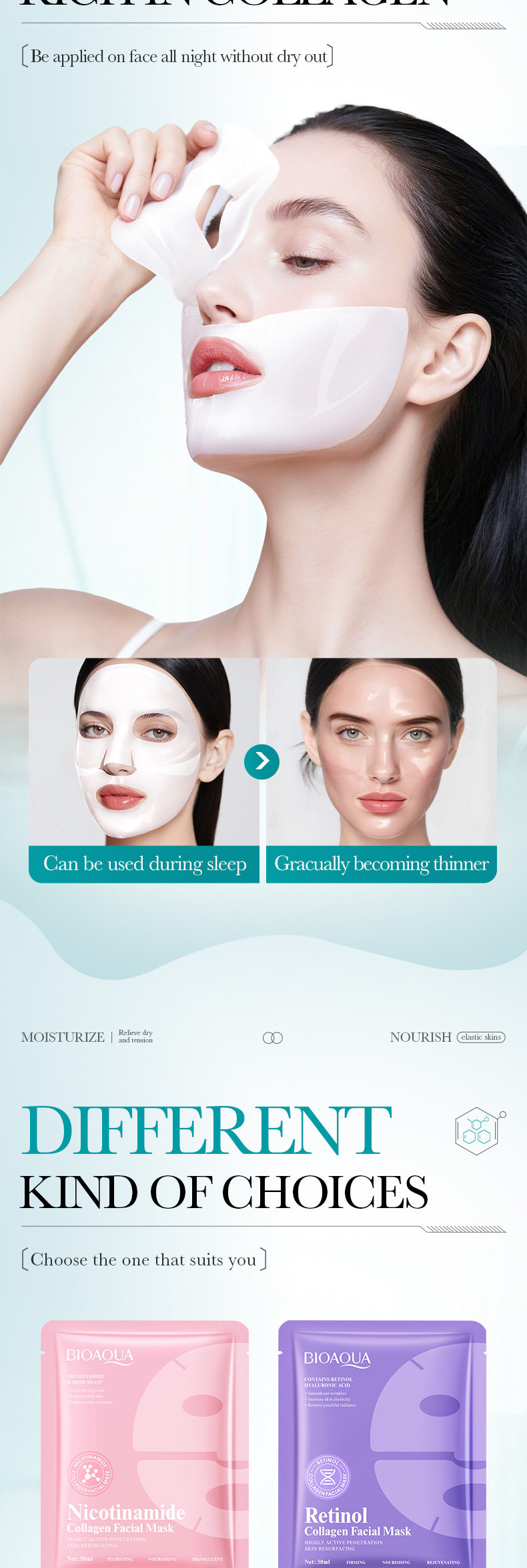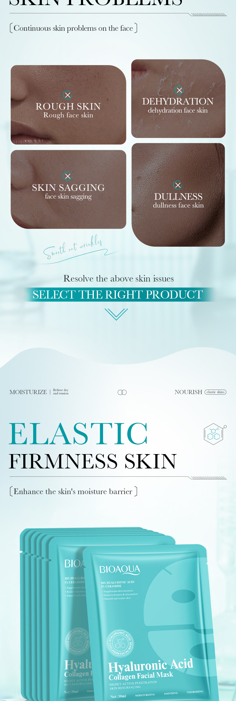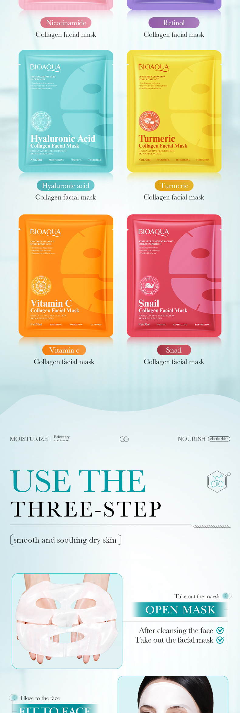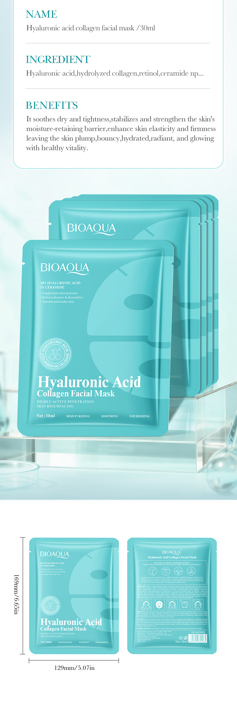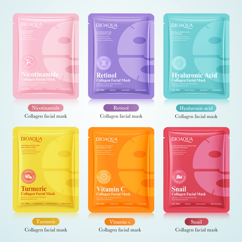 跨境面膜BIOAOUA蜗牛胶原蛋白面膜/黄瓜积雪草补水面膜全英文外贸