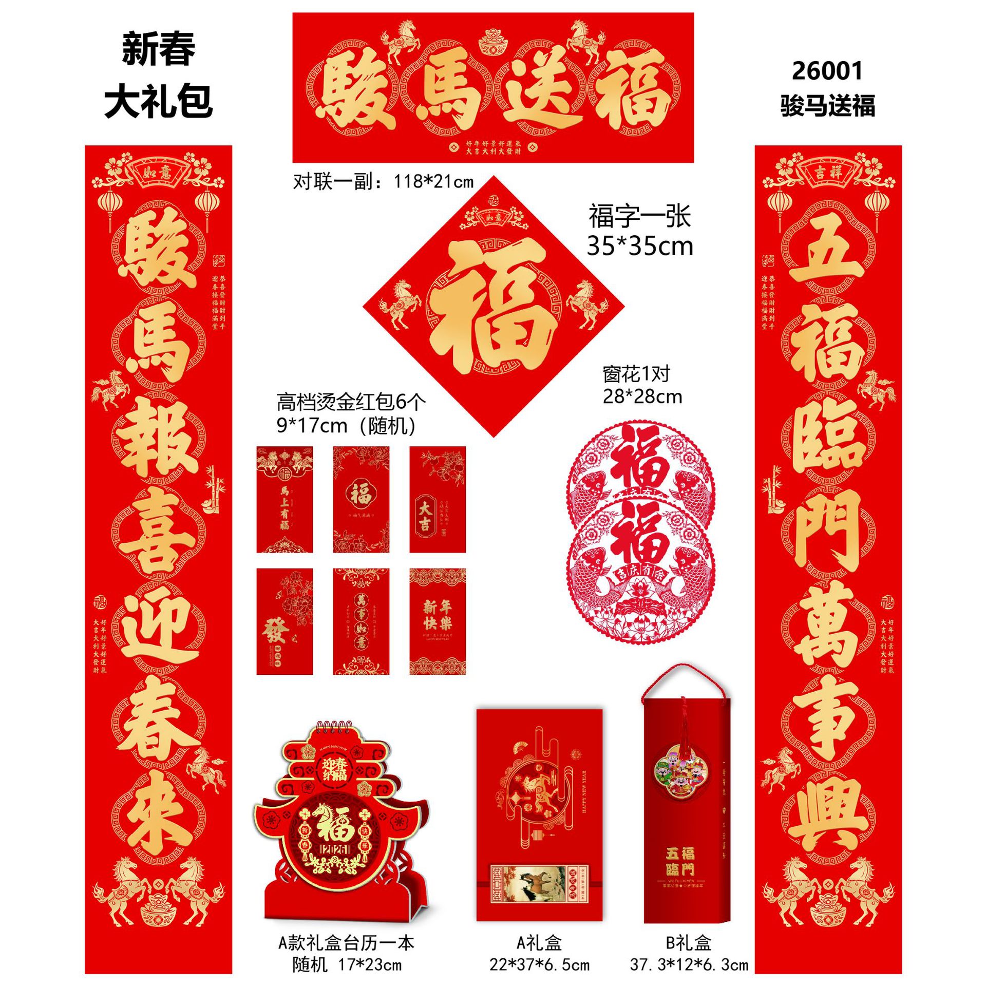 2026新春对联配台历套装大礼盒浮雕烫金春联年年会送制礼品喜庆