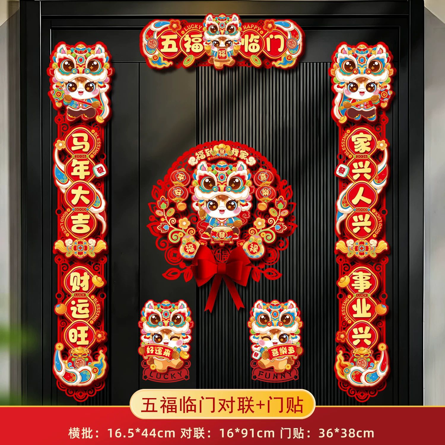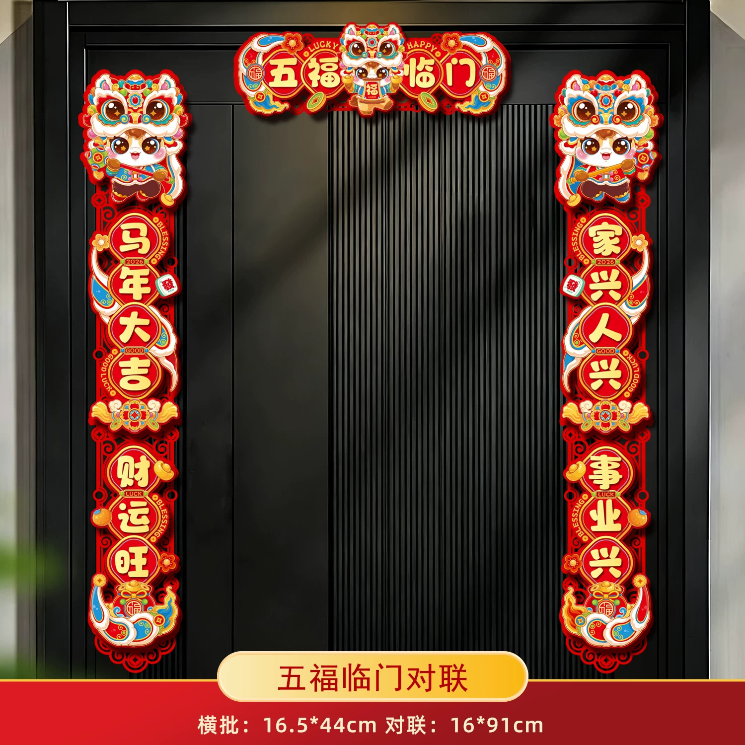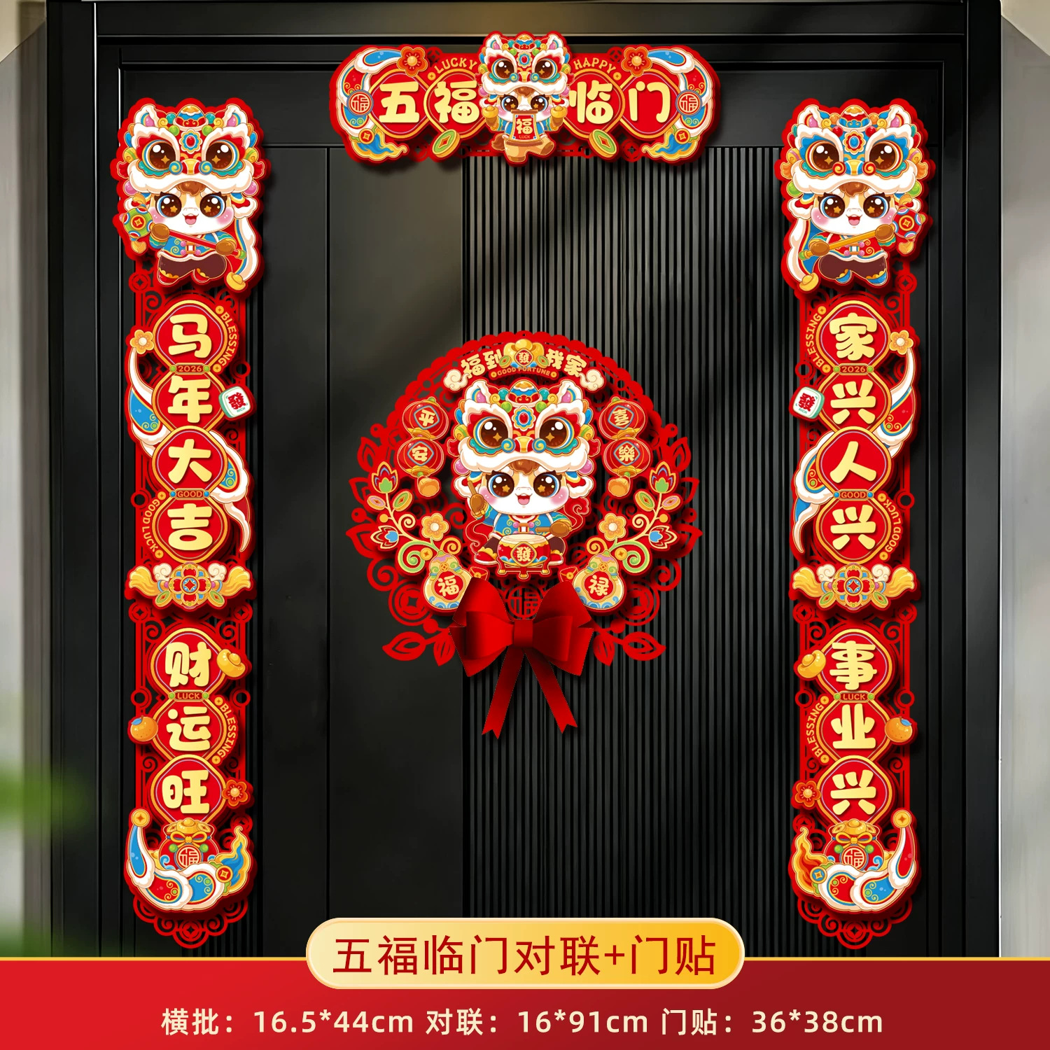 2026新款马年毛毡对联新年春联福字套装入户门贴对联过年装饰用品