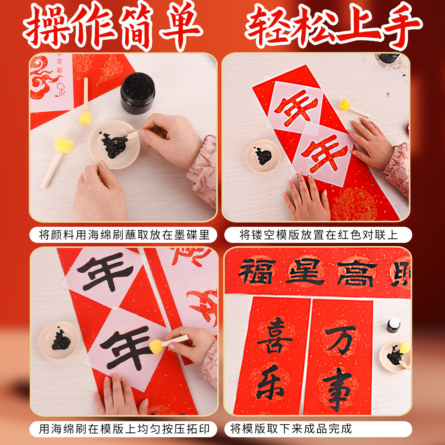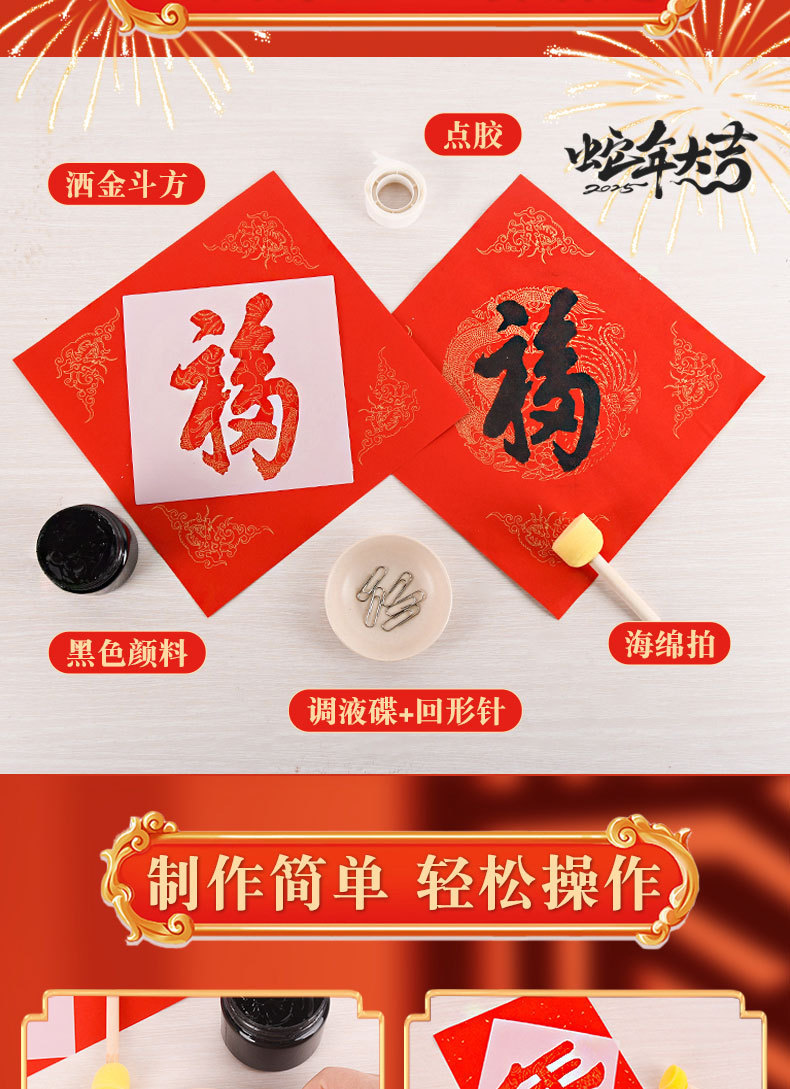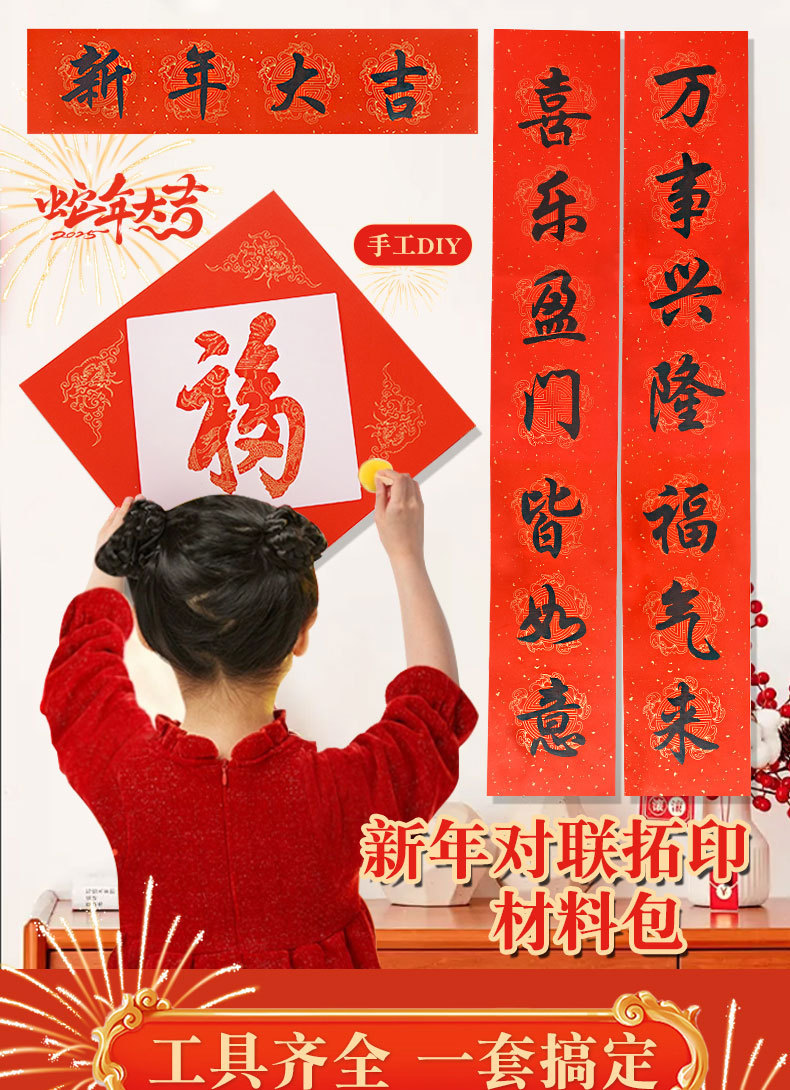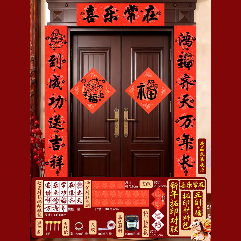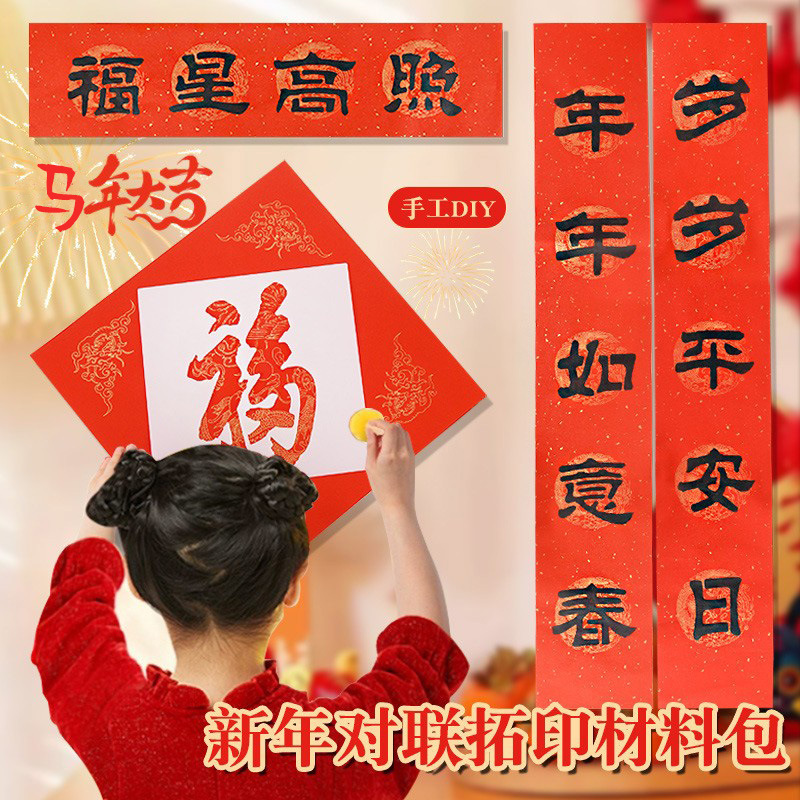春节拓印对联手工diy材料包福字拓印模版套装马年自制春联团建活