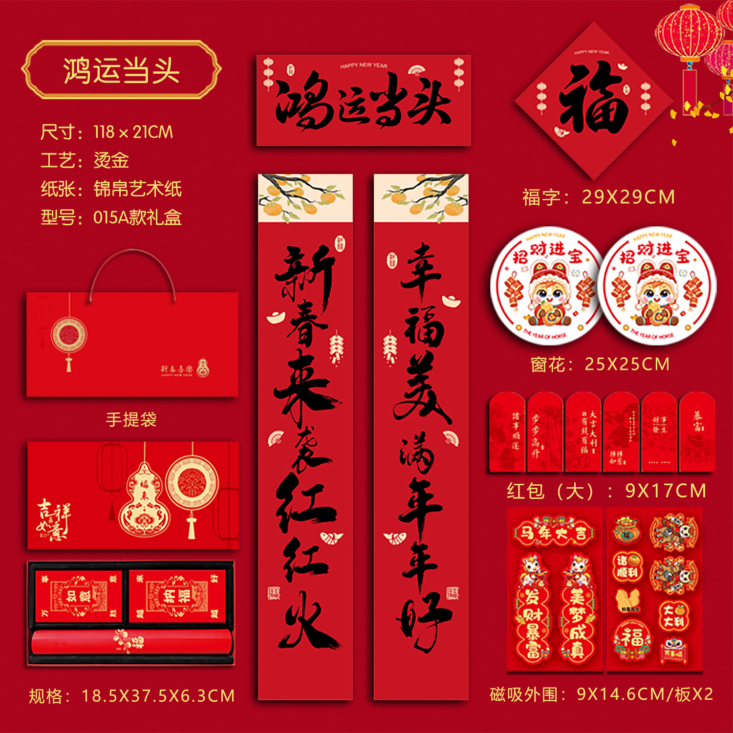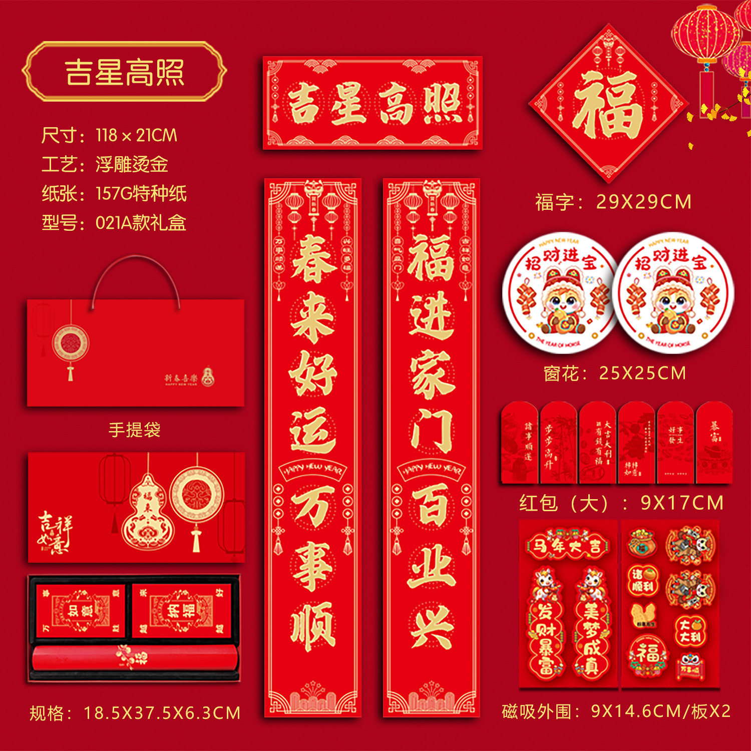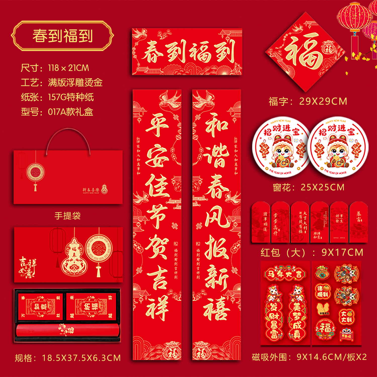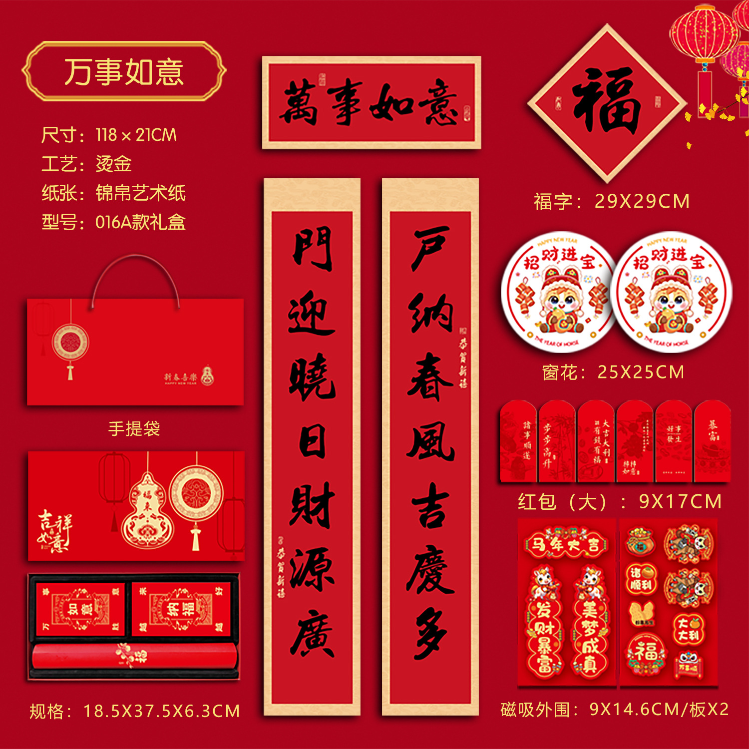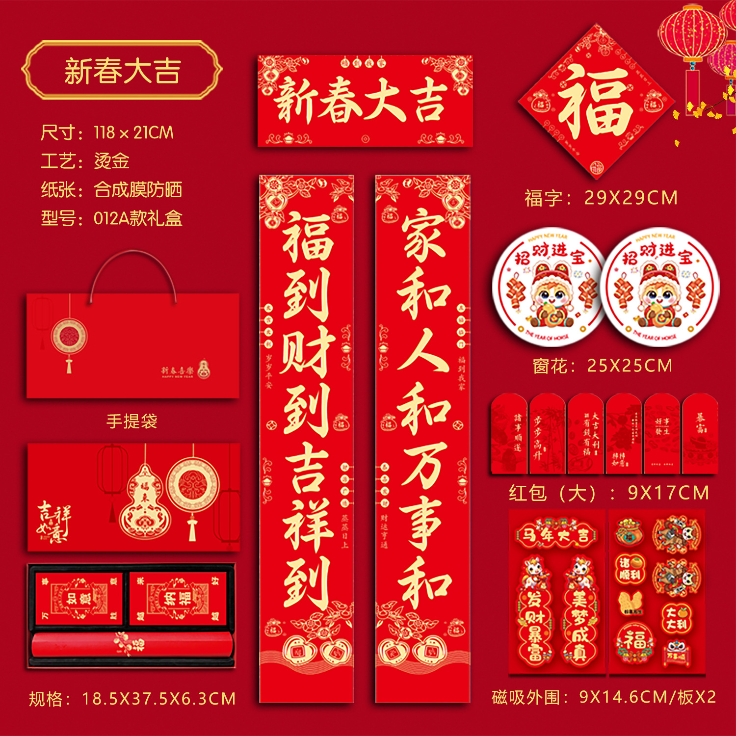 春联礼盒套装118尺寸烫金对联带背胶春联冰箱贴对联书法红春联厂