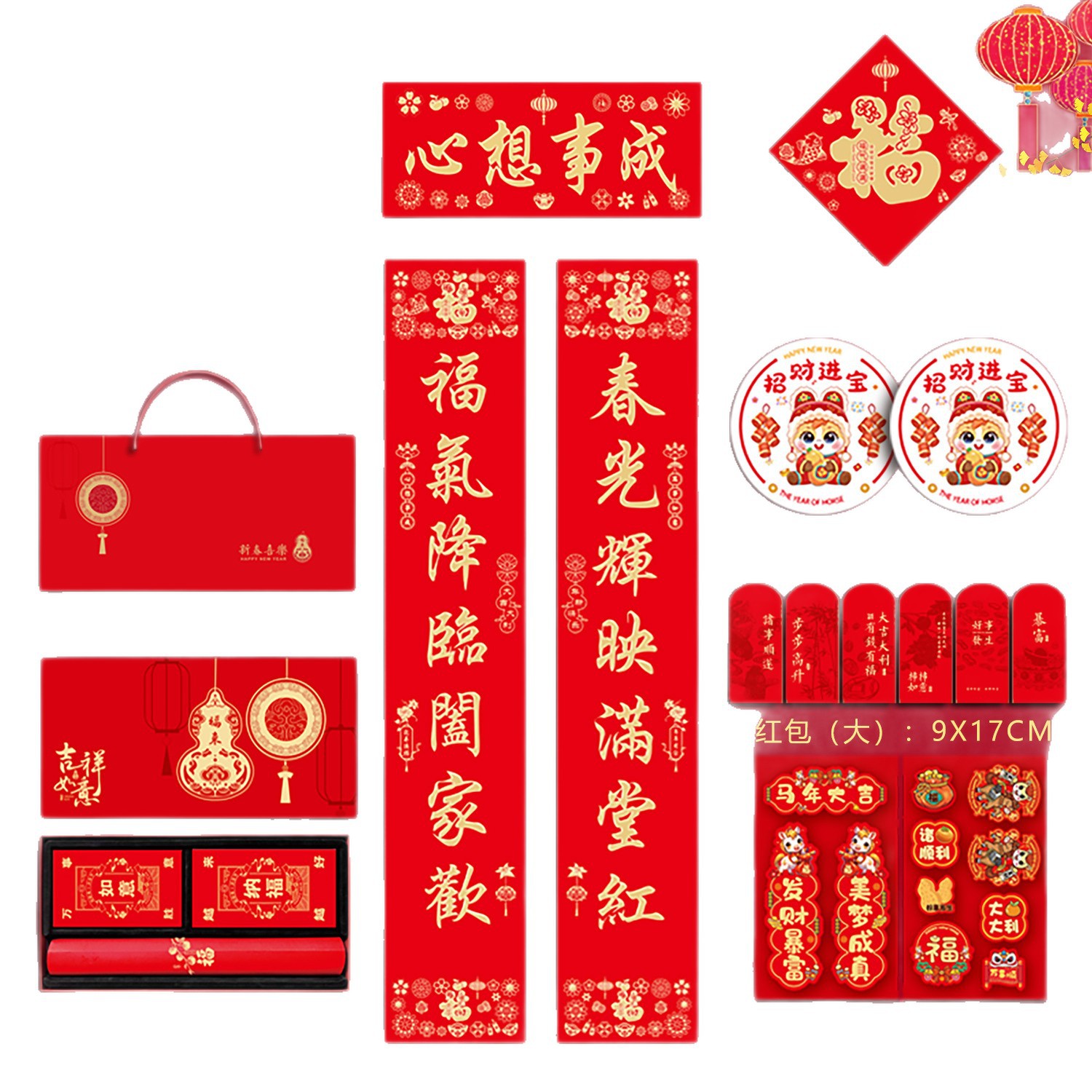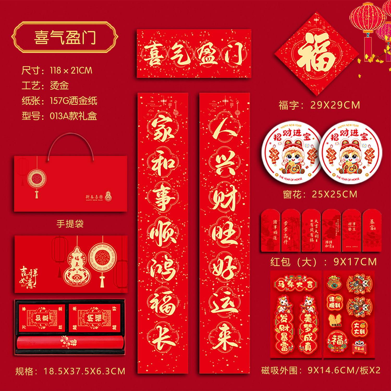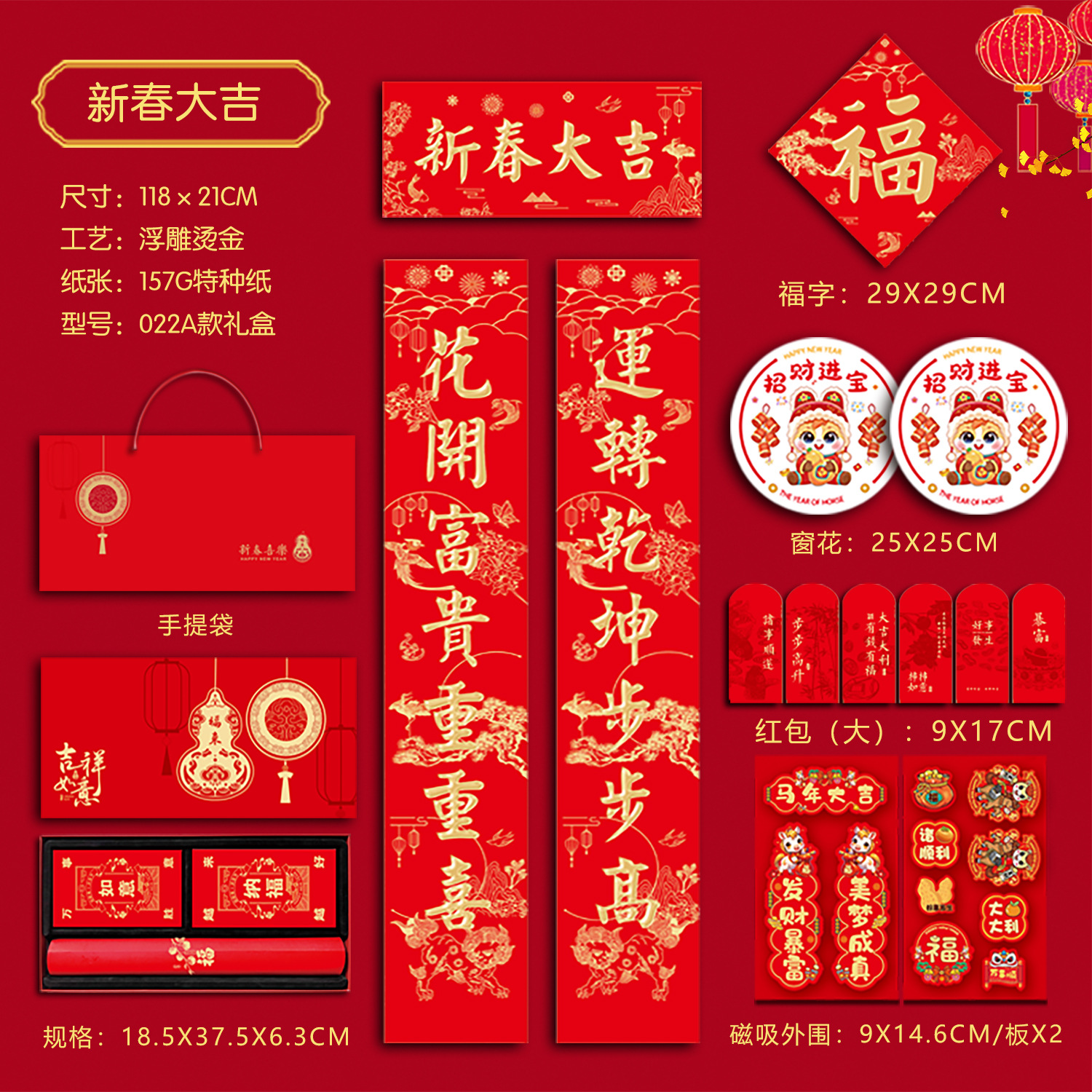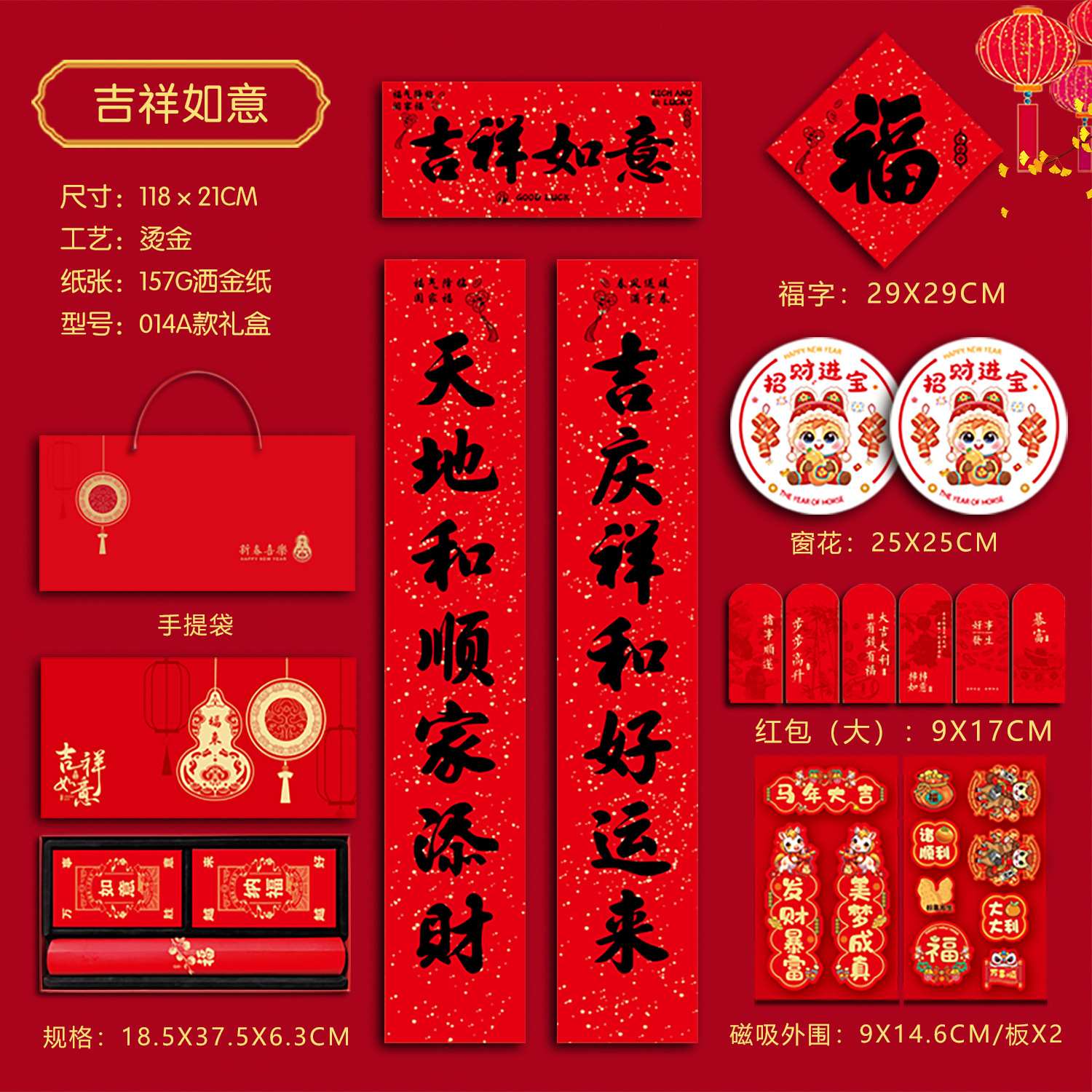 春联礼盒套装118尺寸烫金对联带背胶春联冰箱贴对联书法红春联厂