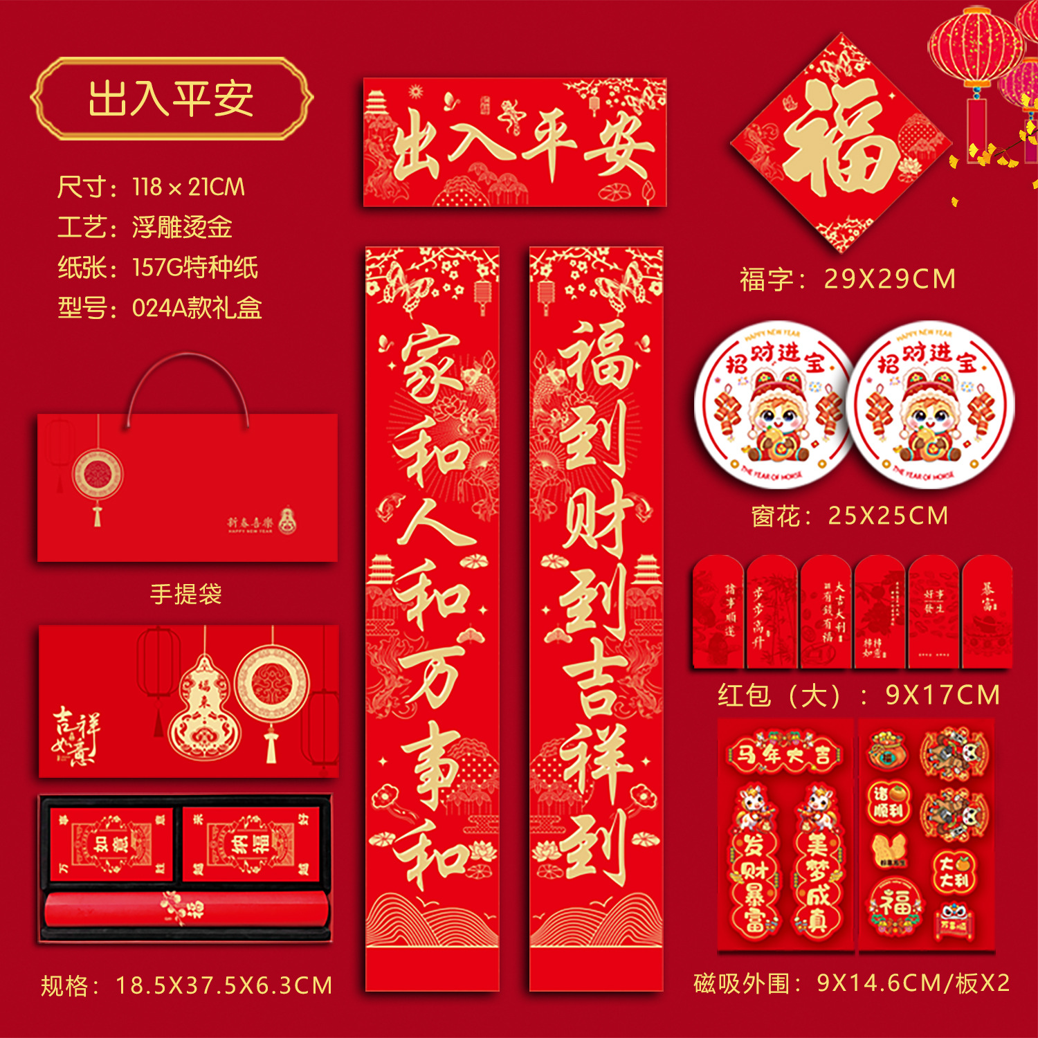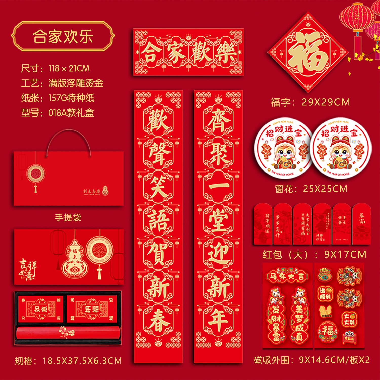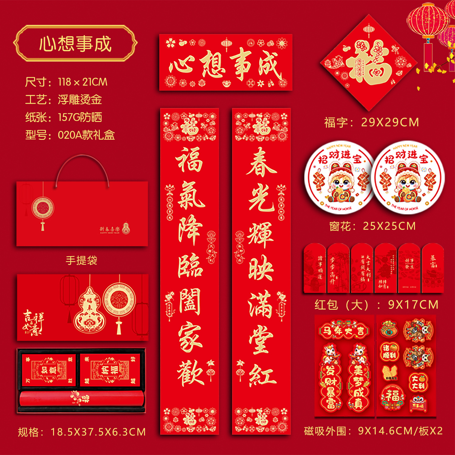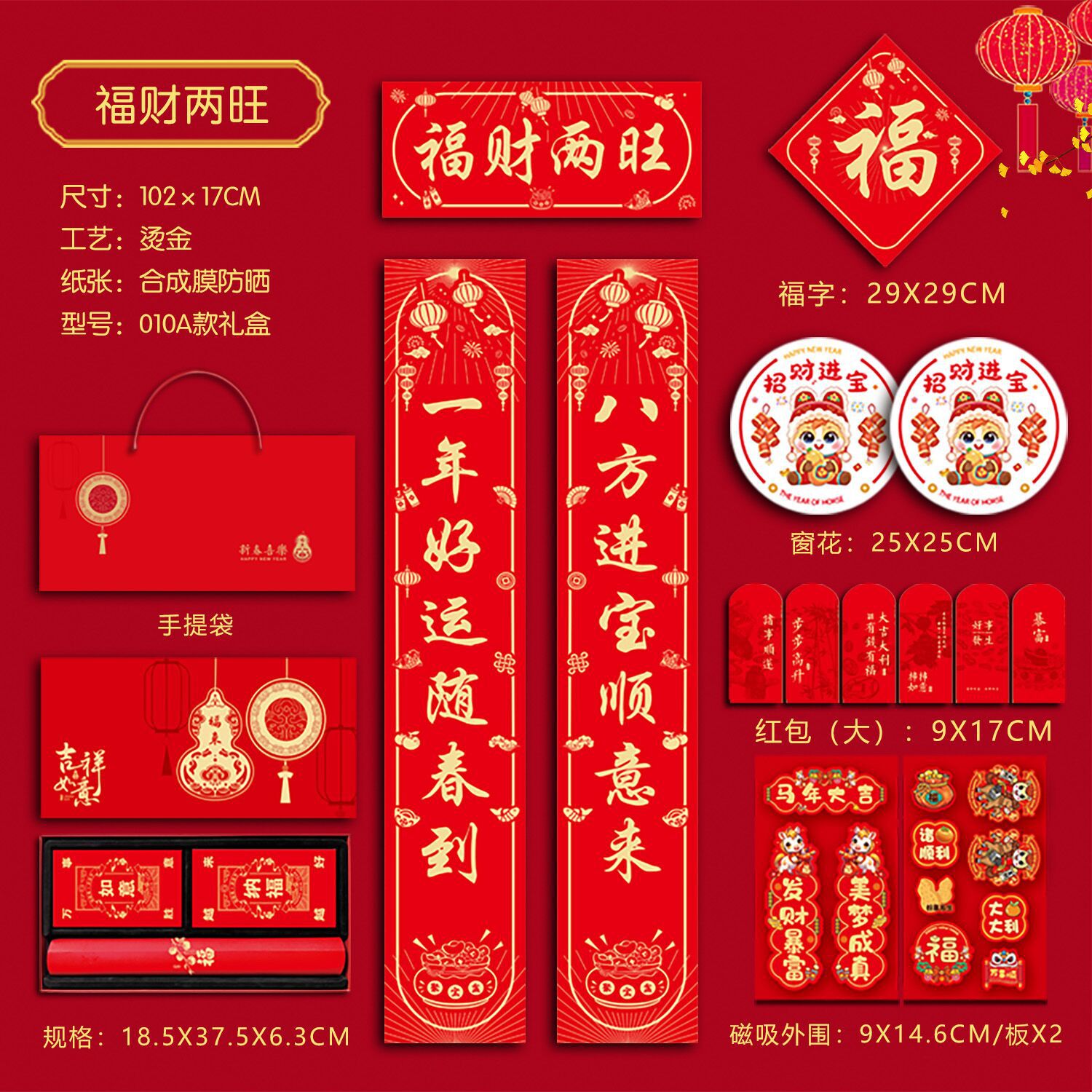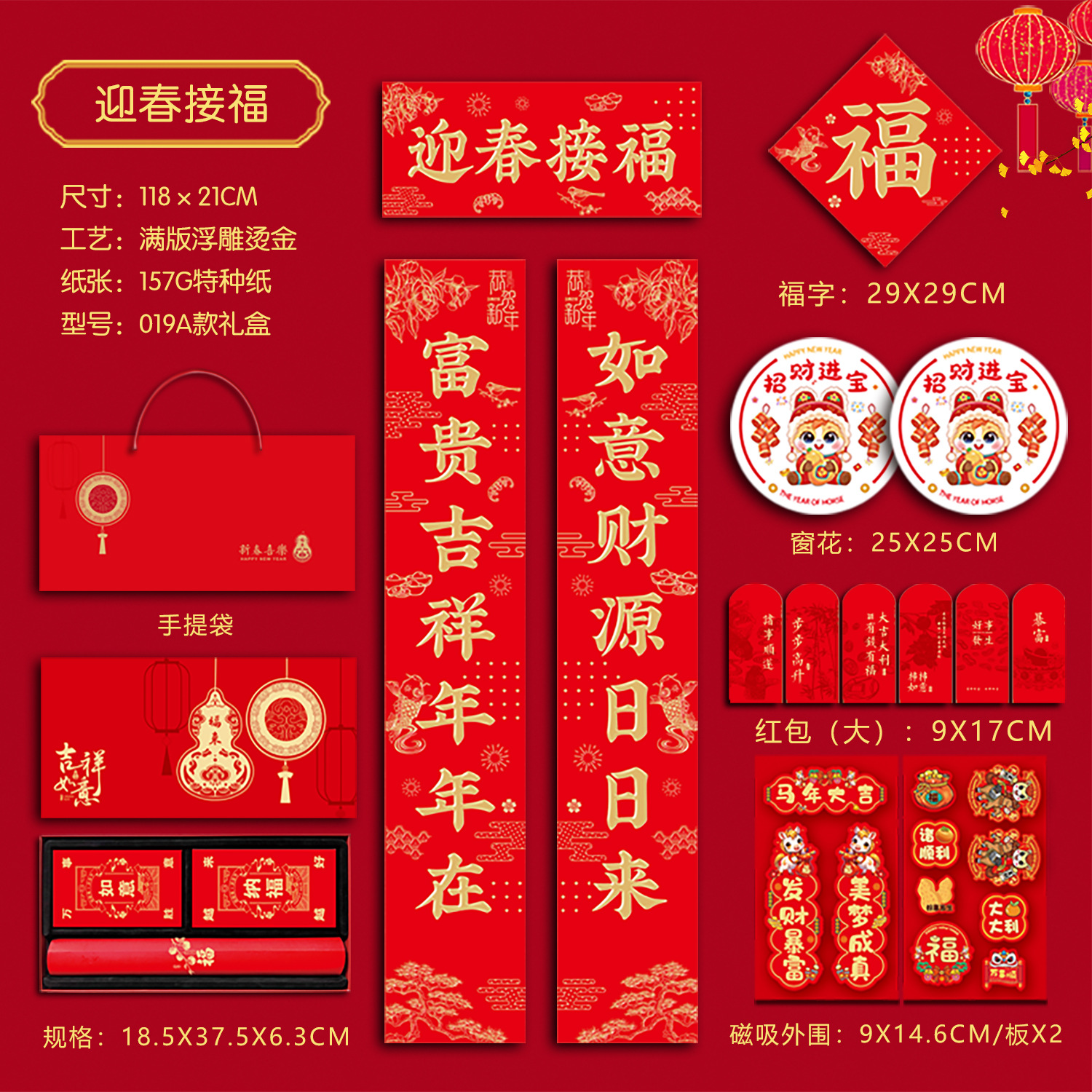春联礼盒套装118尺寸烫金对联带背胶春联冰箱贴对联书法红春联厂