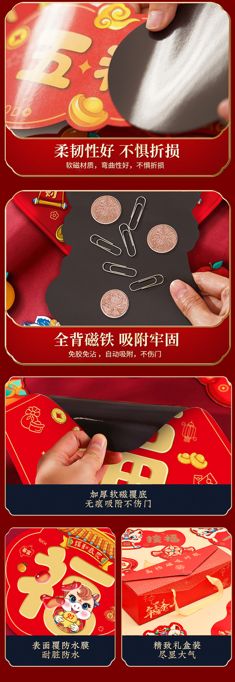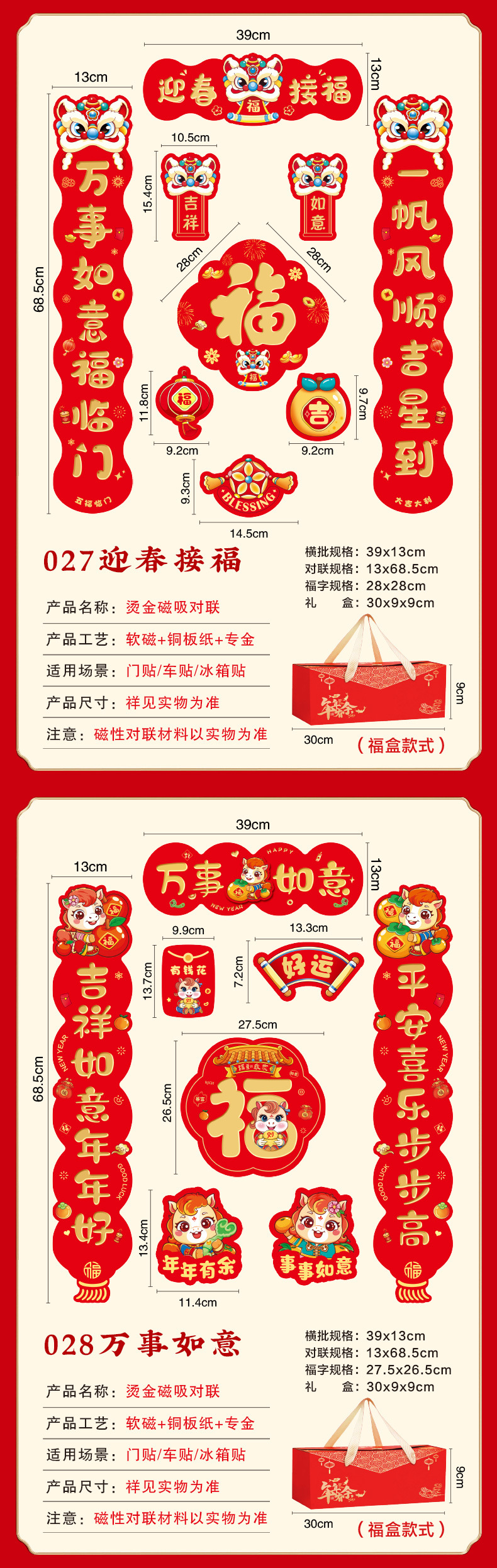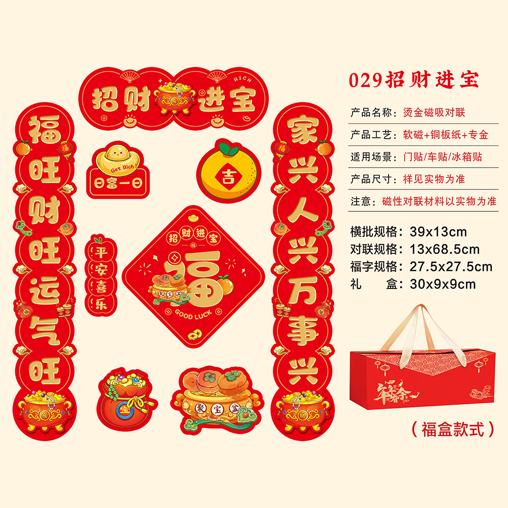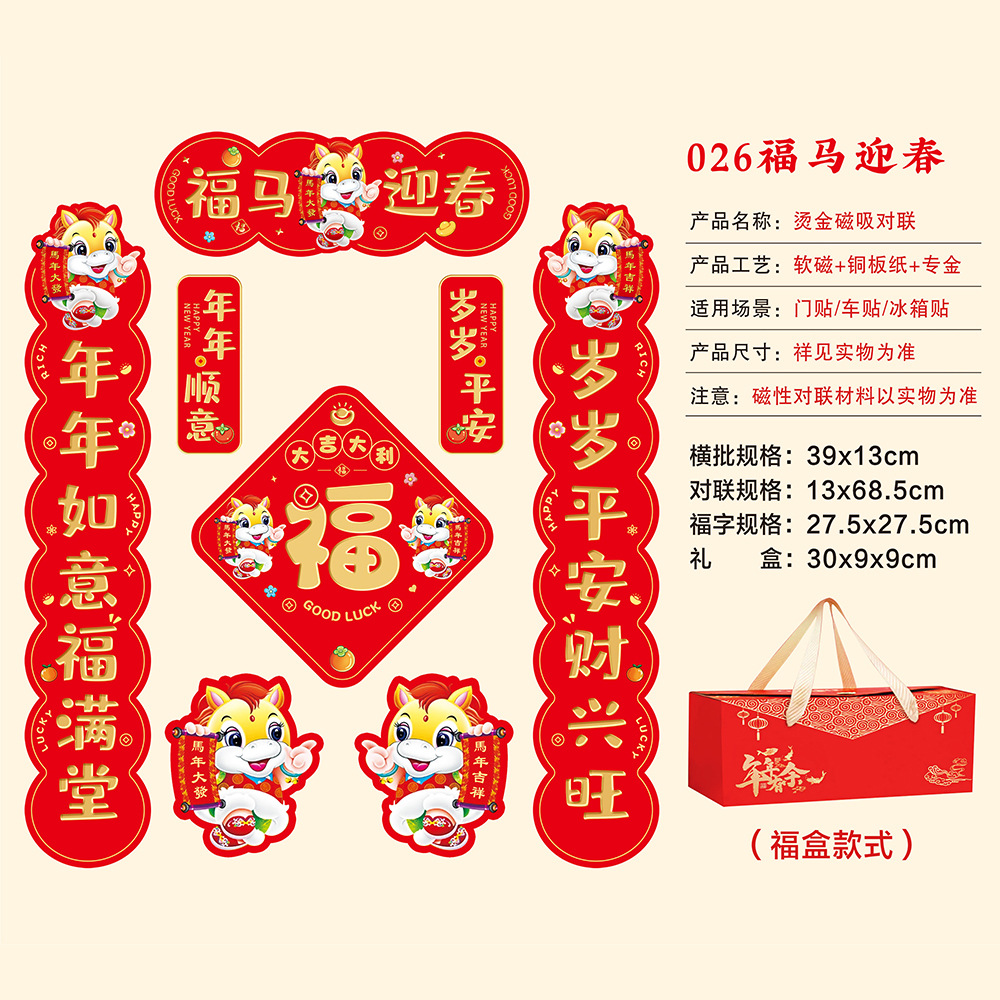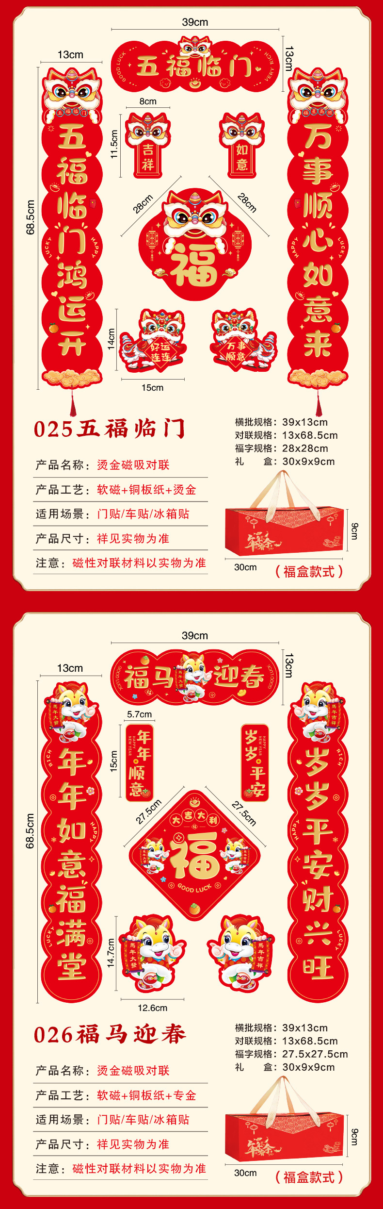 新款2026年对联大礼包现货精品烫金植绒磁吸春联红包福字礼盒套装