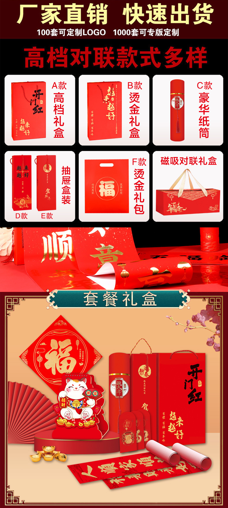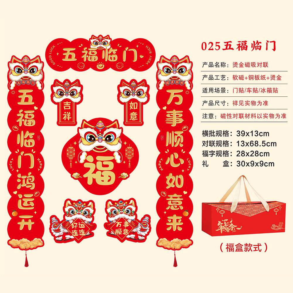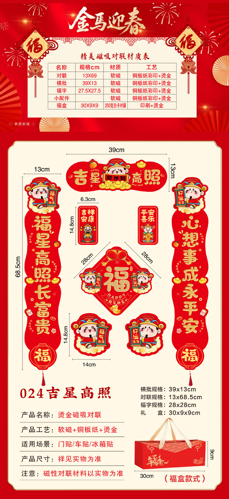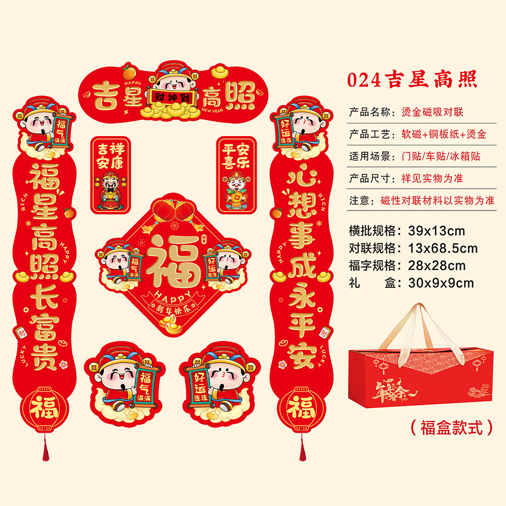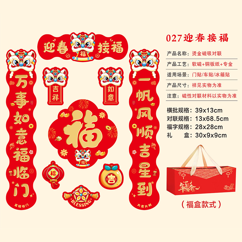 新款2026年对联大礼包现货精品烫金植绒磁吸春联红包福字礼盒套装