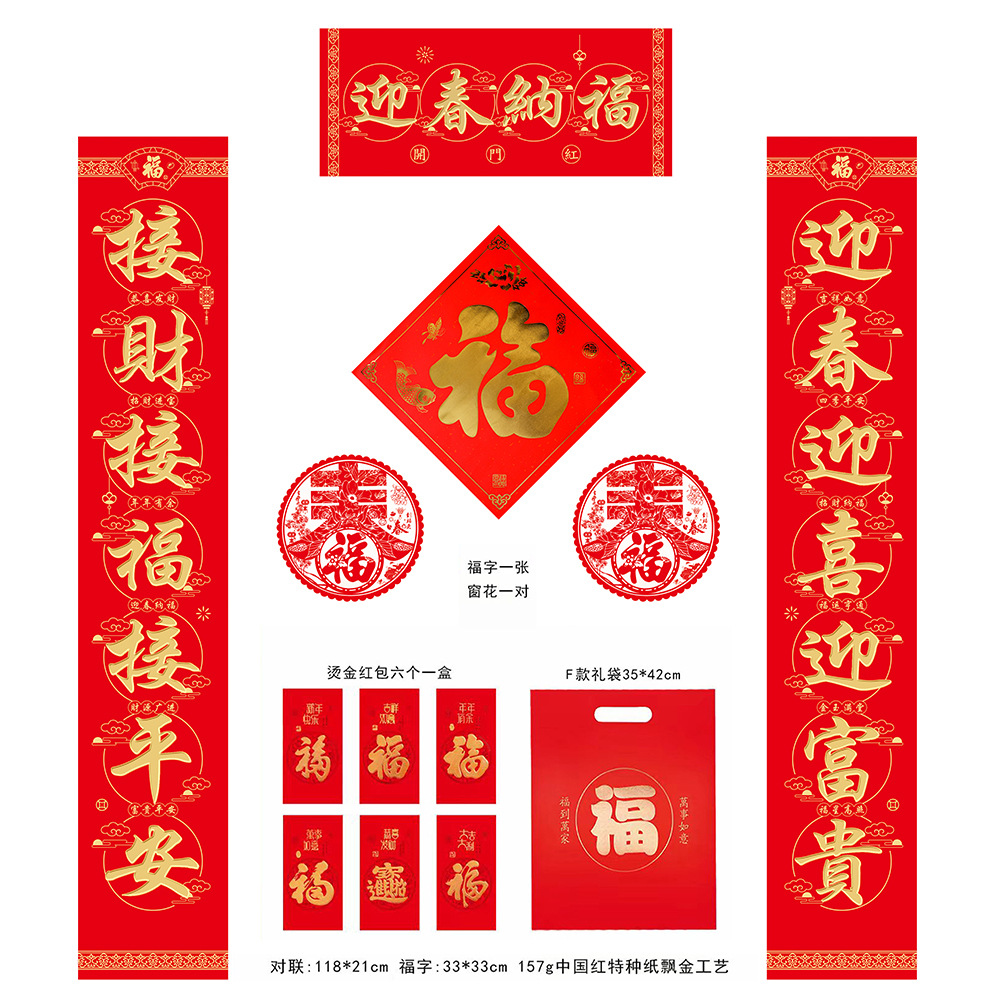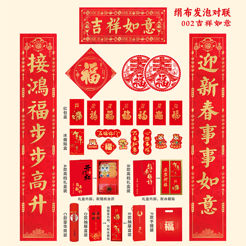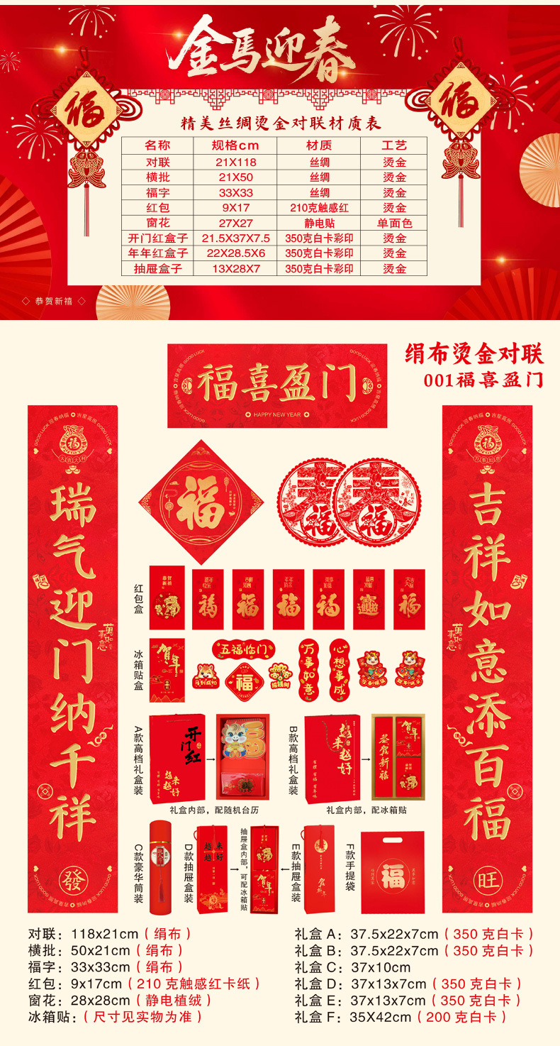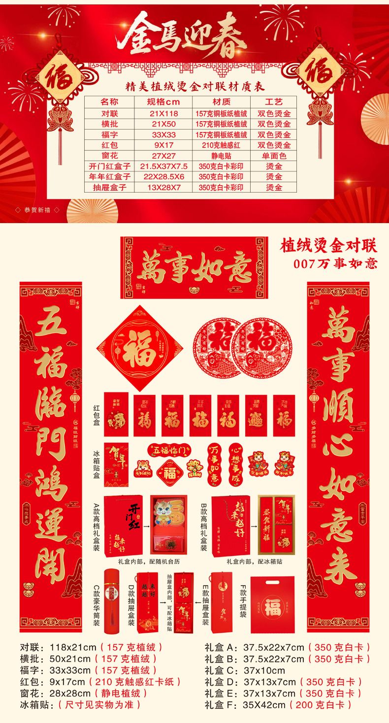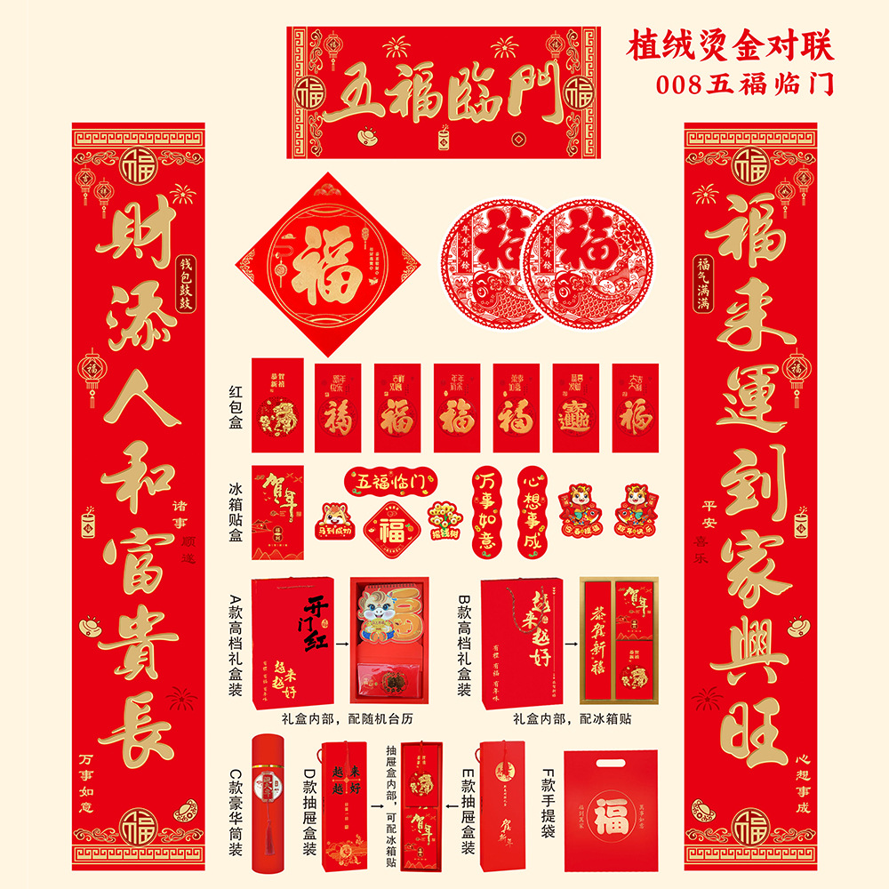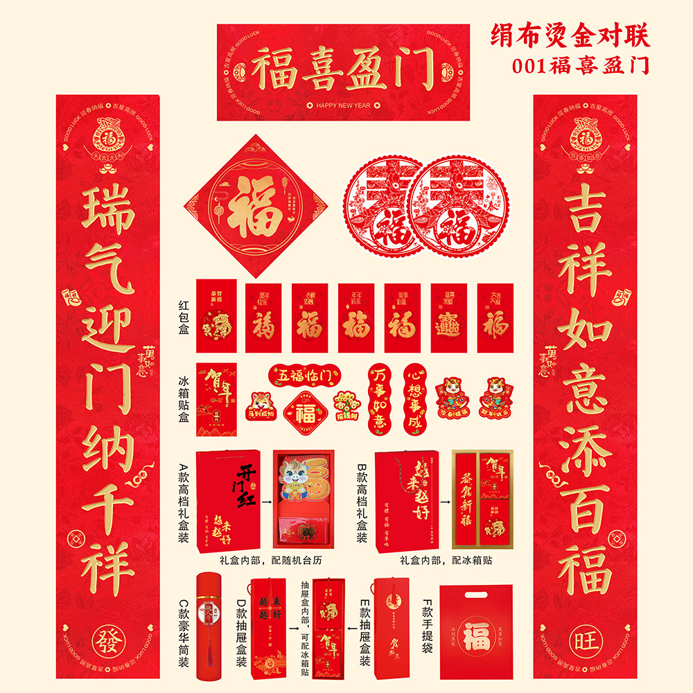 新款2026年对联大礼包现货精品烫金植绒磁吸春联红包福字礼盒套装