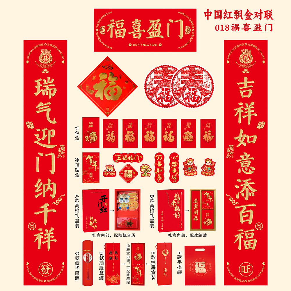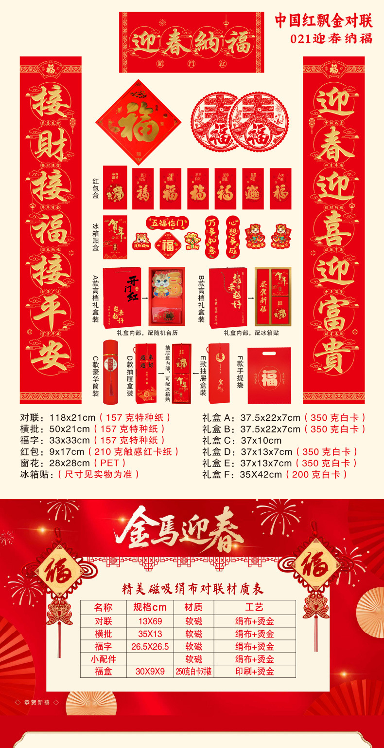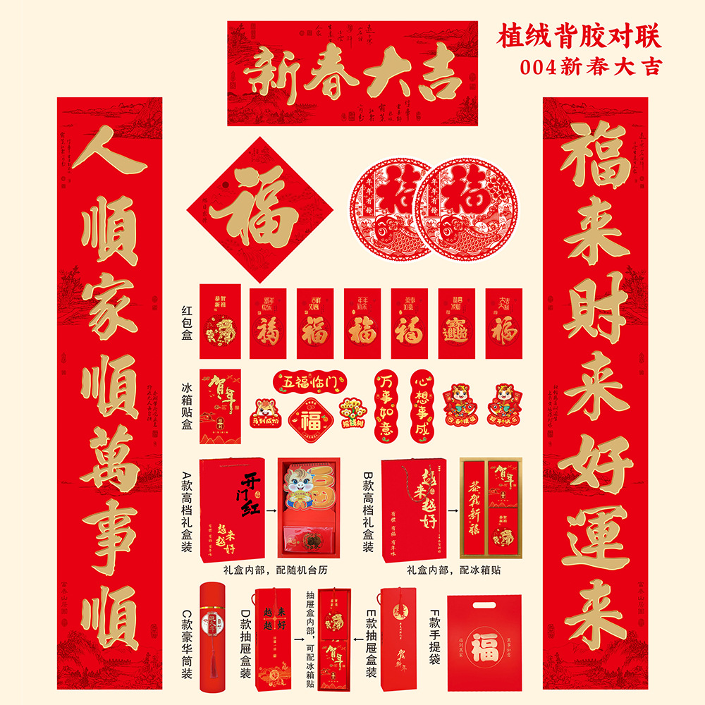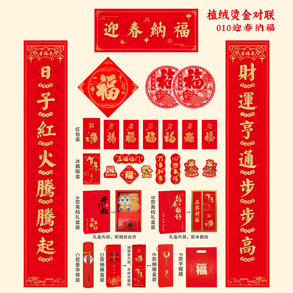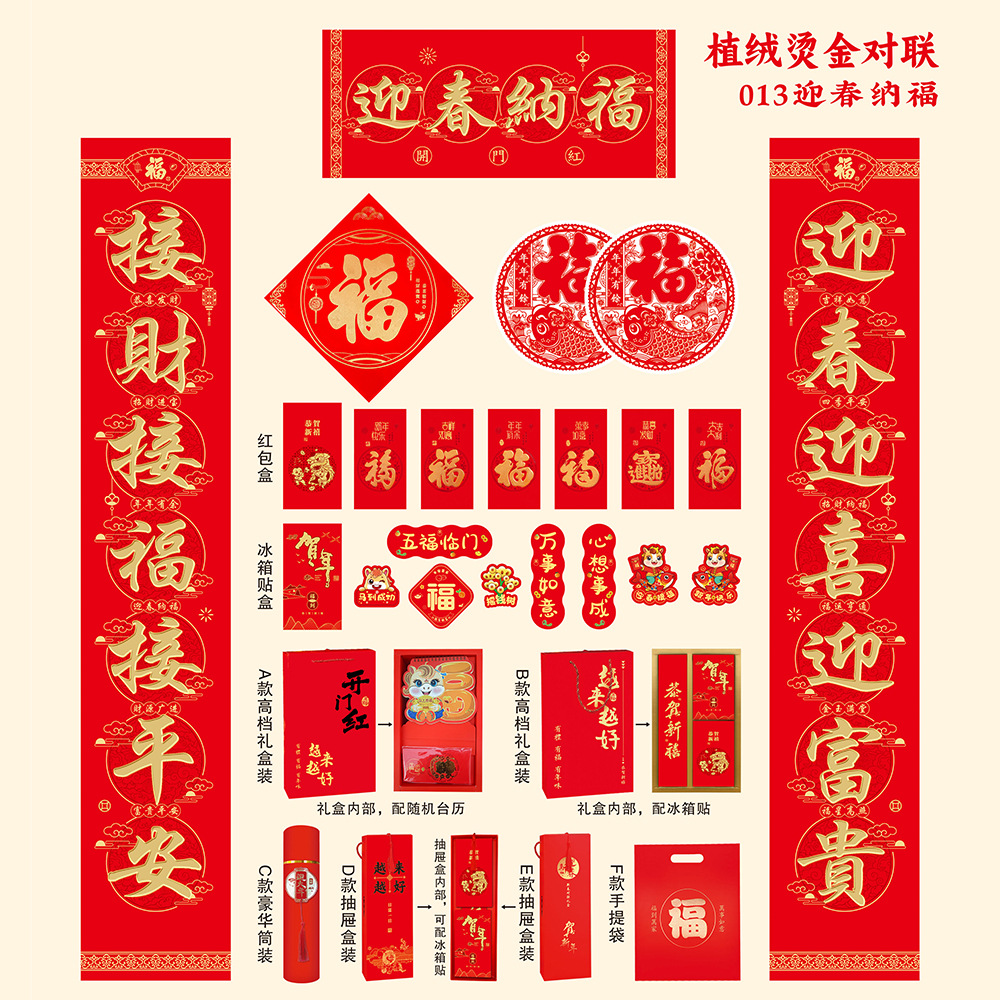 新款2026年对联大礼包现货精品烫金植绒磁吸春联红包福字礼盒套装