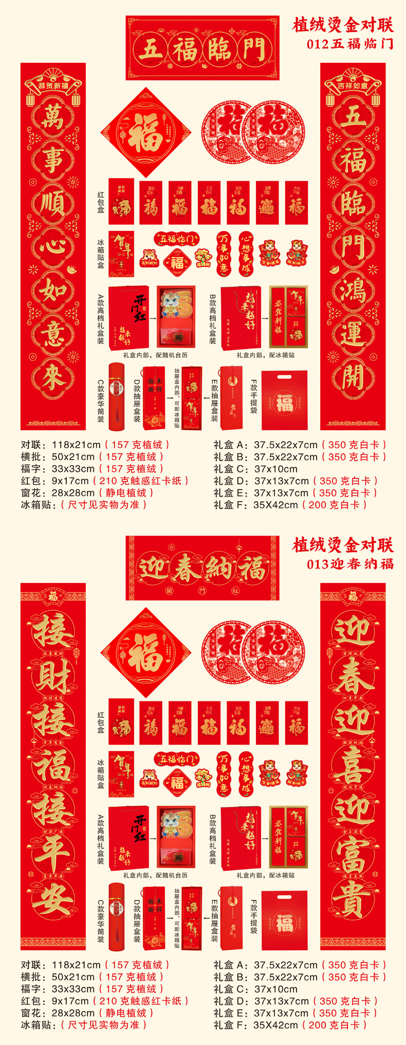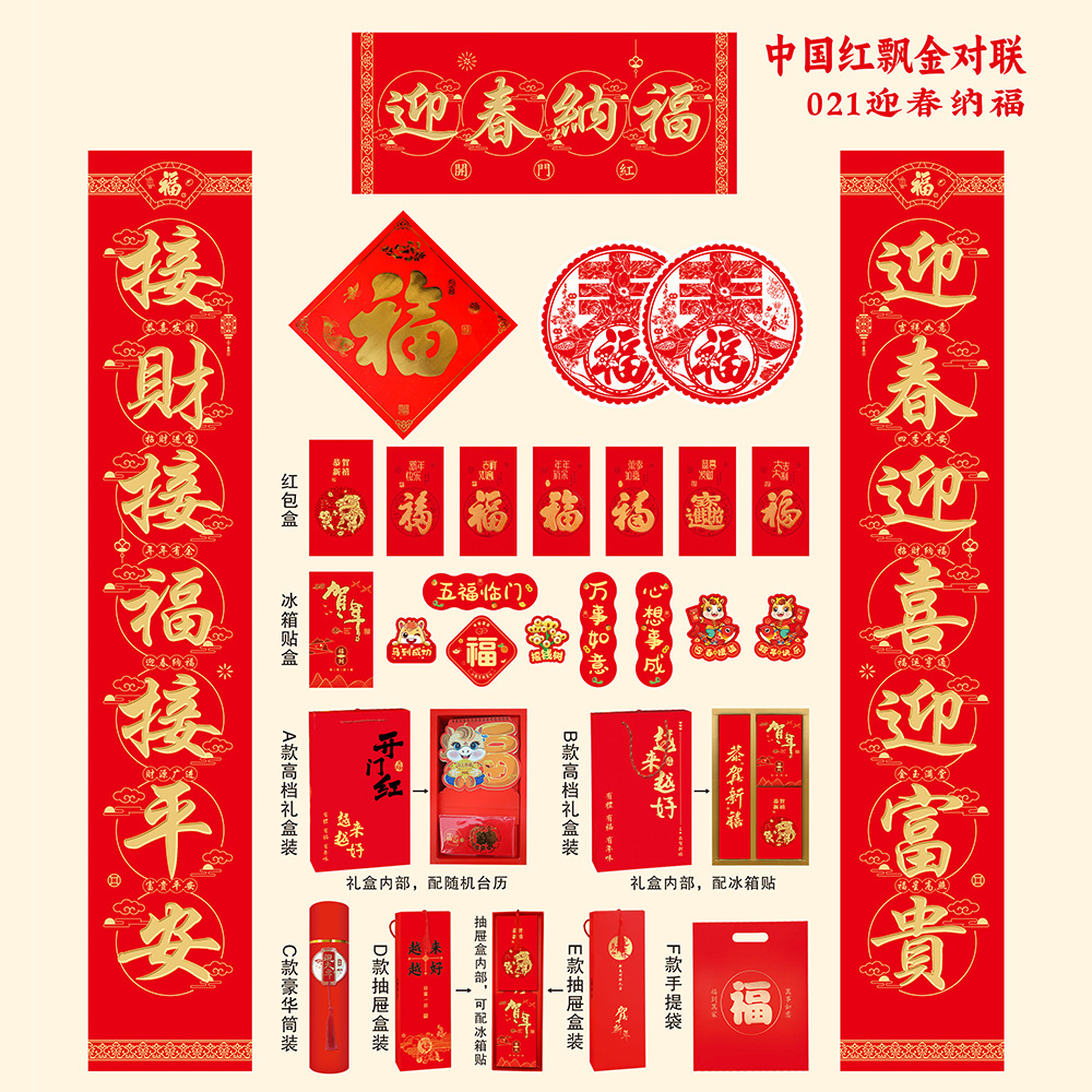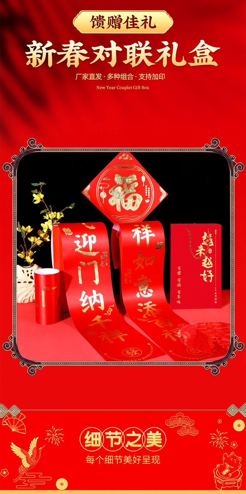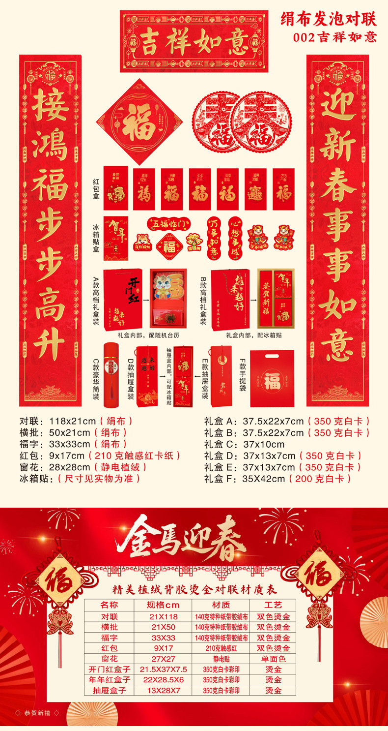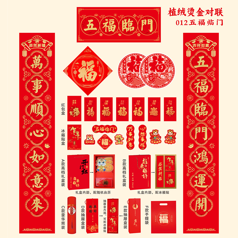 新款2026年对联大礼包现货精品烫金植绒磁吸春联红包福字礼盒套装