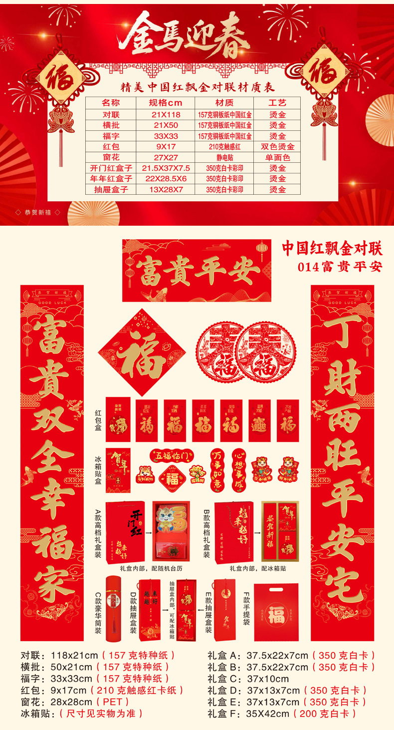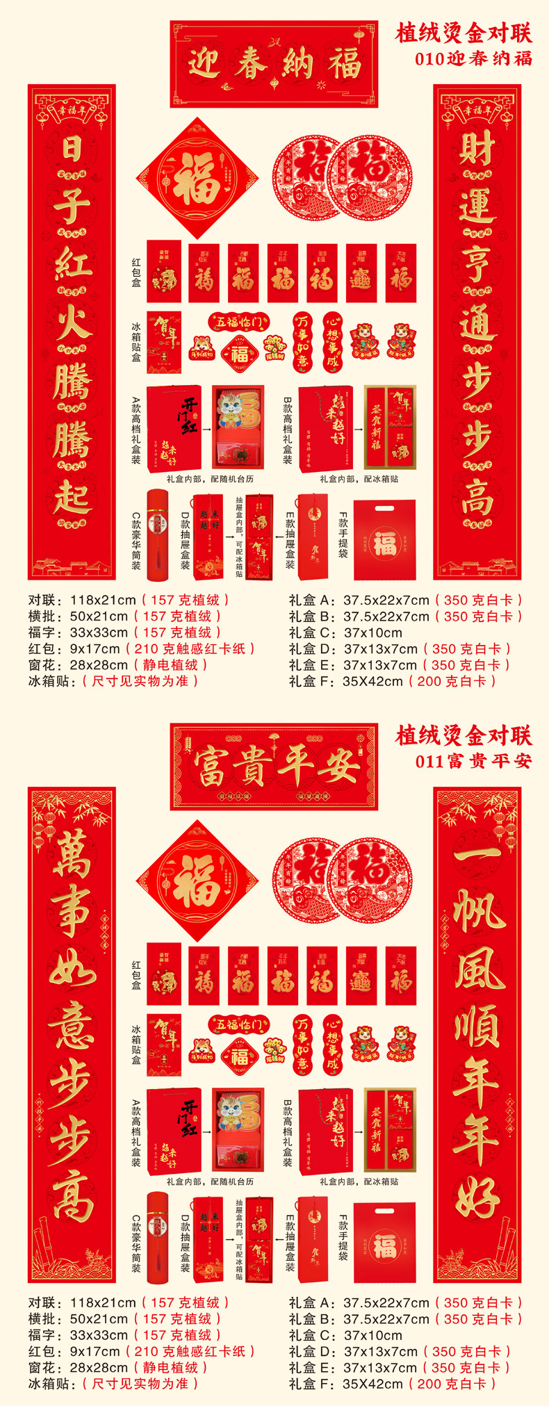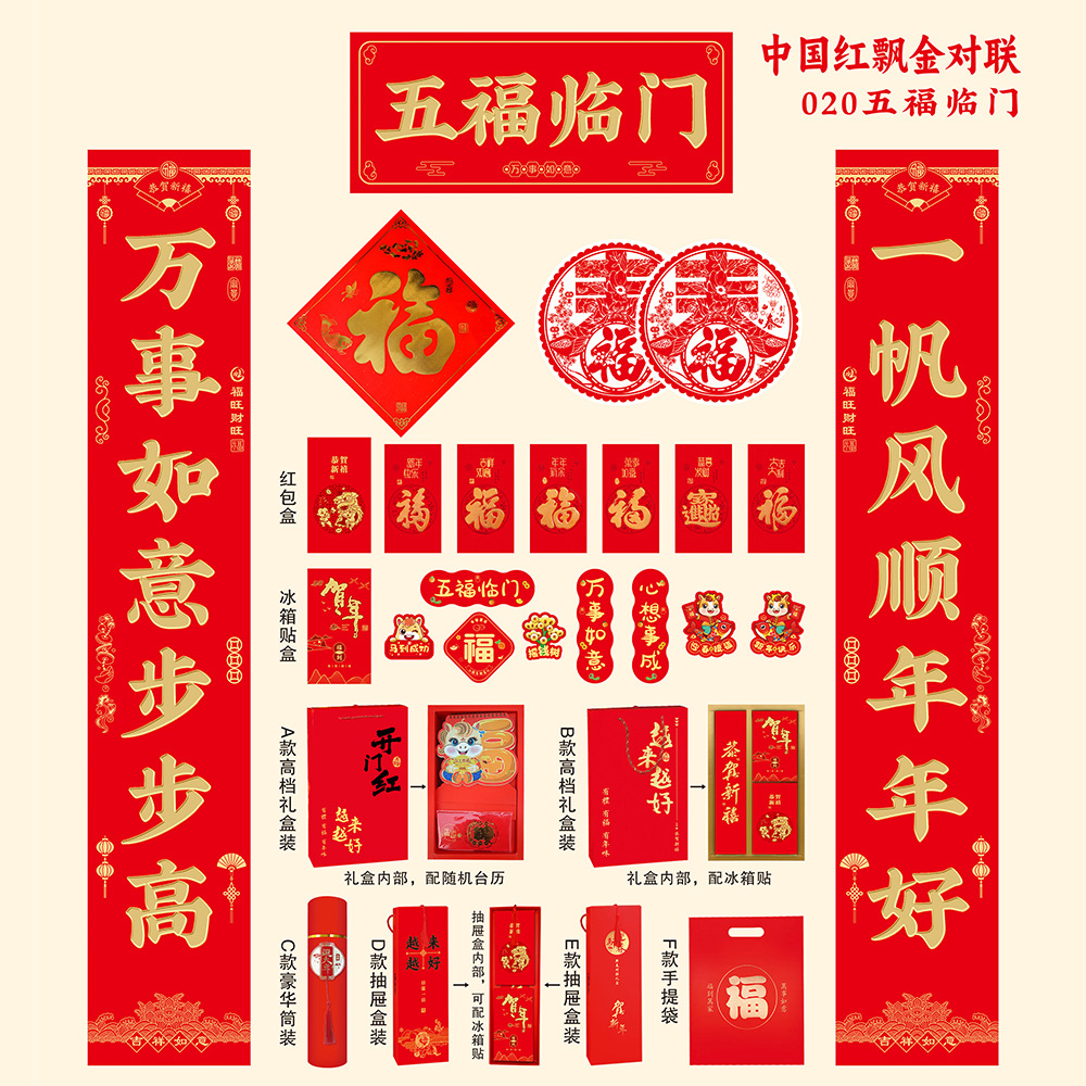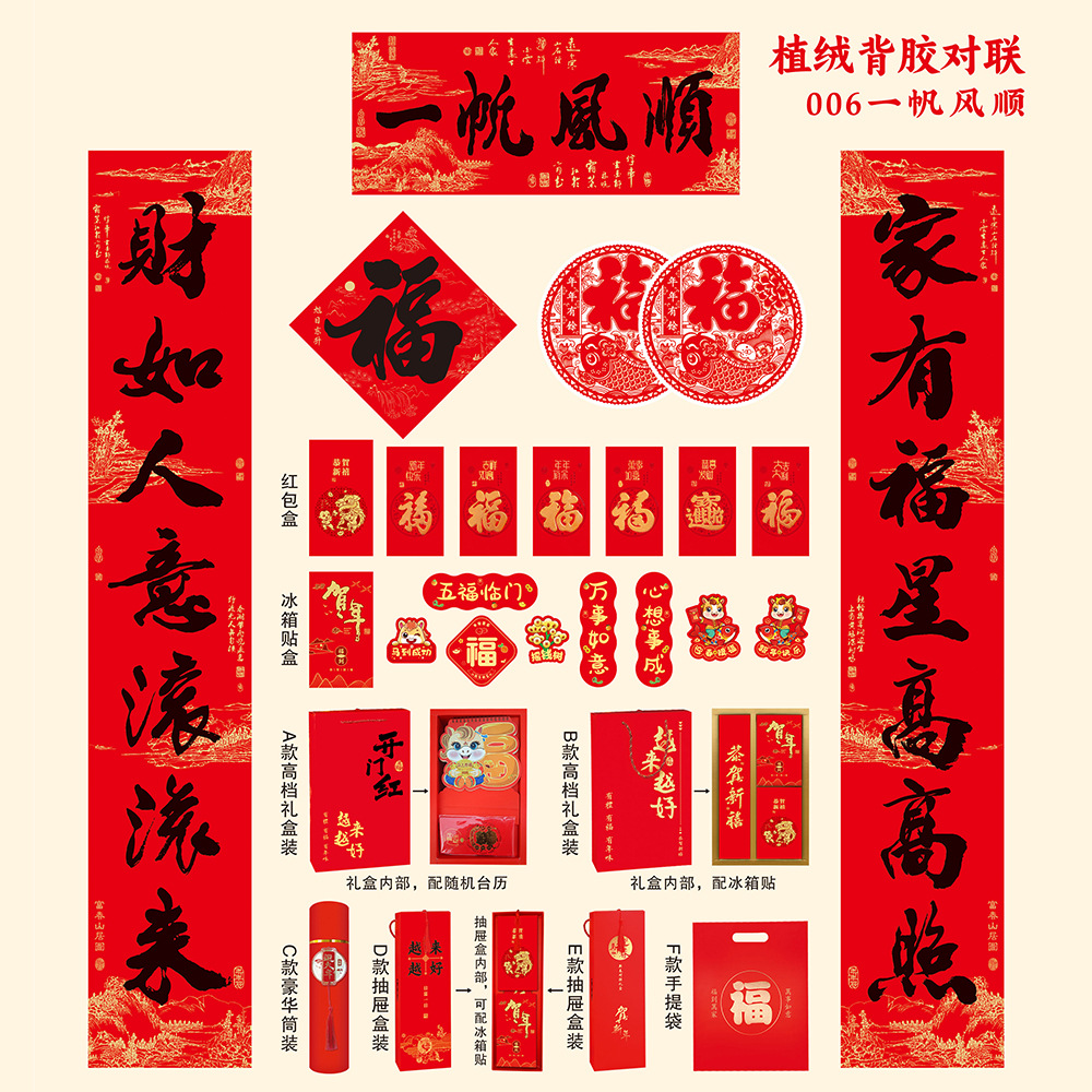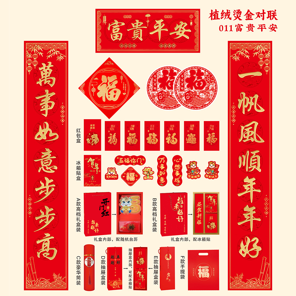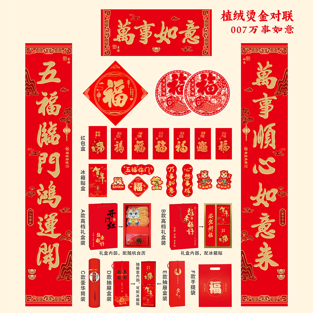 新款2026年对联大礼包现货精品烫金植绒磁吸春联红包福字礼盒套装