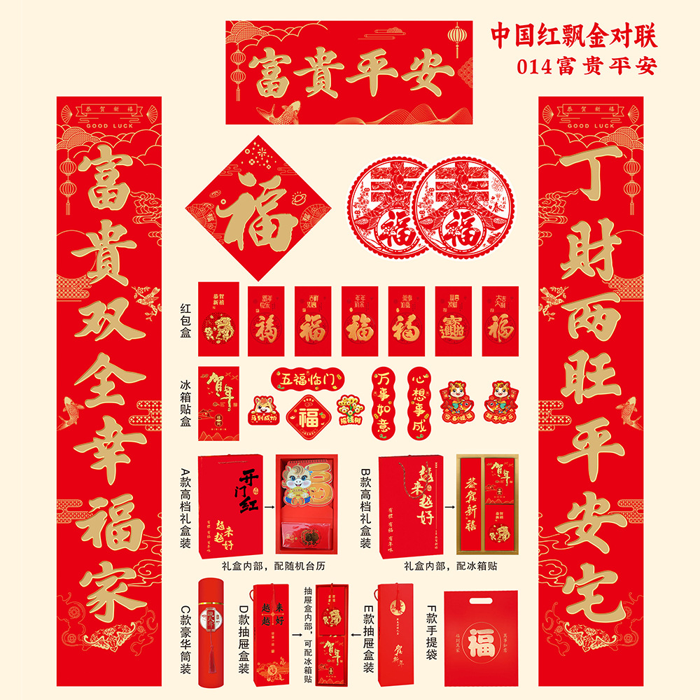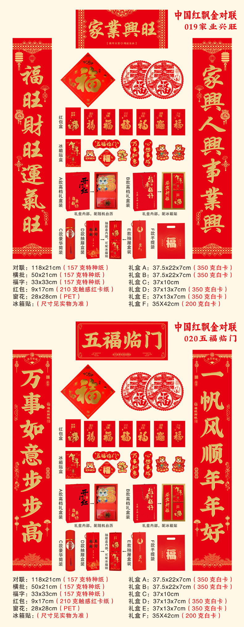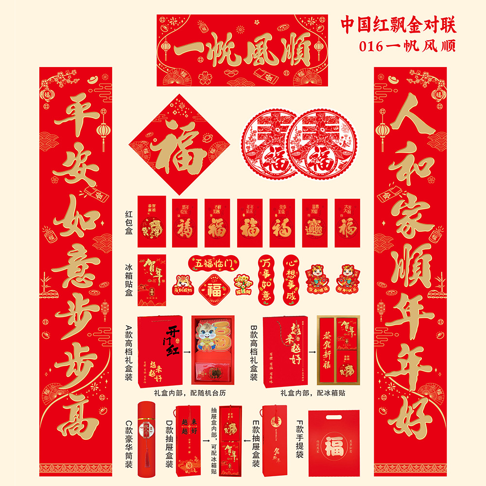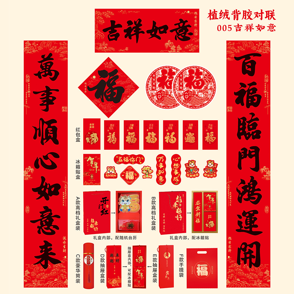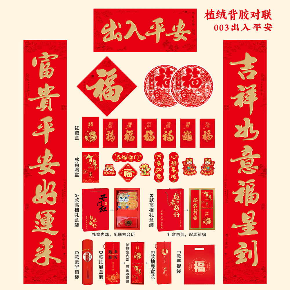 新款2026年对联大礼包现货精品烫金植绒磁吸春联红包福字礼盒套装