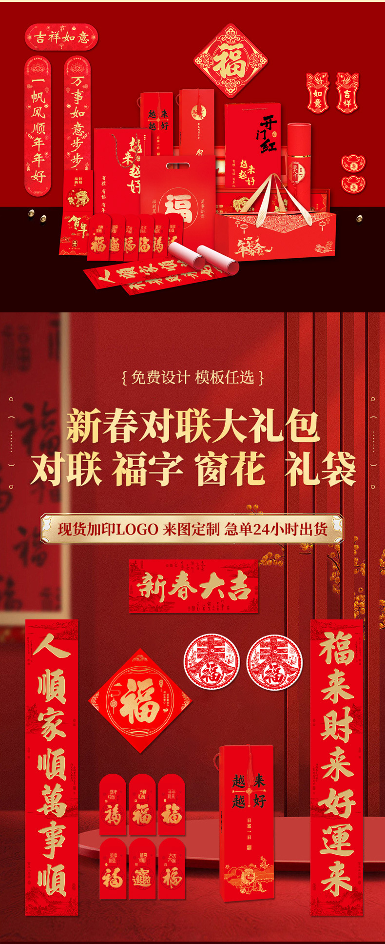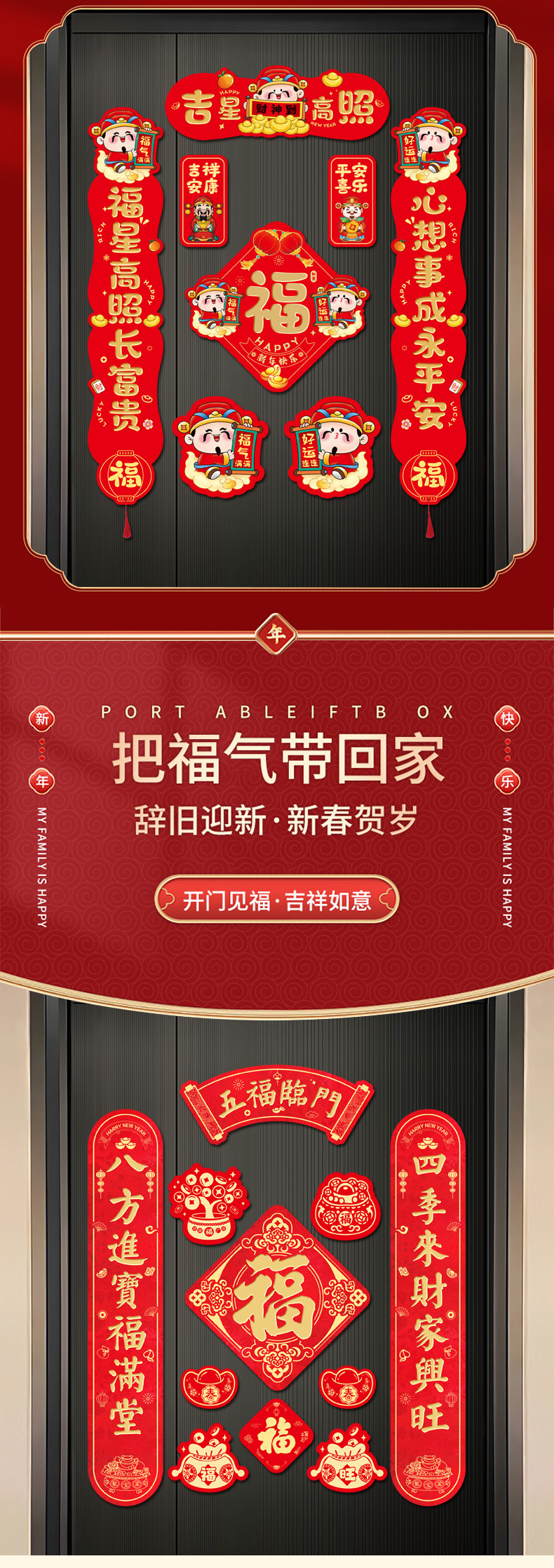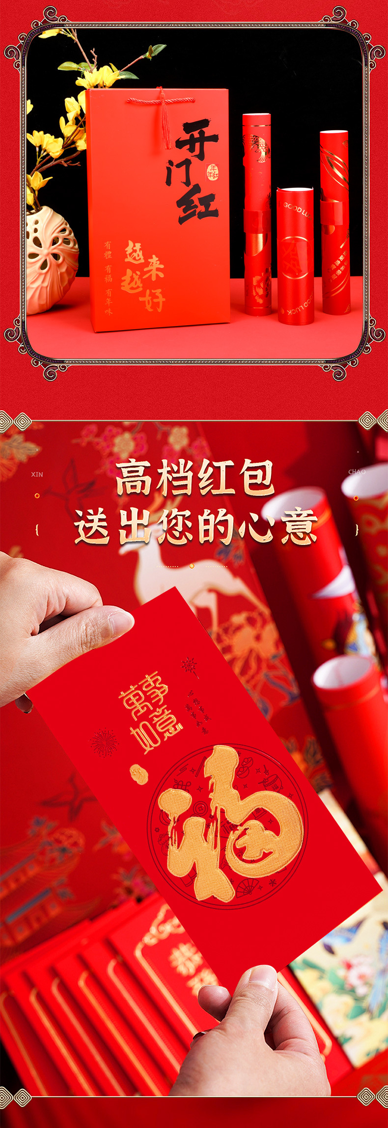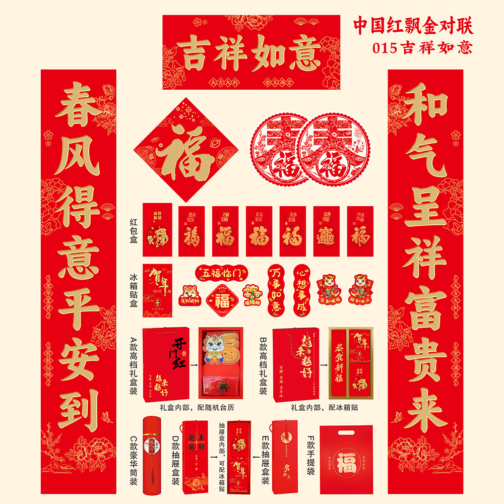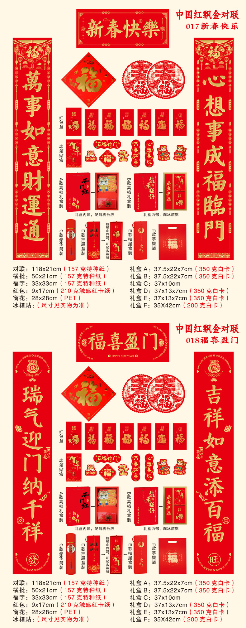 新款2026年对联大礼包现货精品烫金植绒磁吸春联红包福字礼盒套装