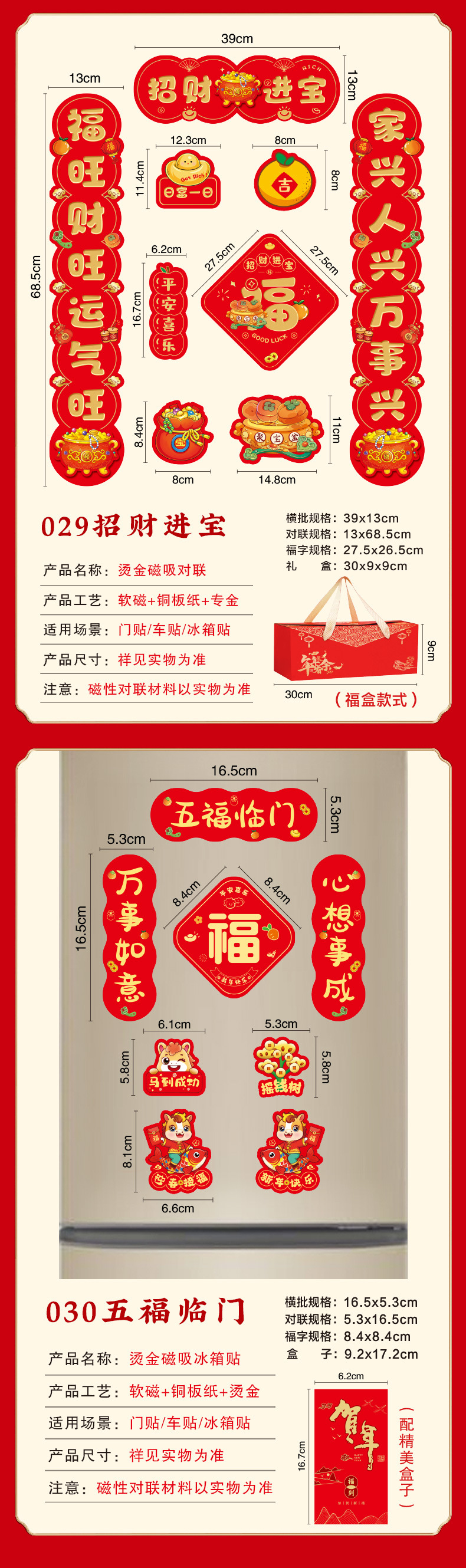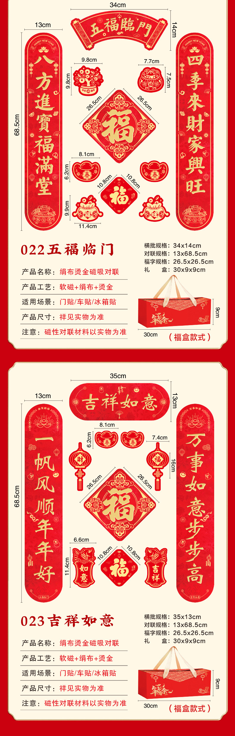 | 022-029绢布烫金磁吸对联 | USD $2.73 | 68888 set available |