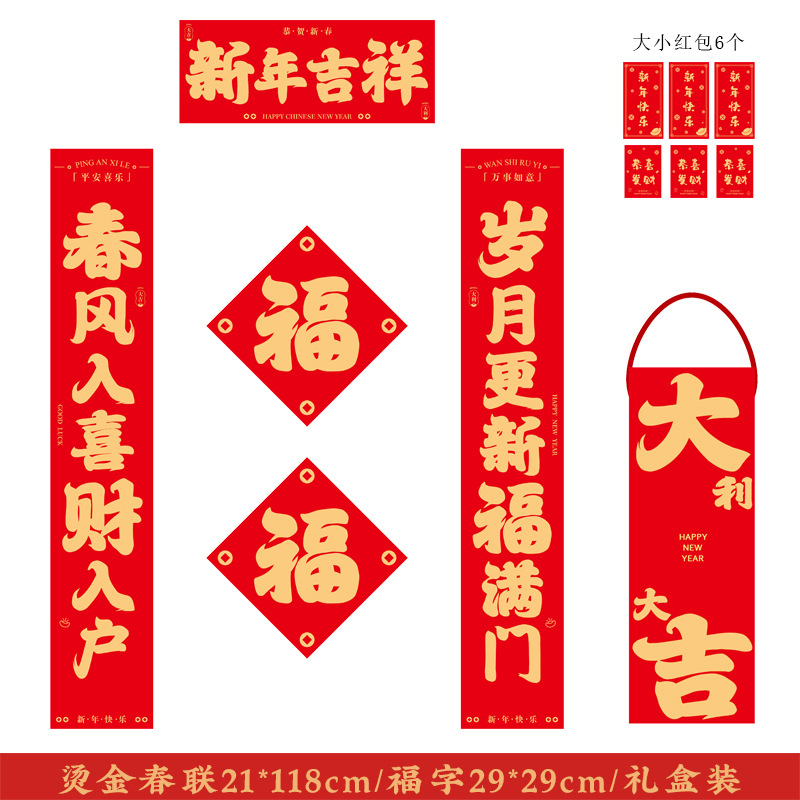 2026年烫金对联春联定制银行保险广告对联大礼包春节对联套装礼盒