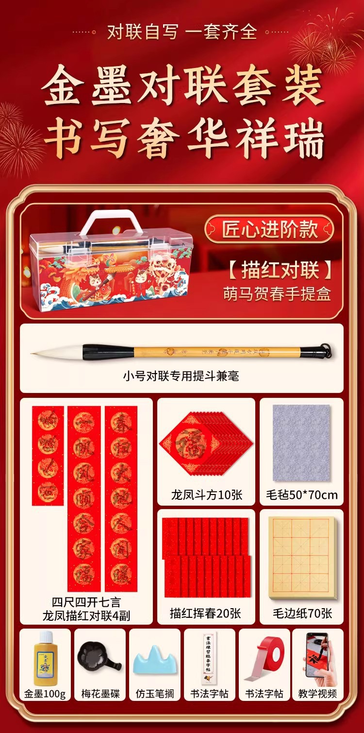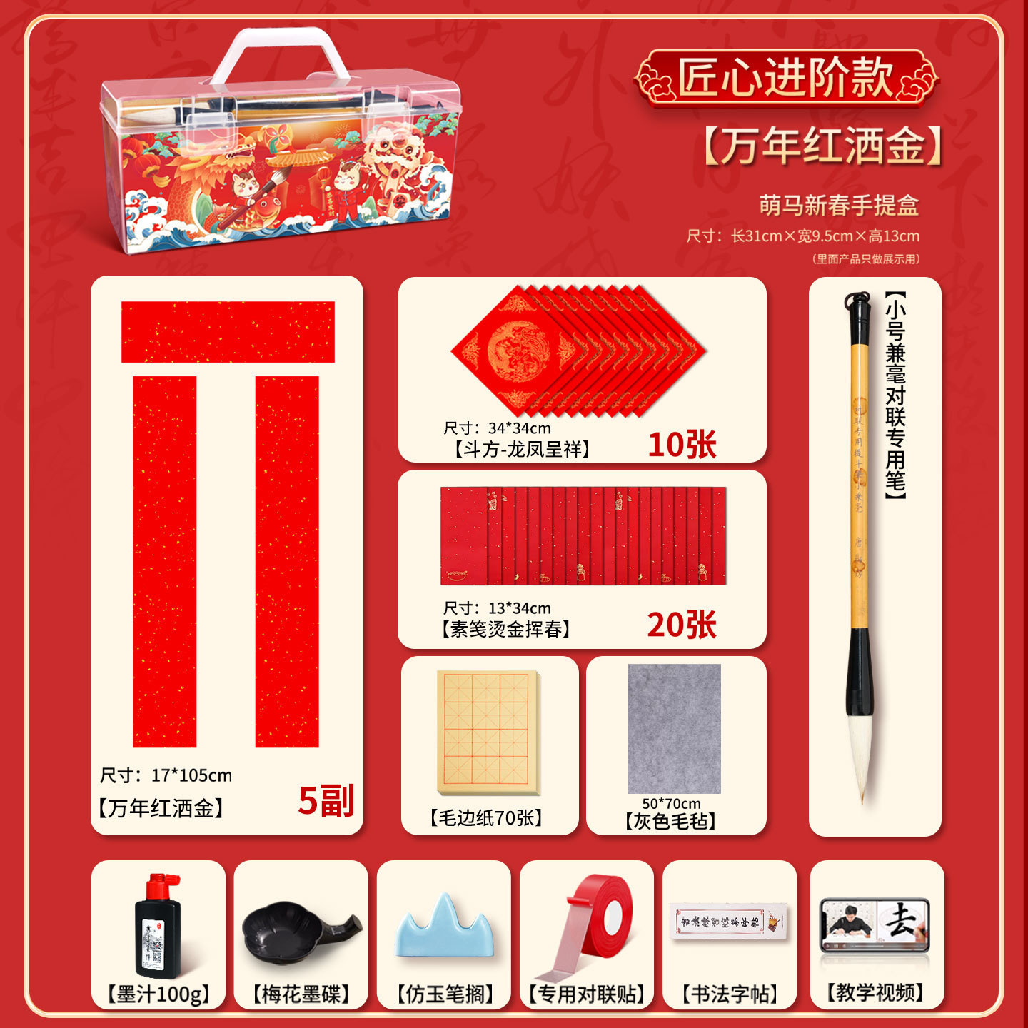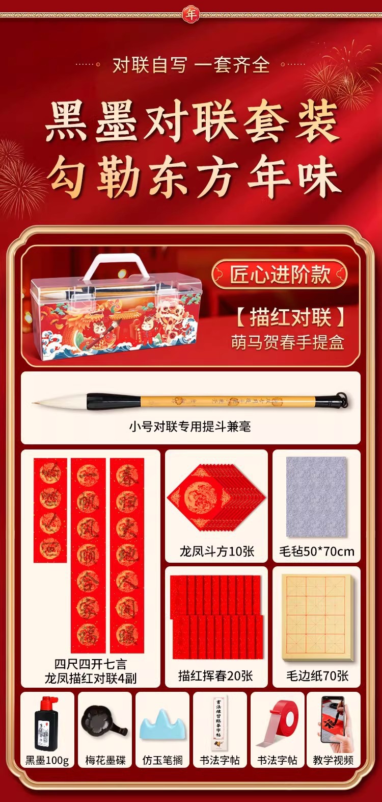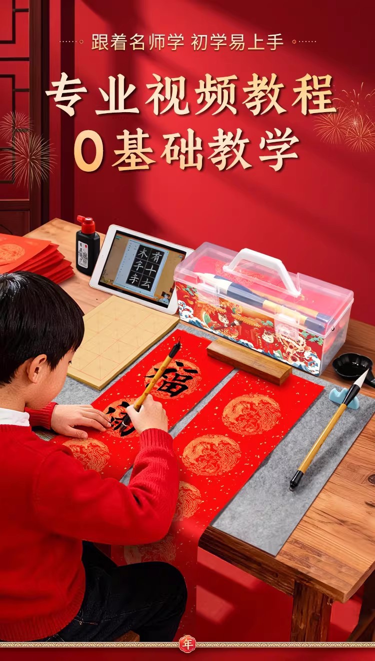2026马年春联批发自写毛笔对联套装年货摆摊爆款儿童书法工具货源